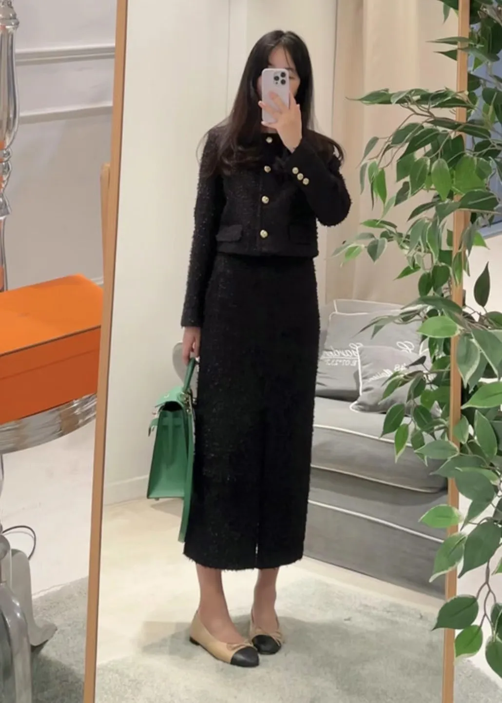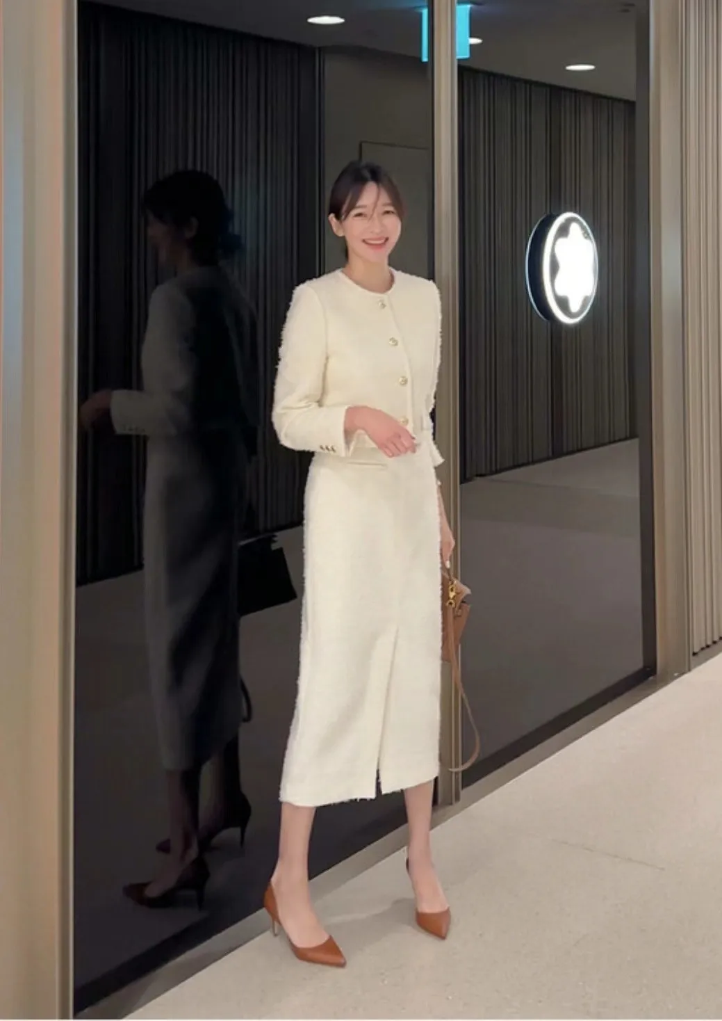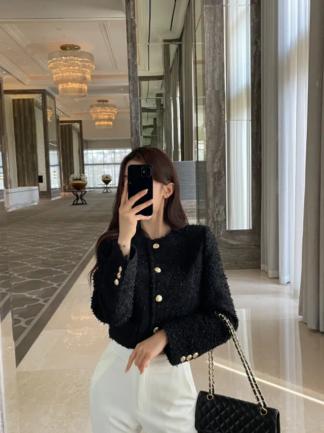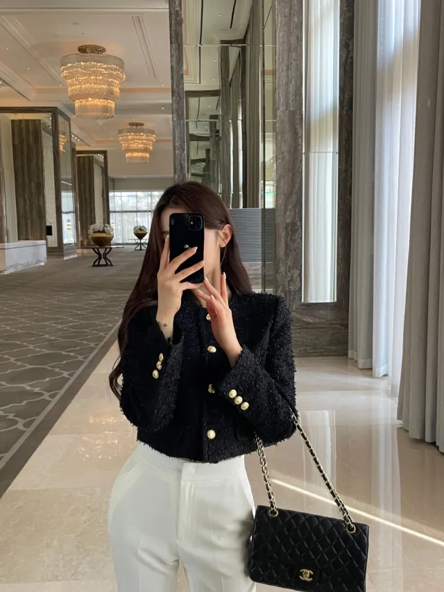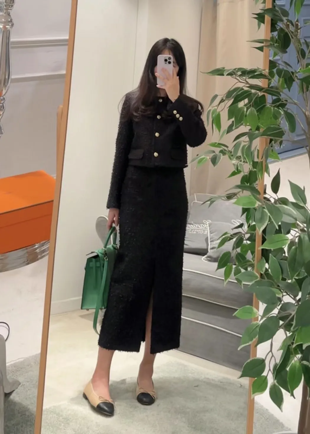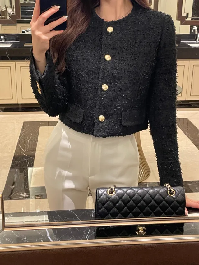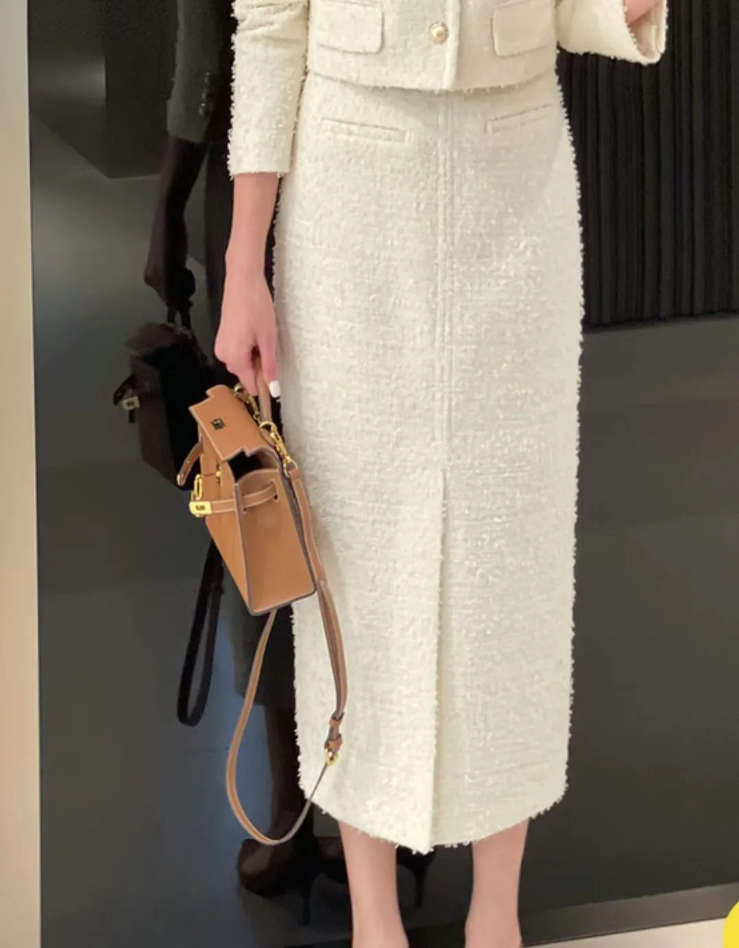 優雅小香風花呢外套+顯瘦半裙 套裝set