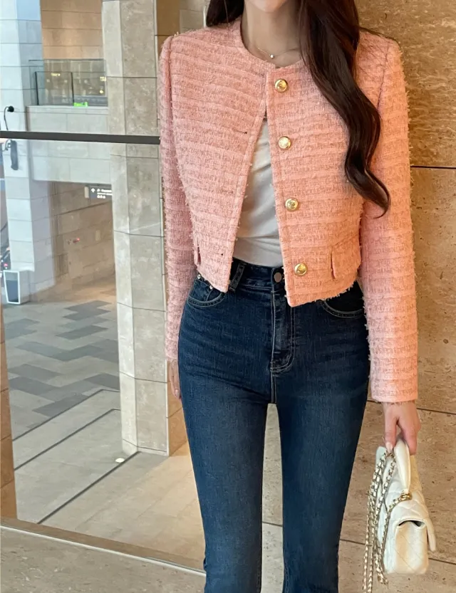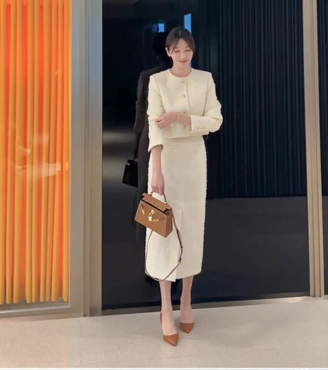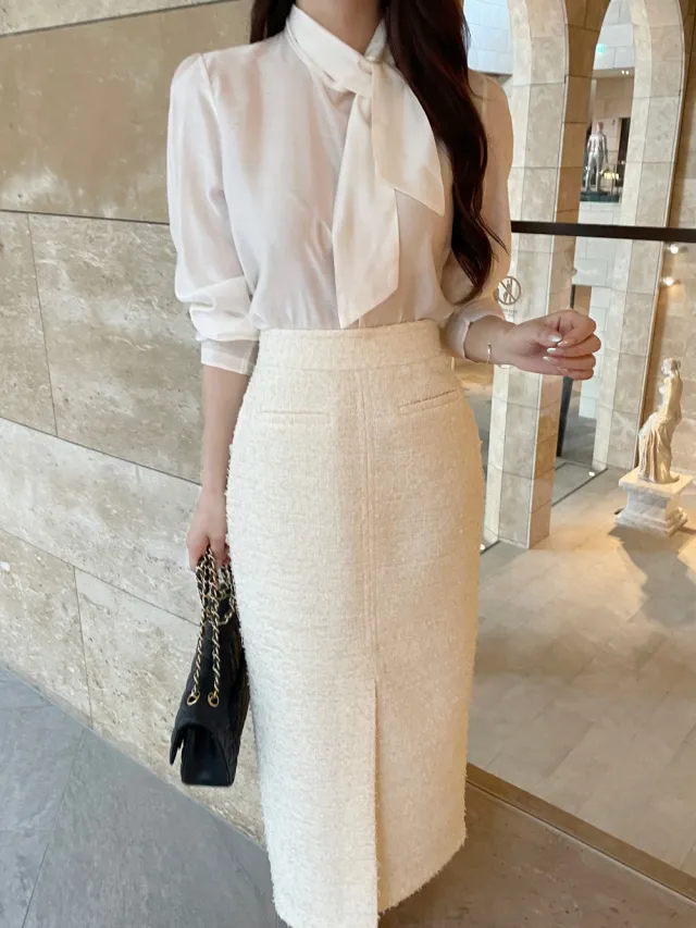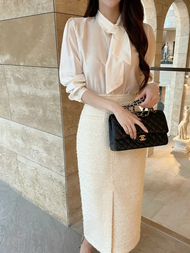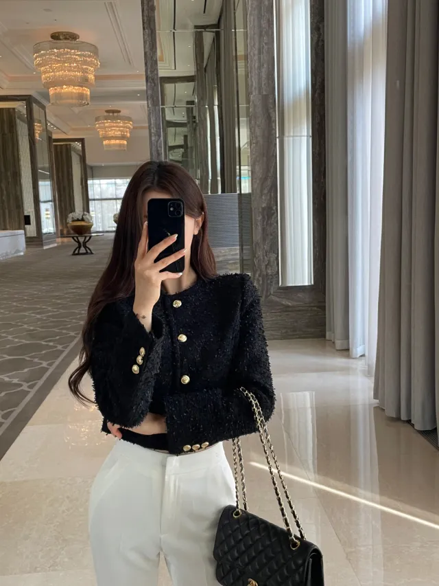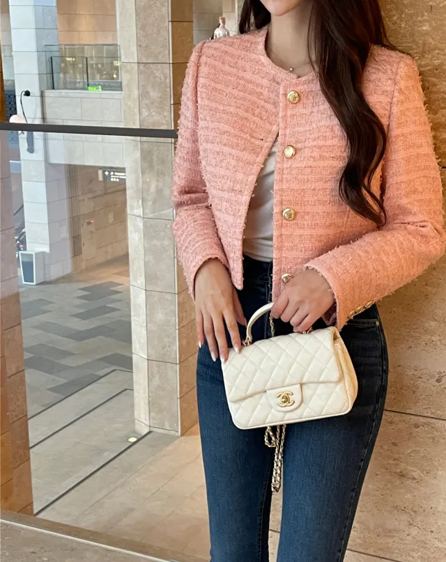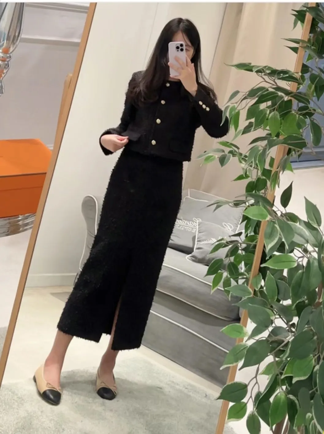 優雅小香風花呢外套+顯瘦半裙 套裝set