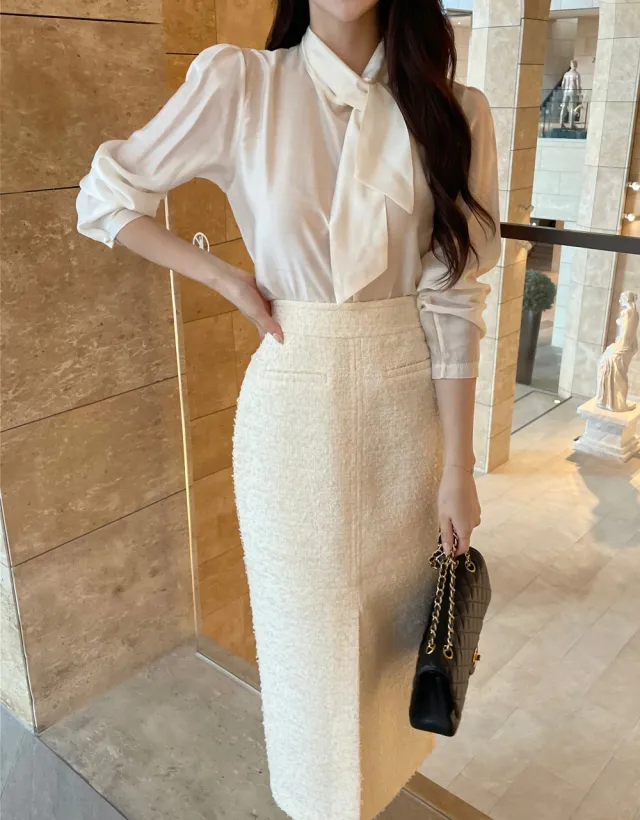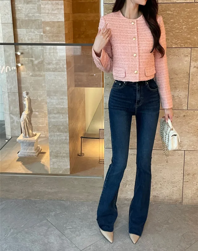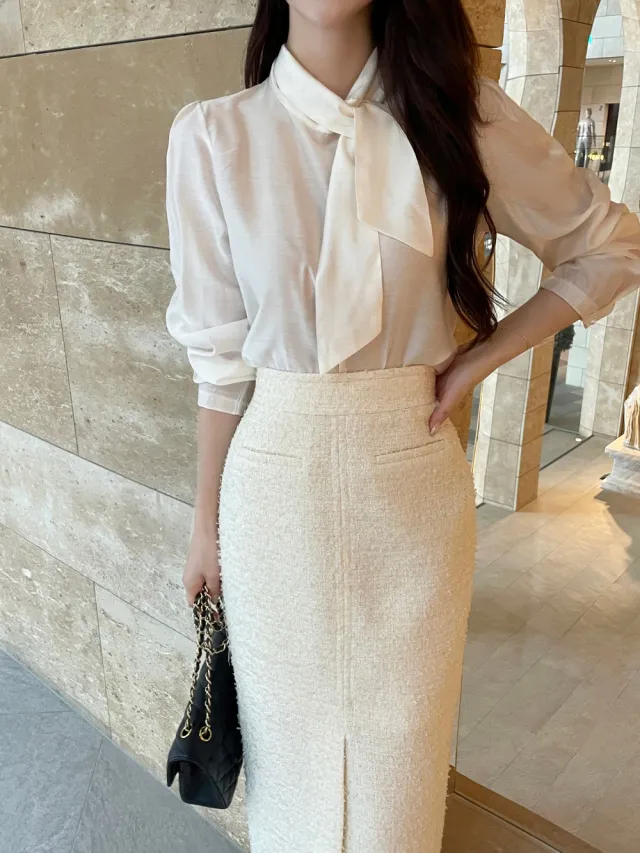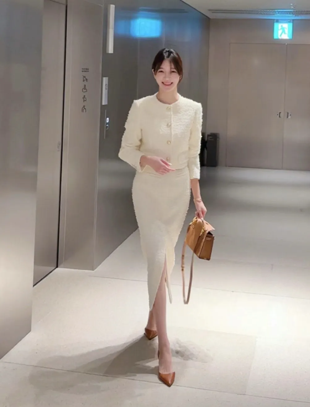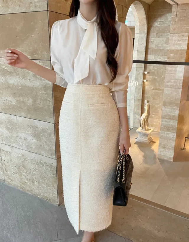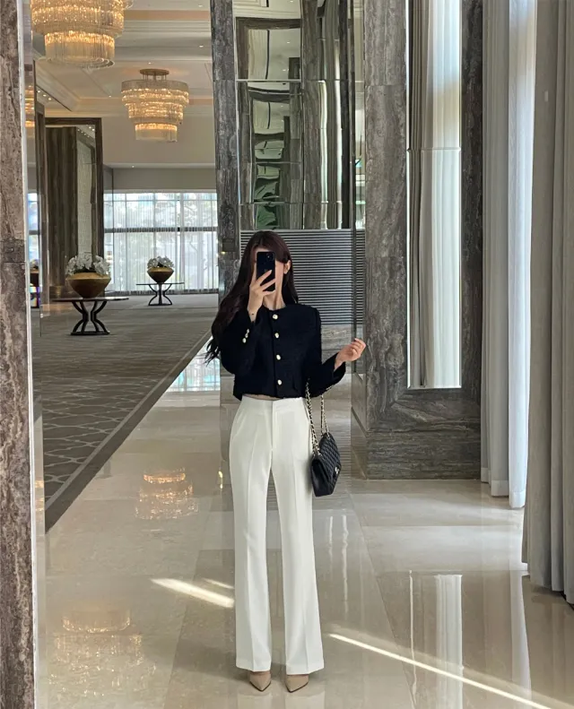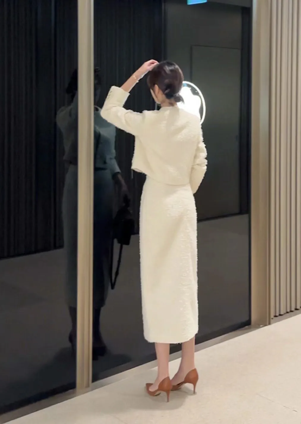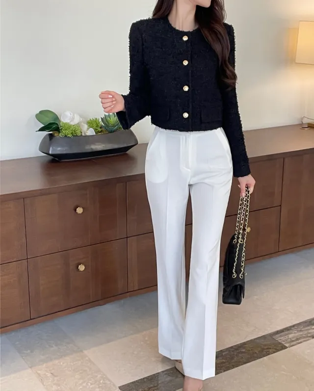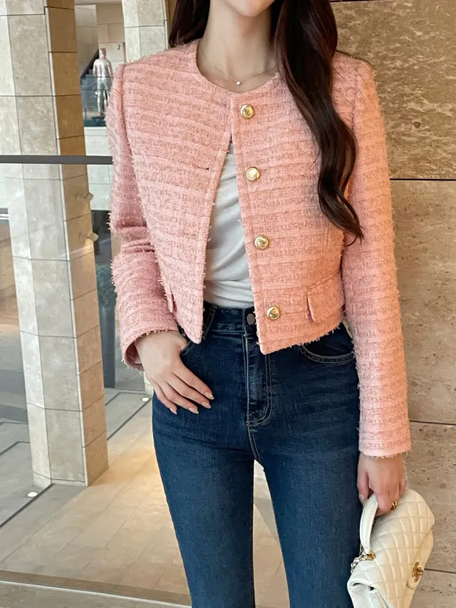 優雅小香風花呢外套+顯瘦半裙 套裝set