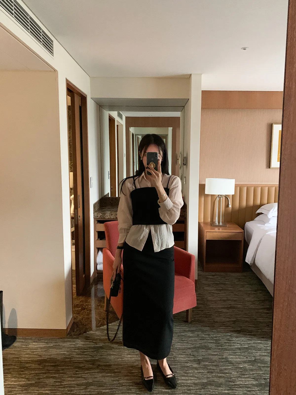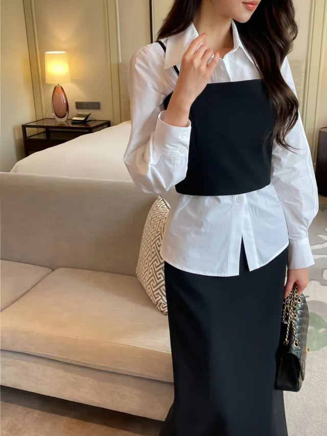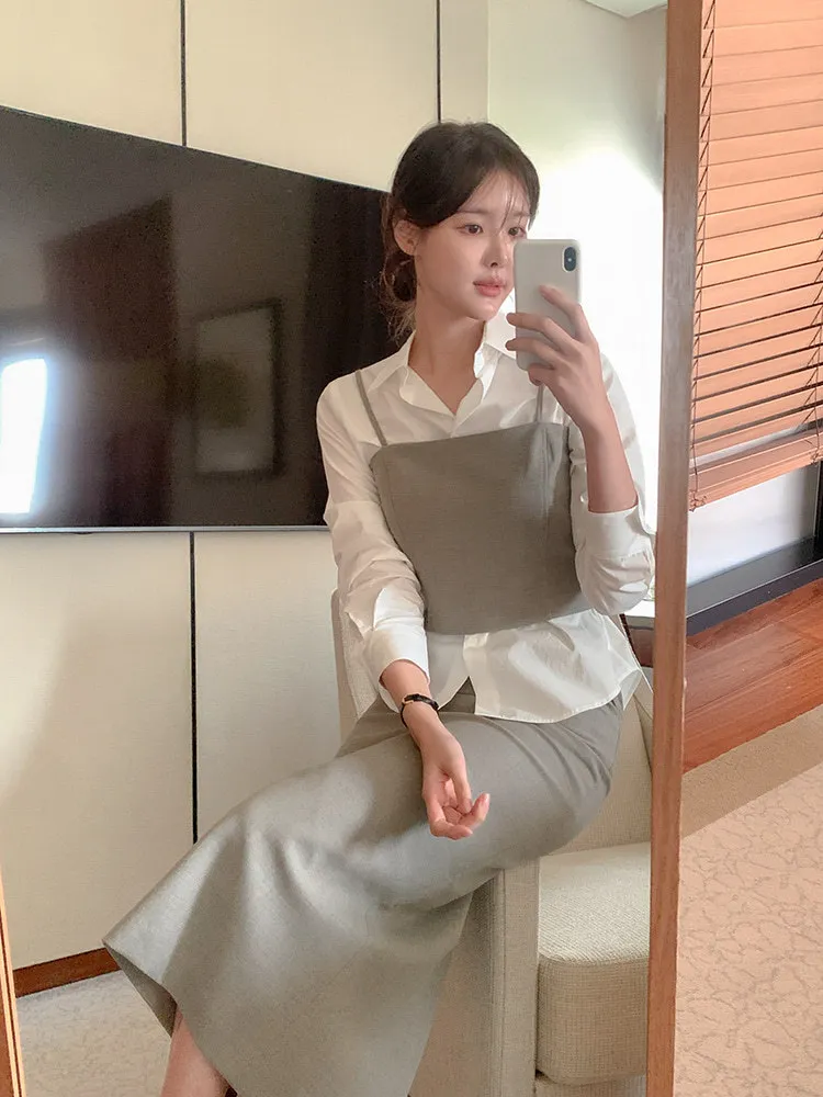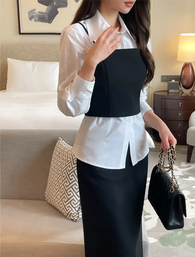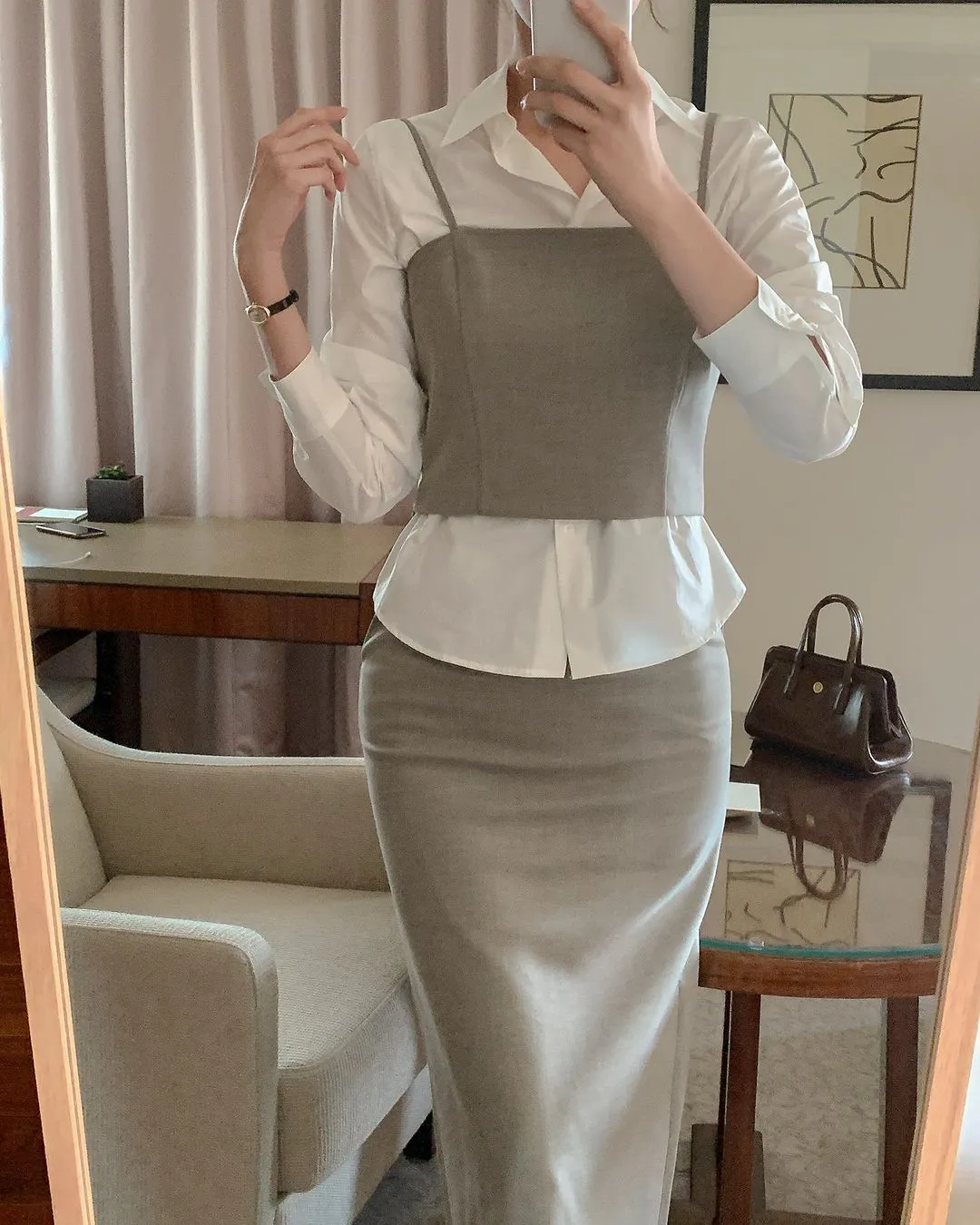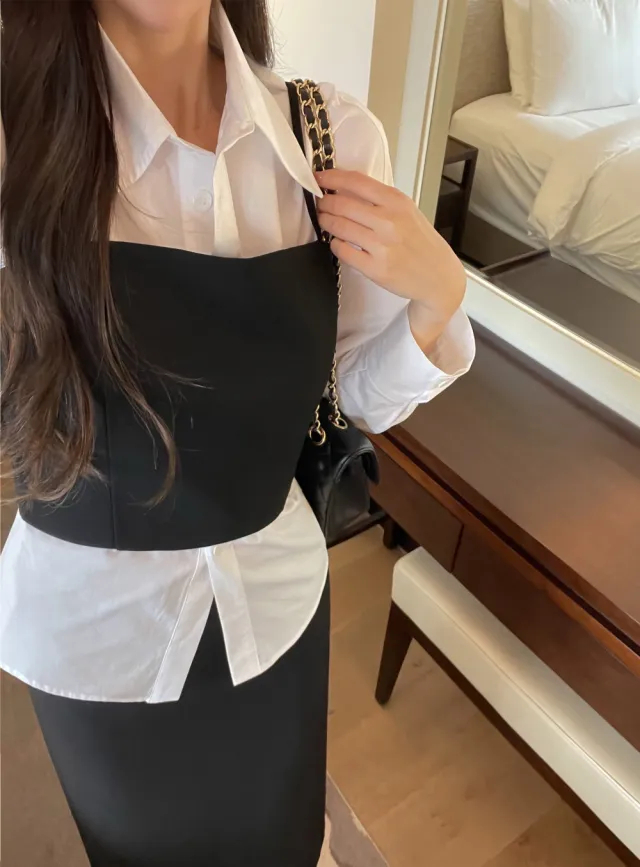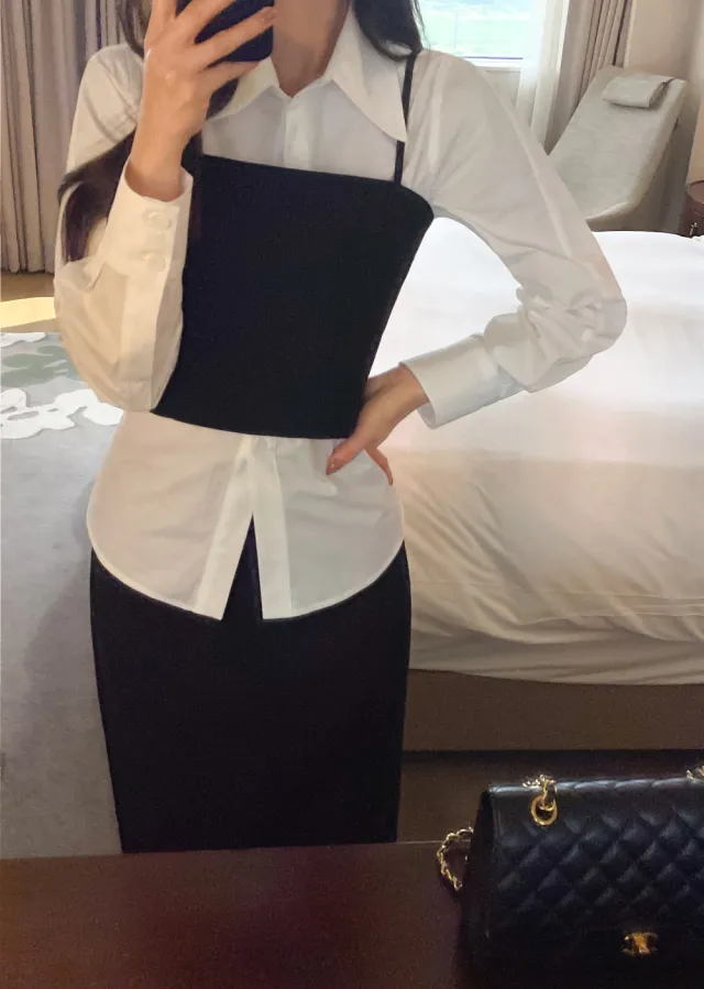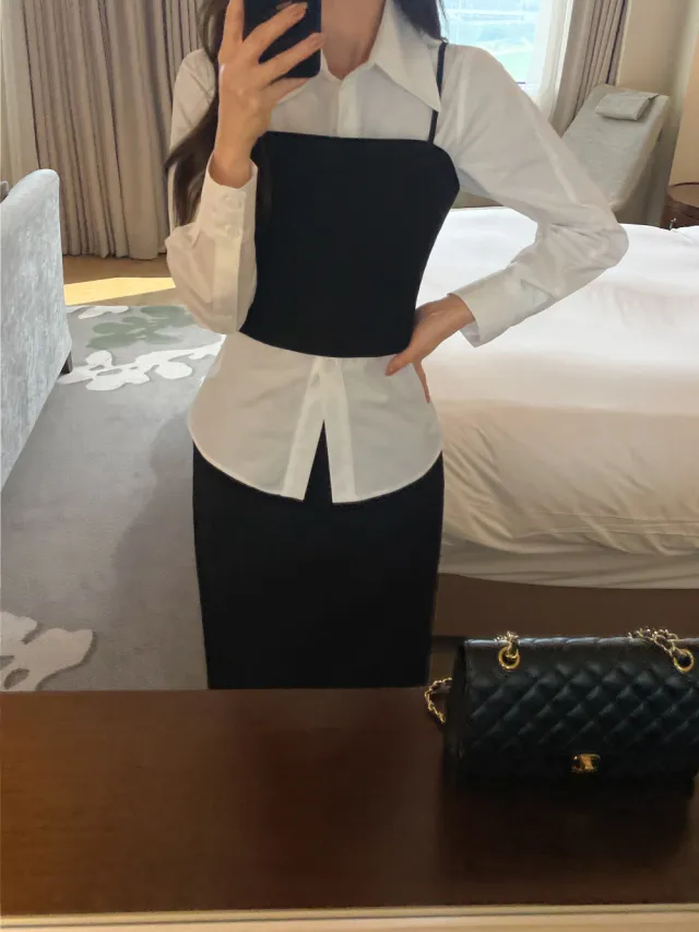 極簡緊身胸衣襯衫+顯瘦H半裙