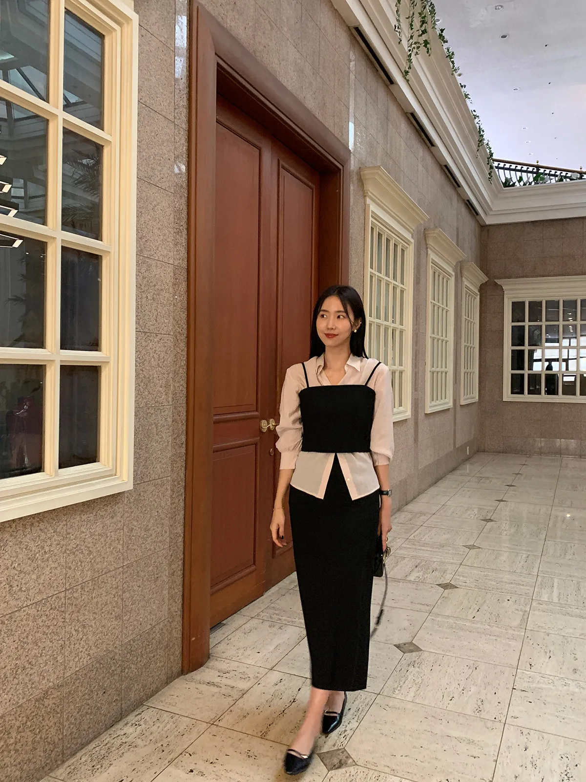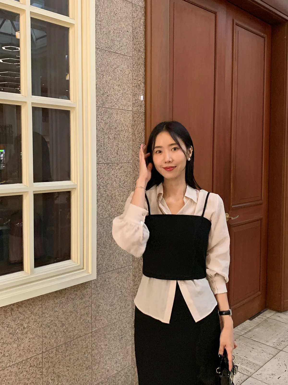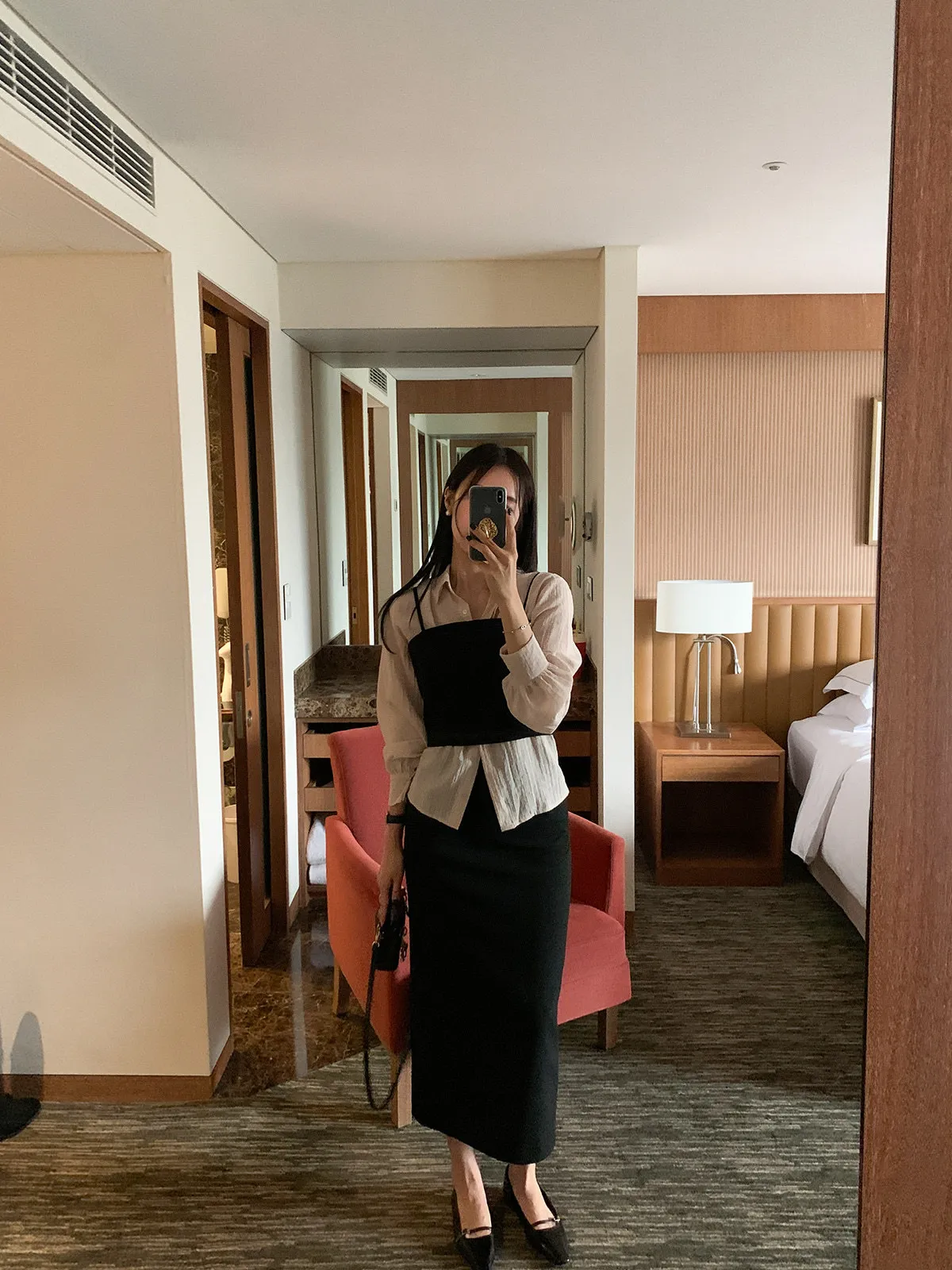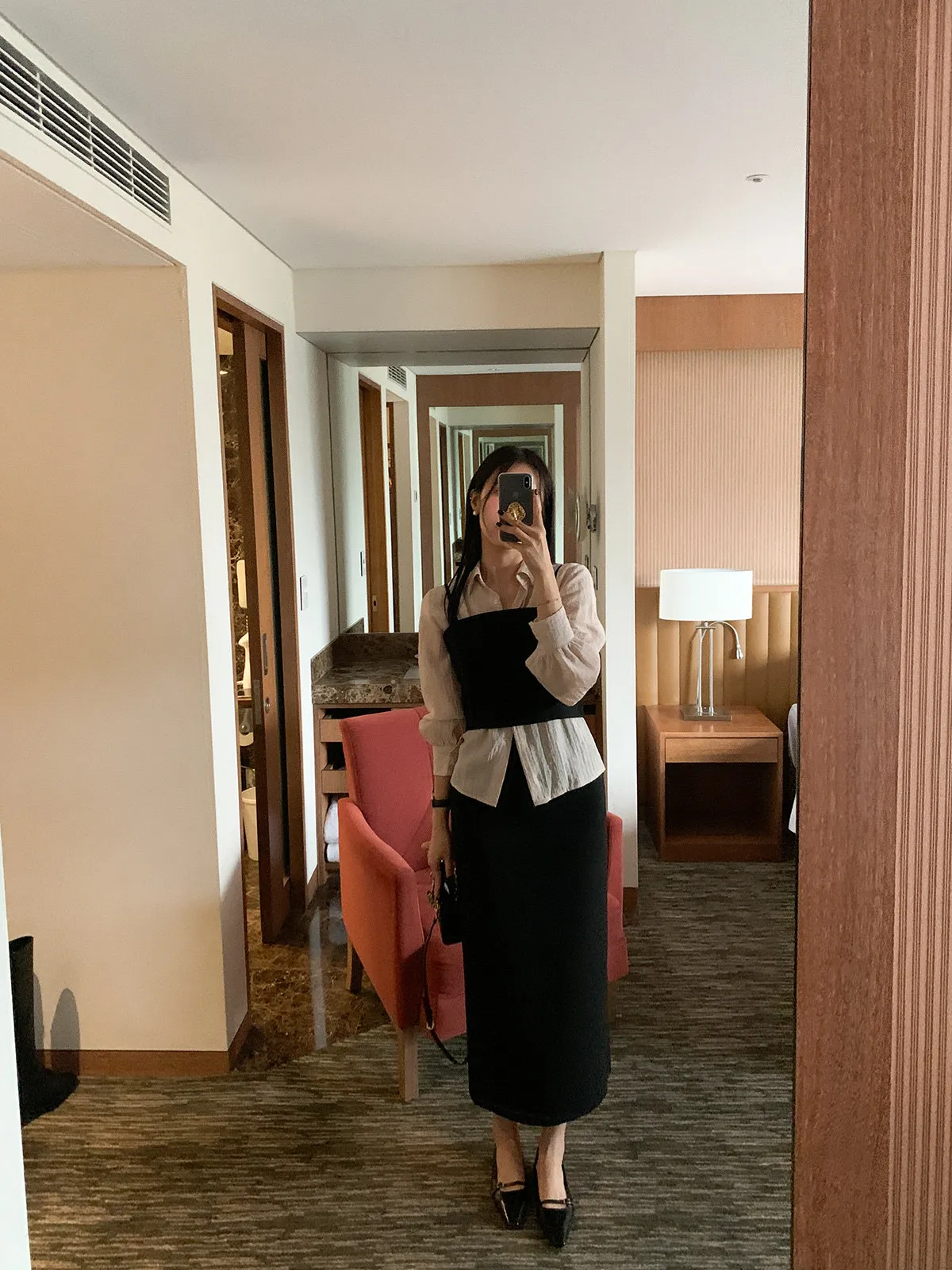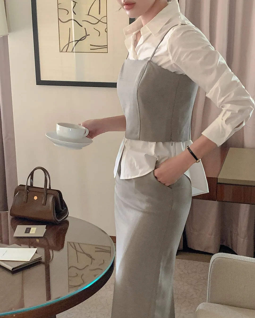 極簡緊身胸衣襯衫+顯瘦H半裙