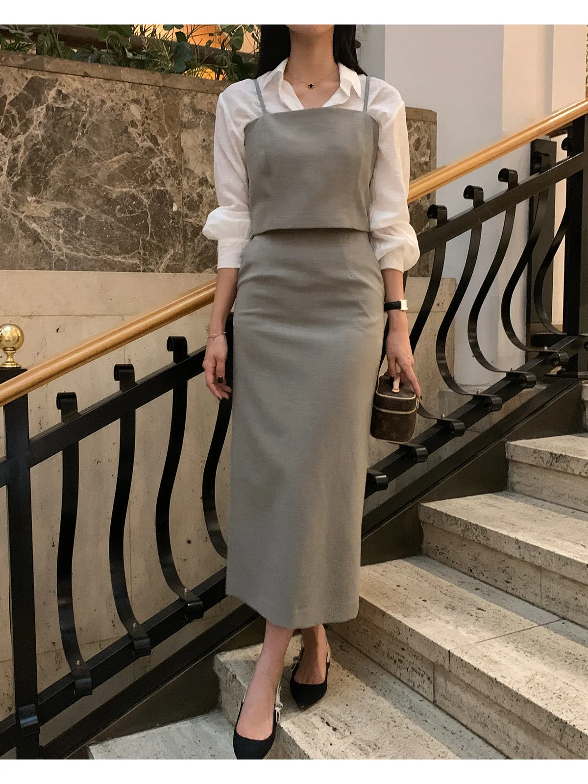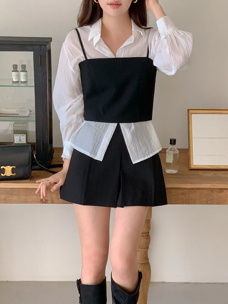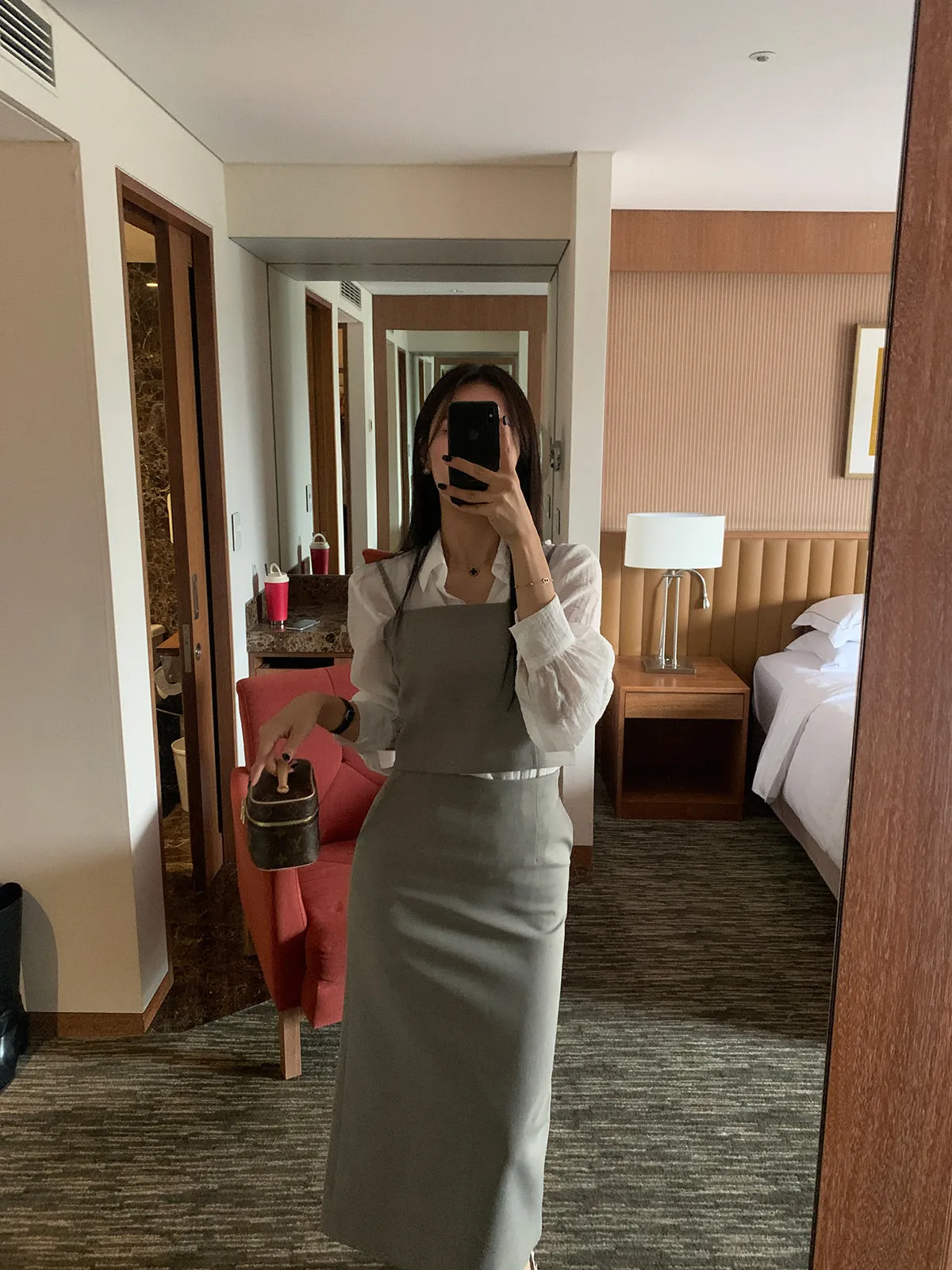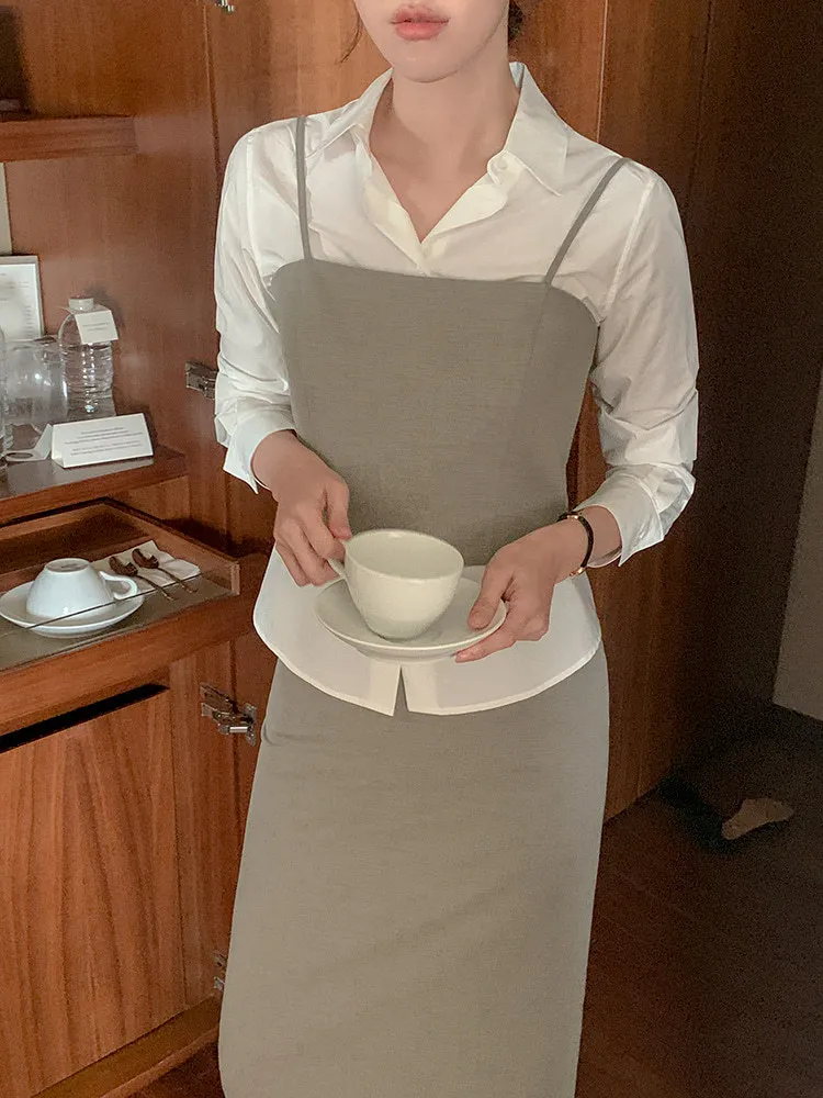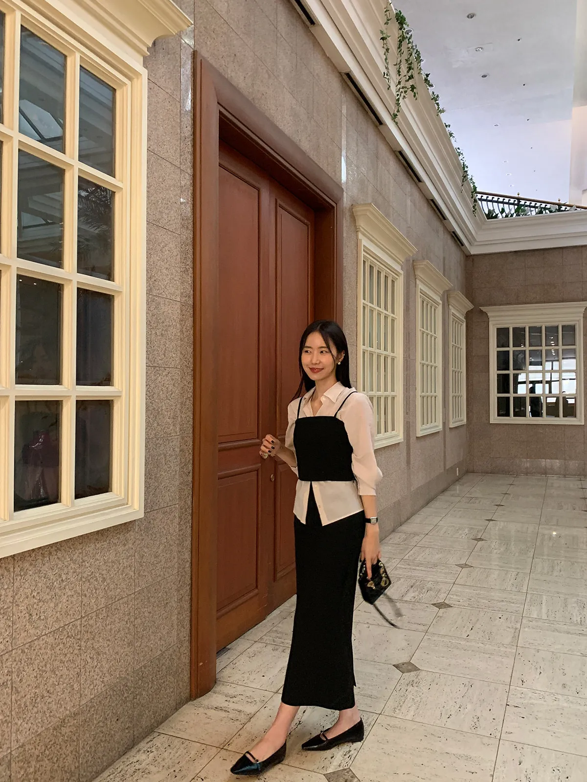 極簡緊身胸衣襯衫+顯瘦H半裙