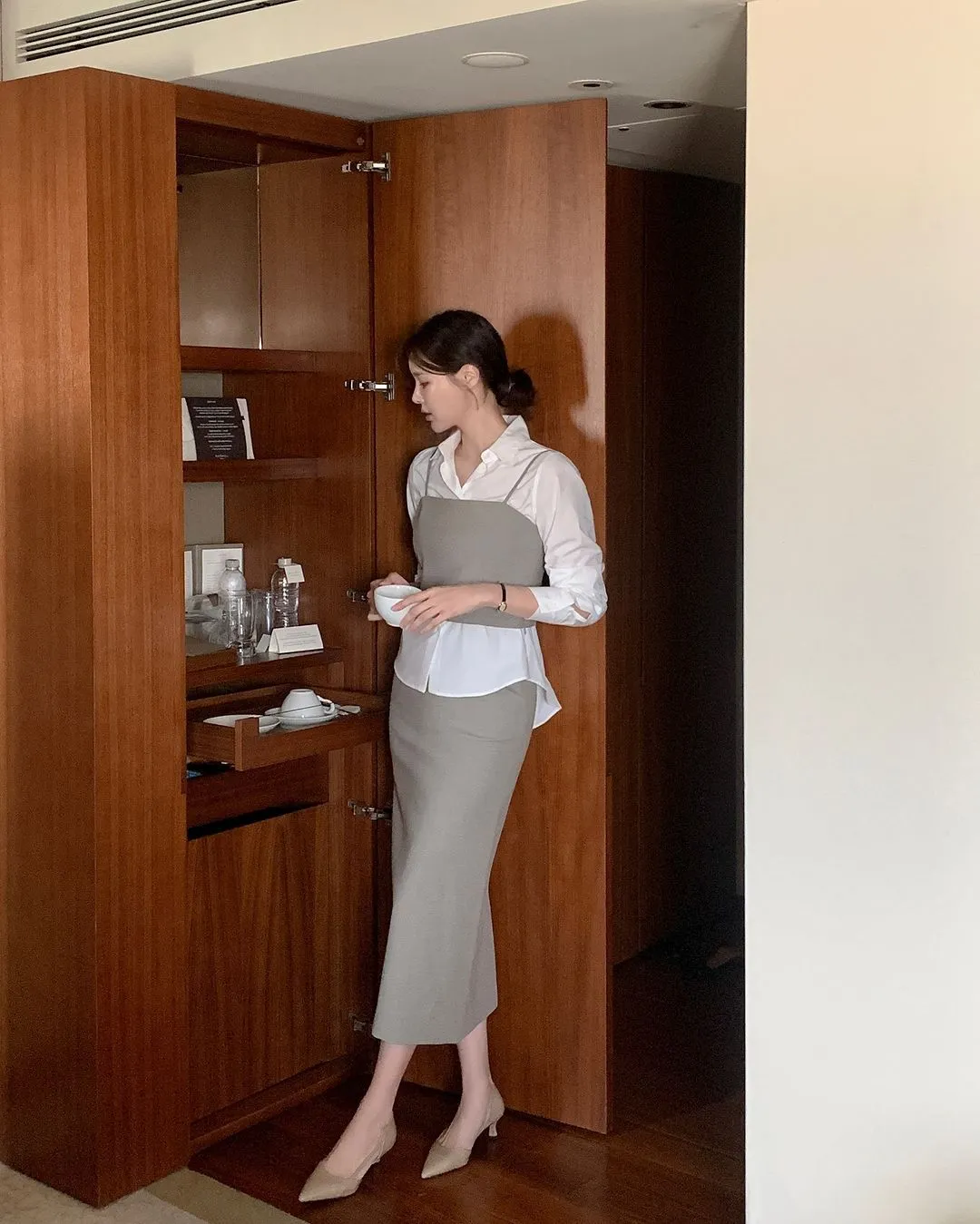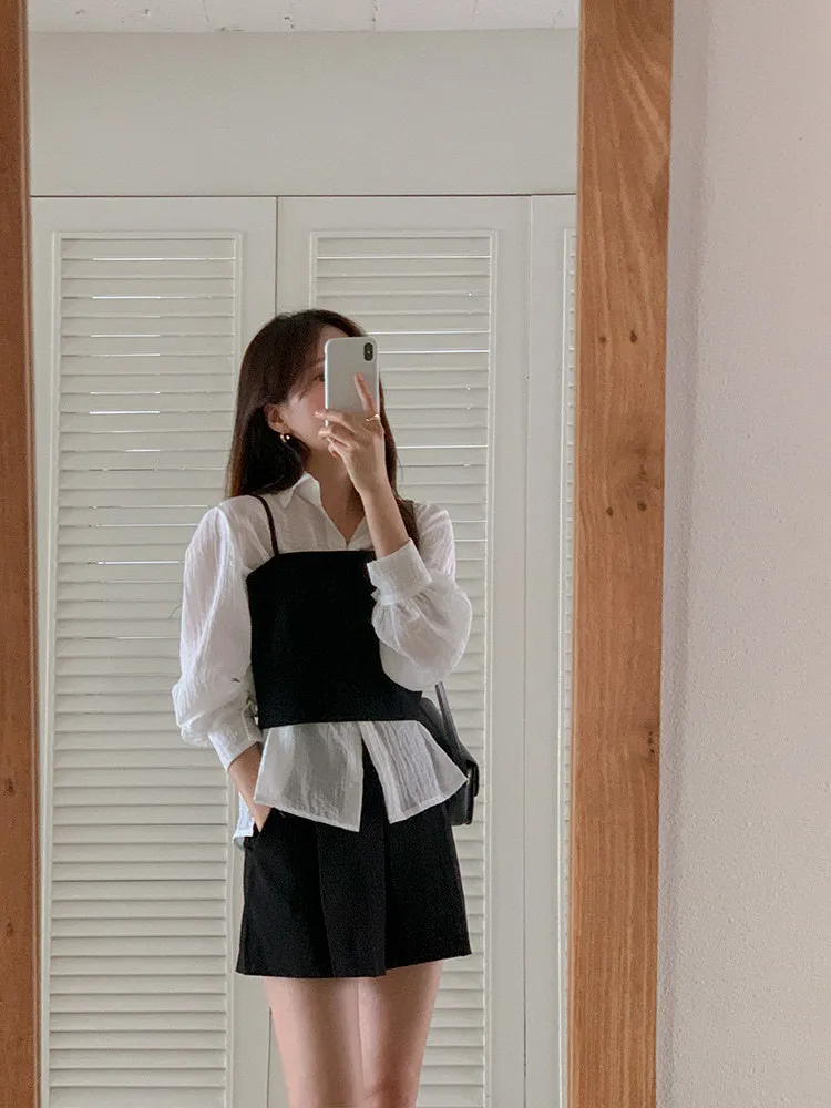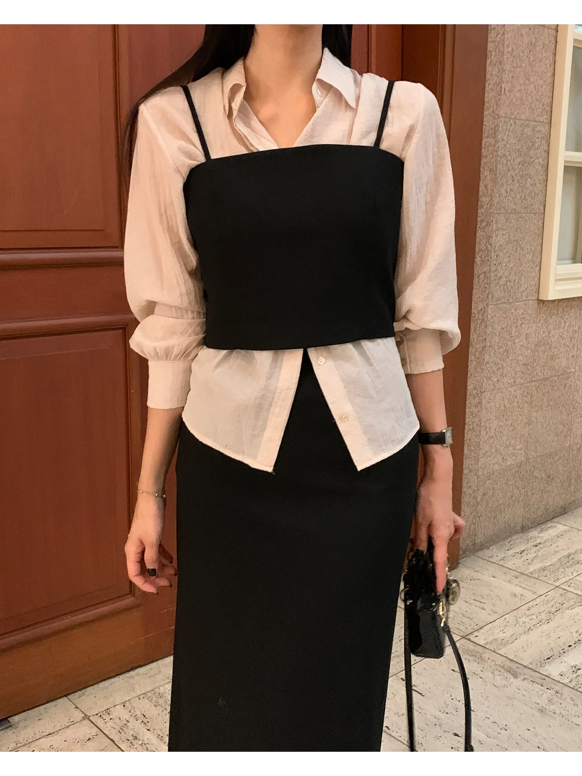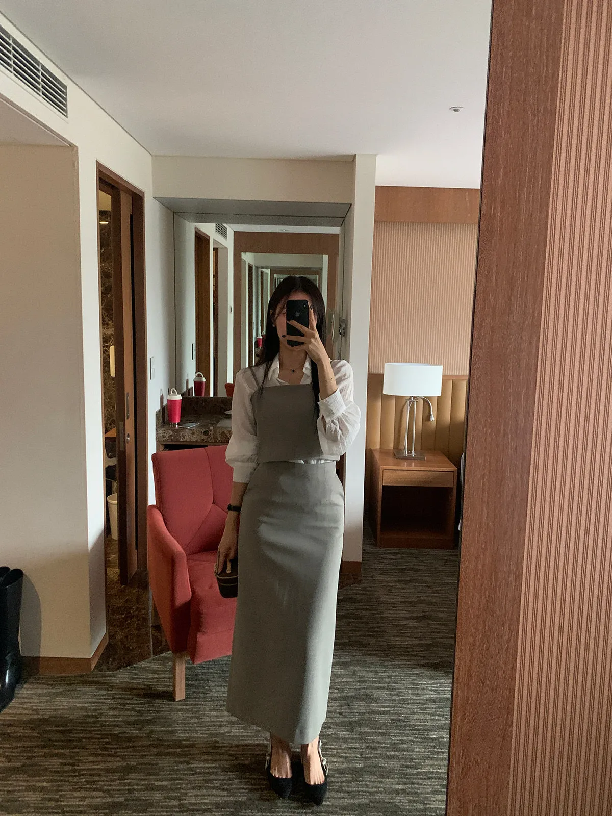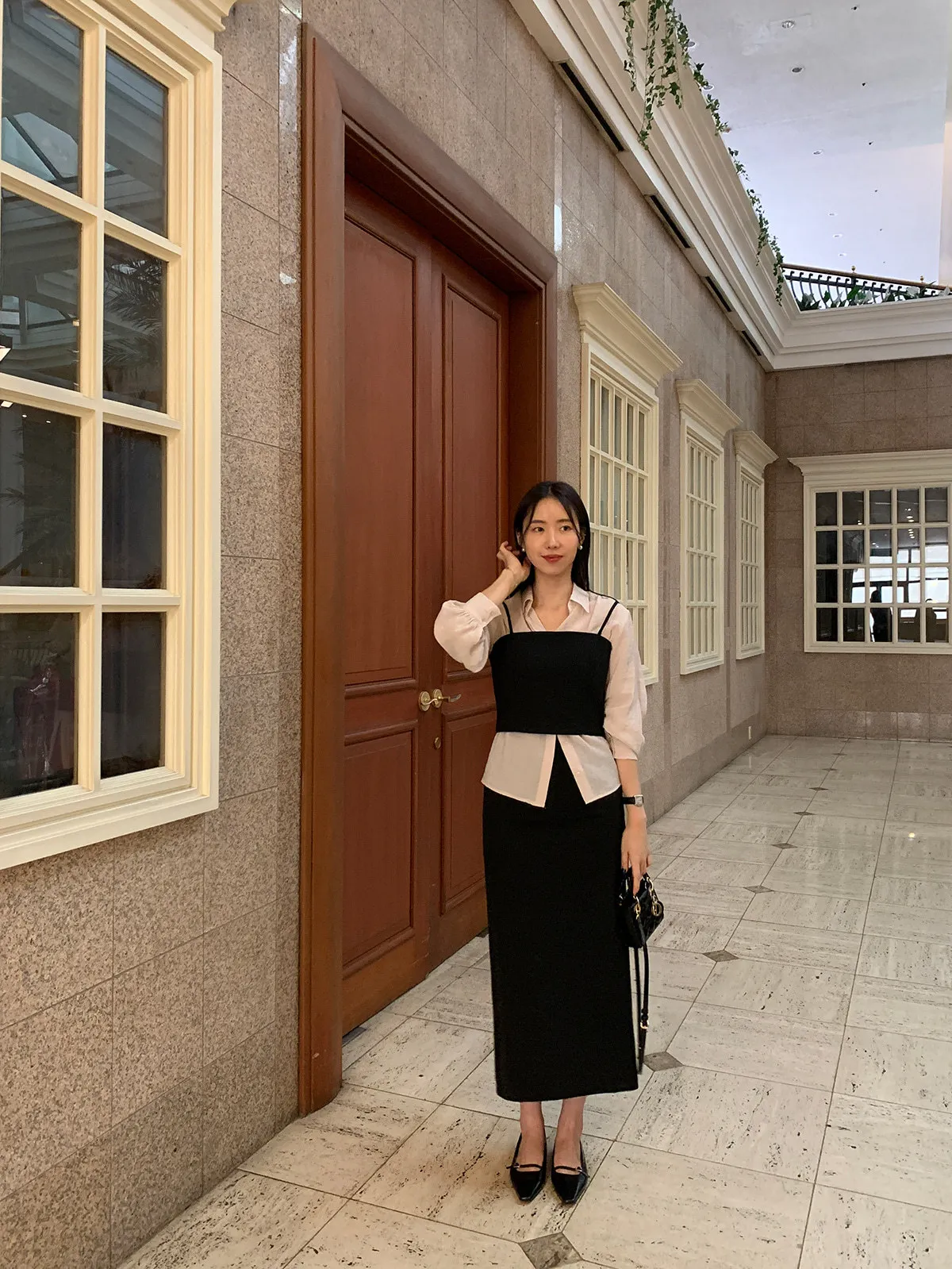 極簡緊身胸衣襯衫+顯瘦H半裙