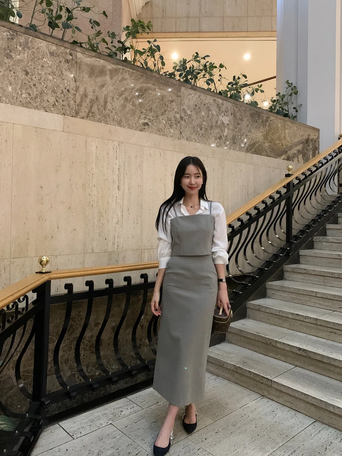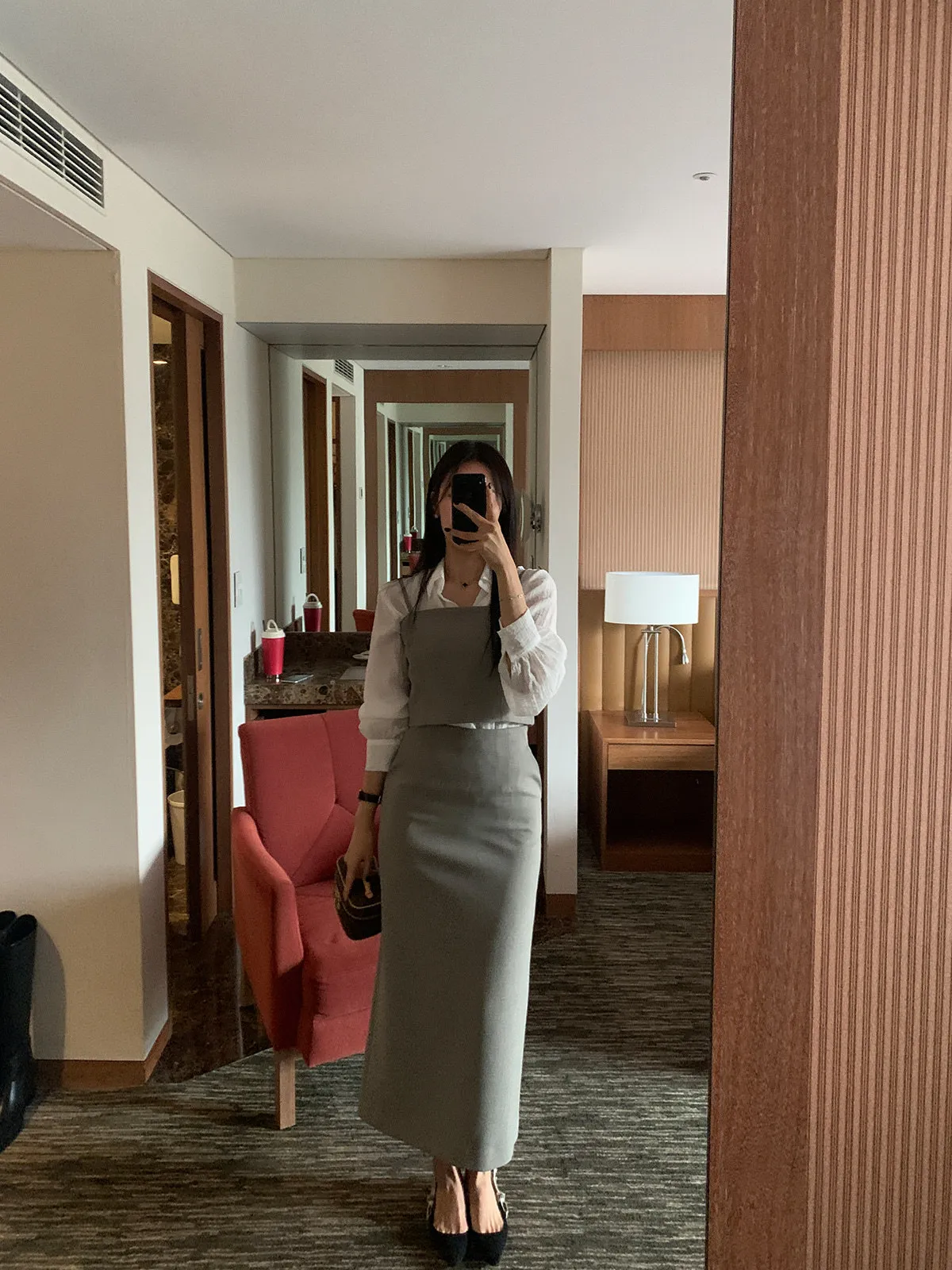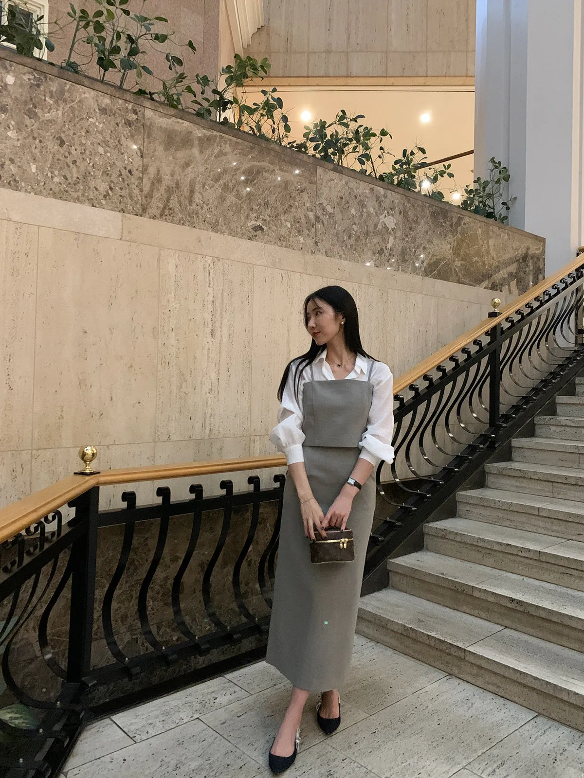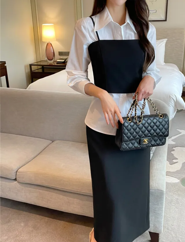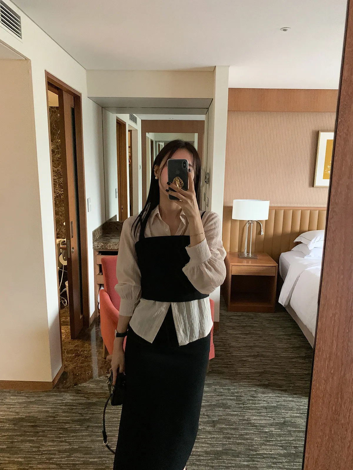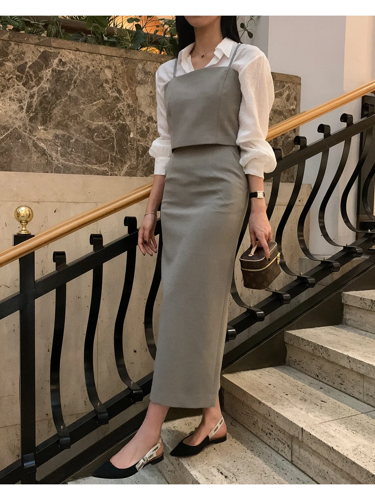 極簡緊身胸衣襯衫+顯瘦H半裙