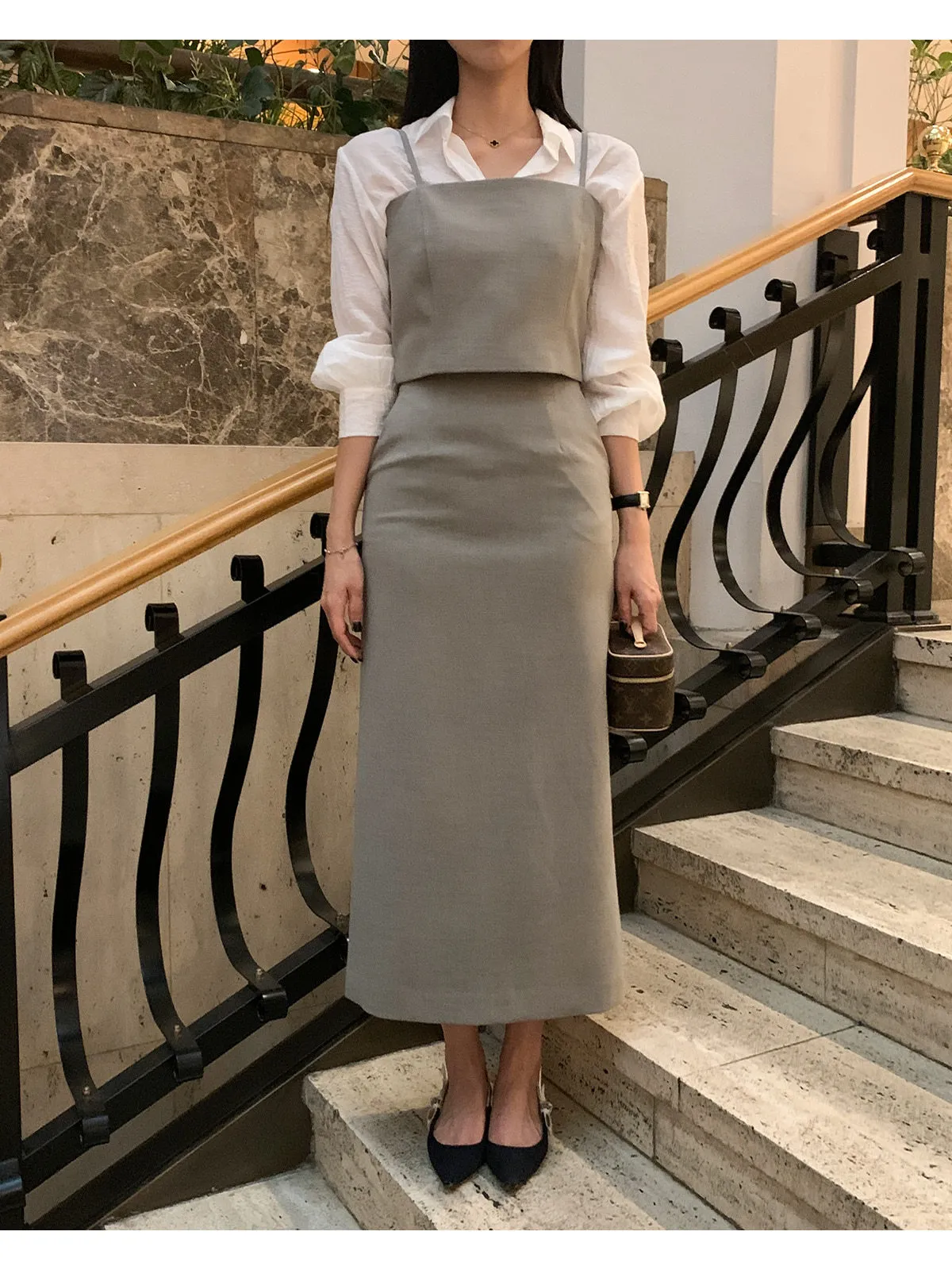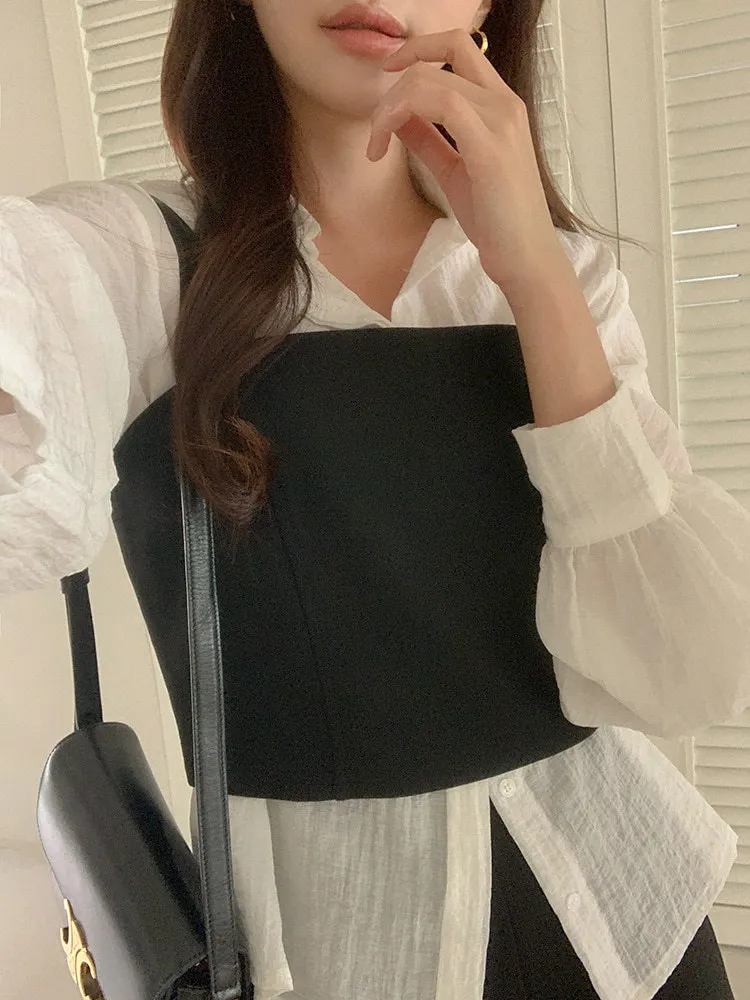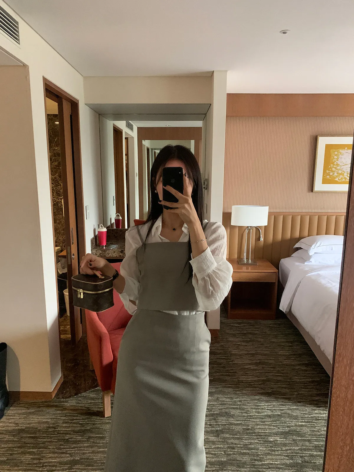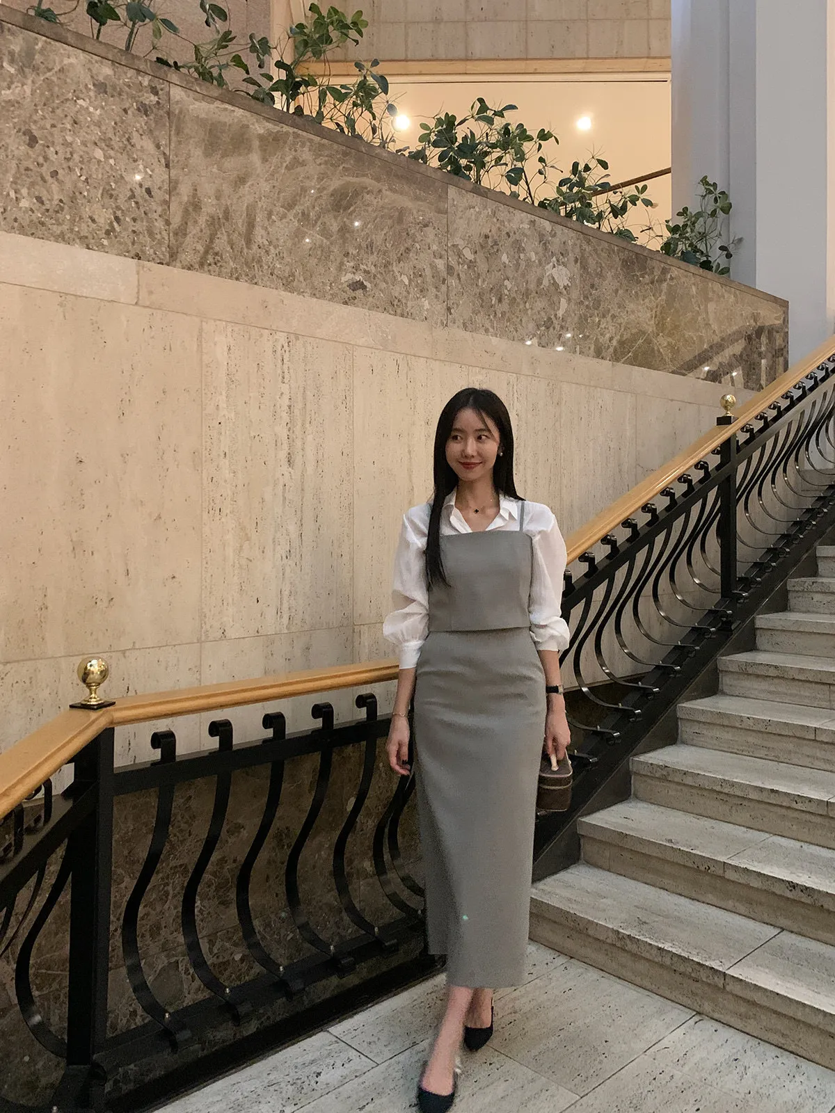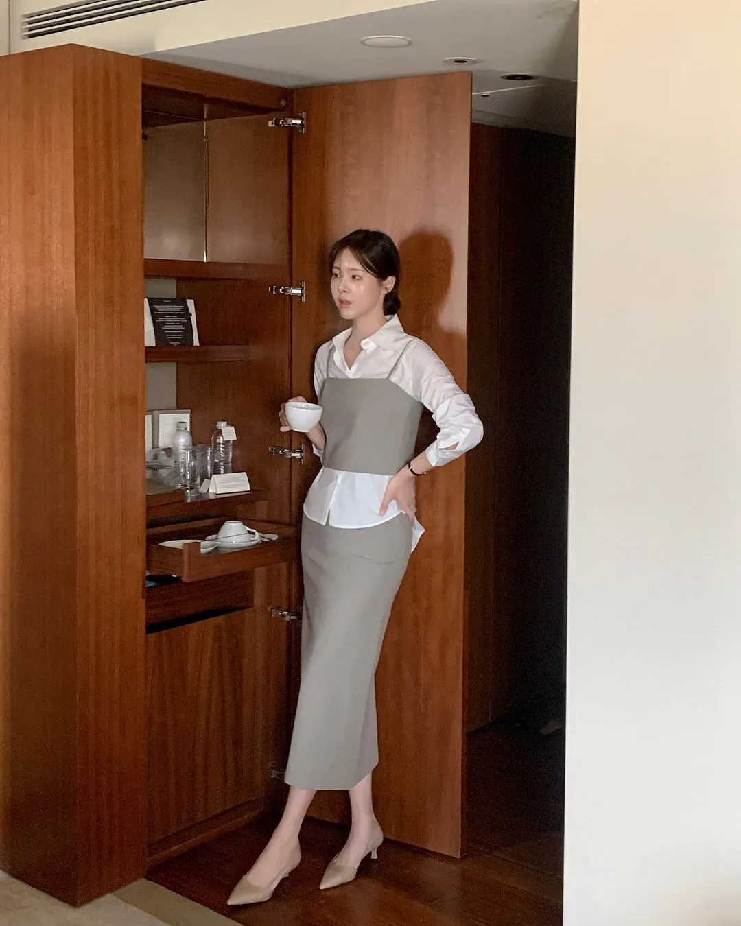 極簡緊身胸衣襯衫+顯瘦H半裙