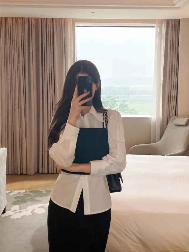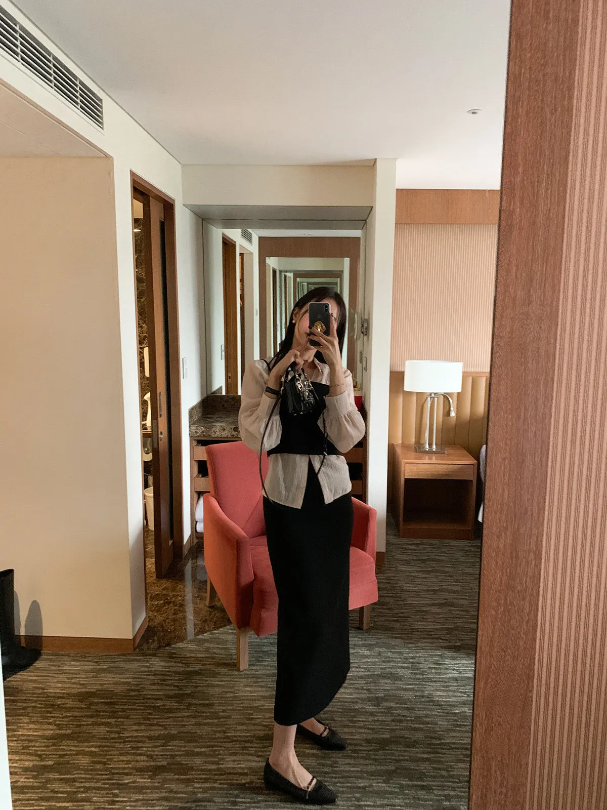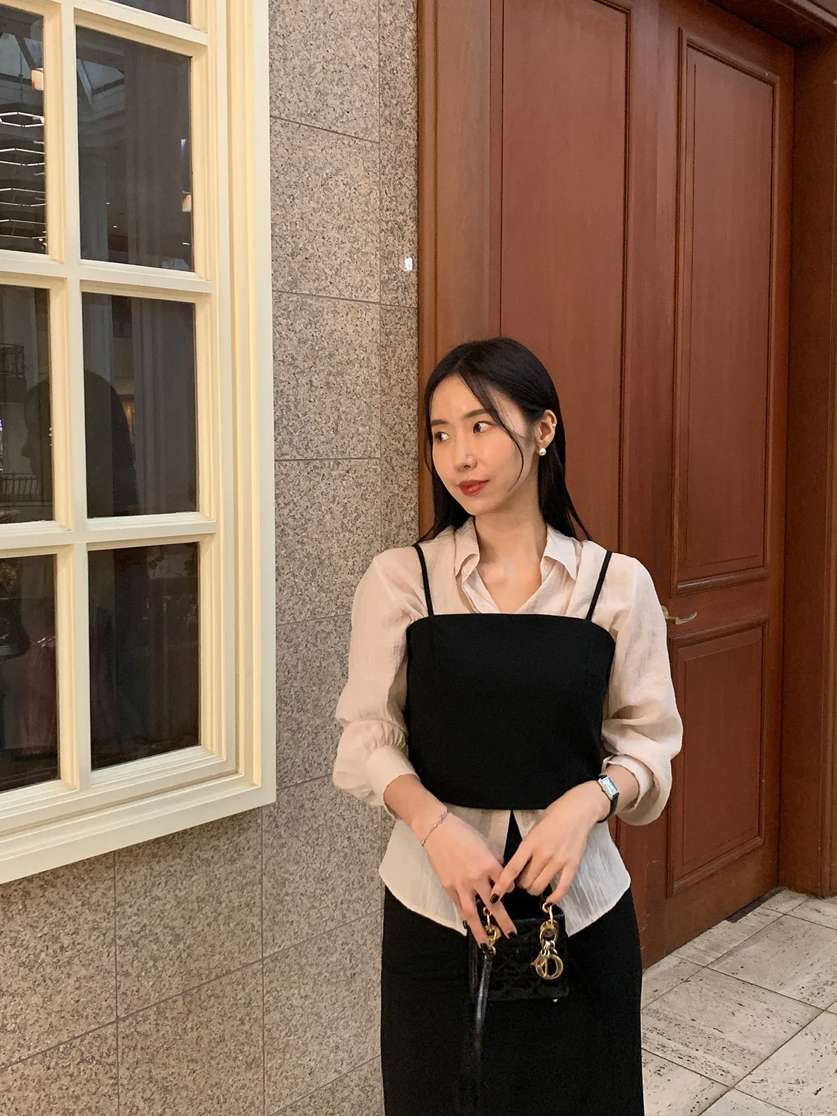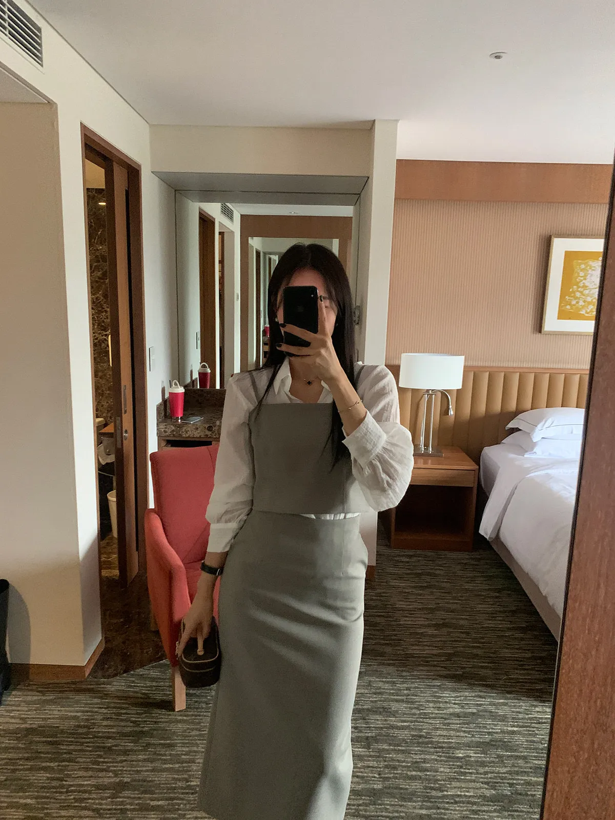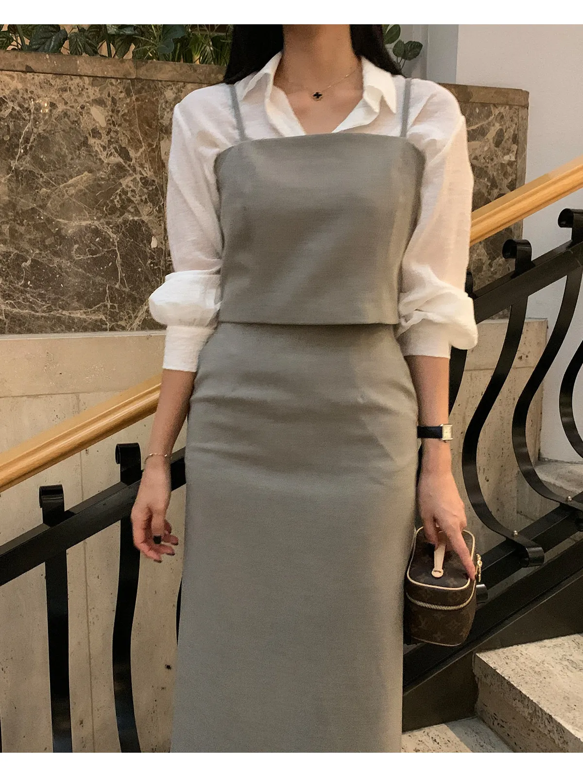 極簡緊身胸衣襯衫+顯瘦H半裙