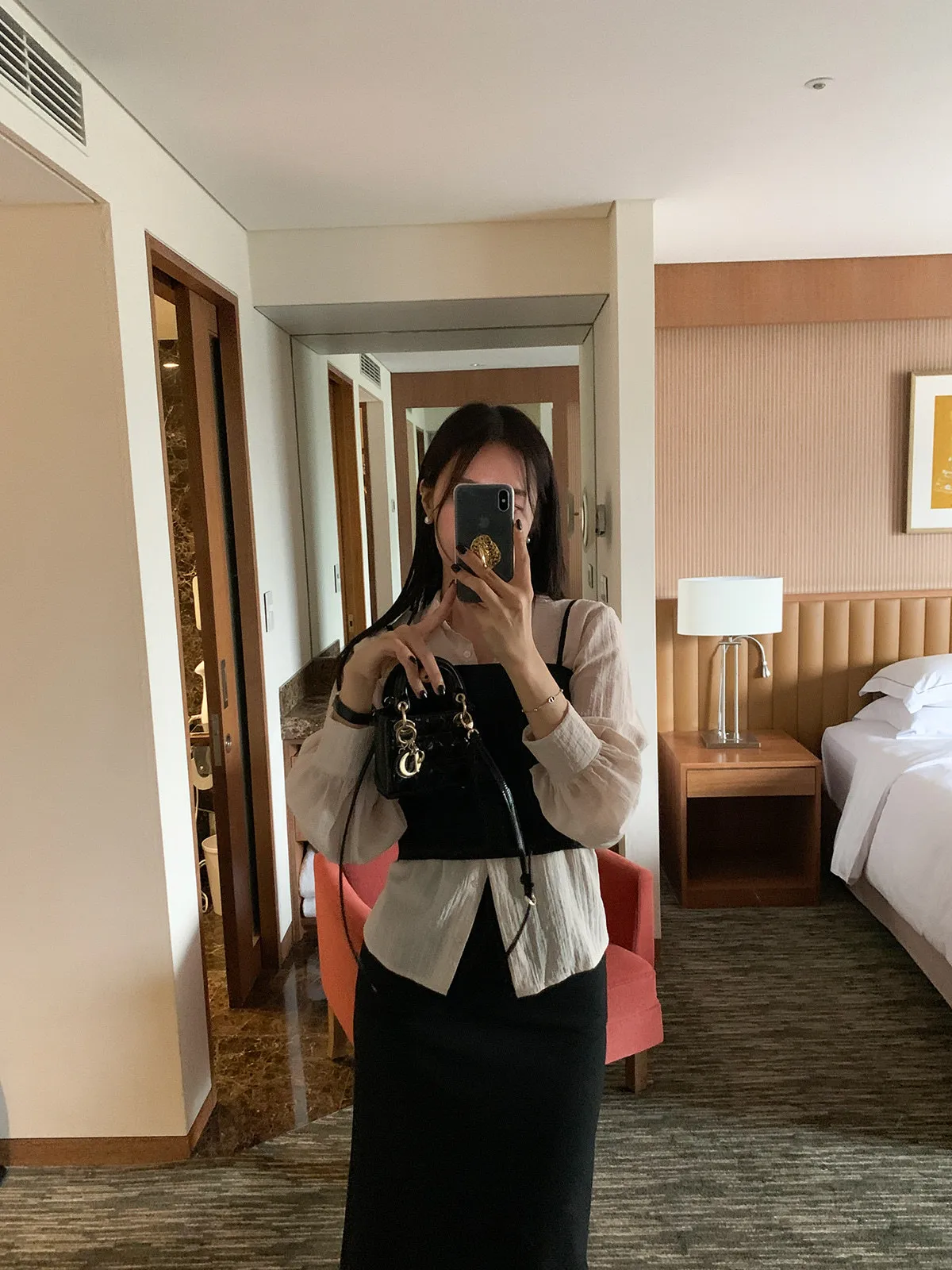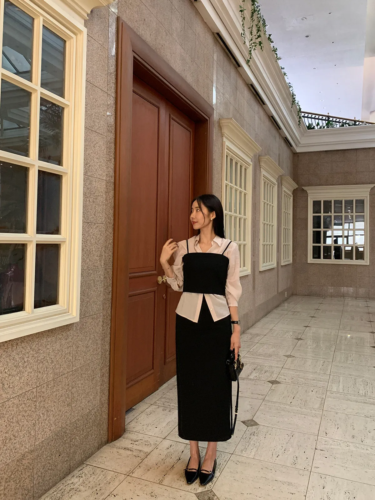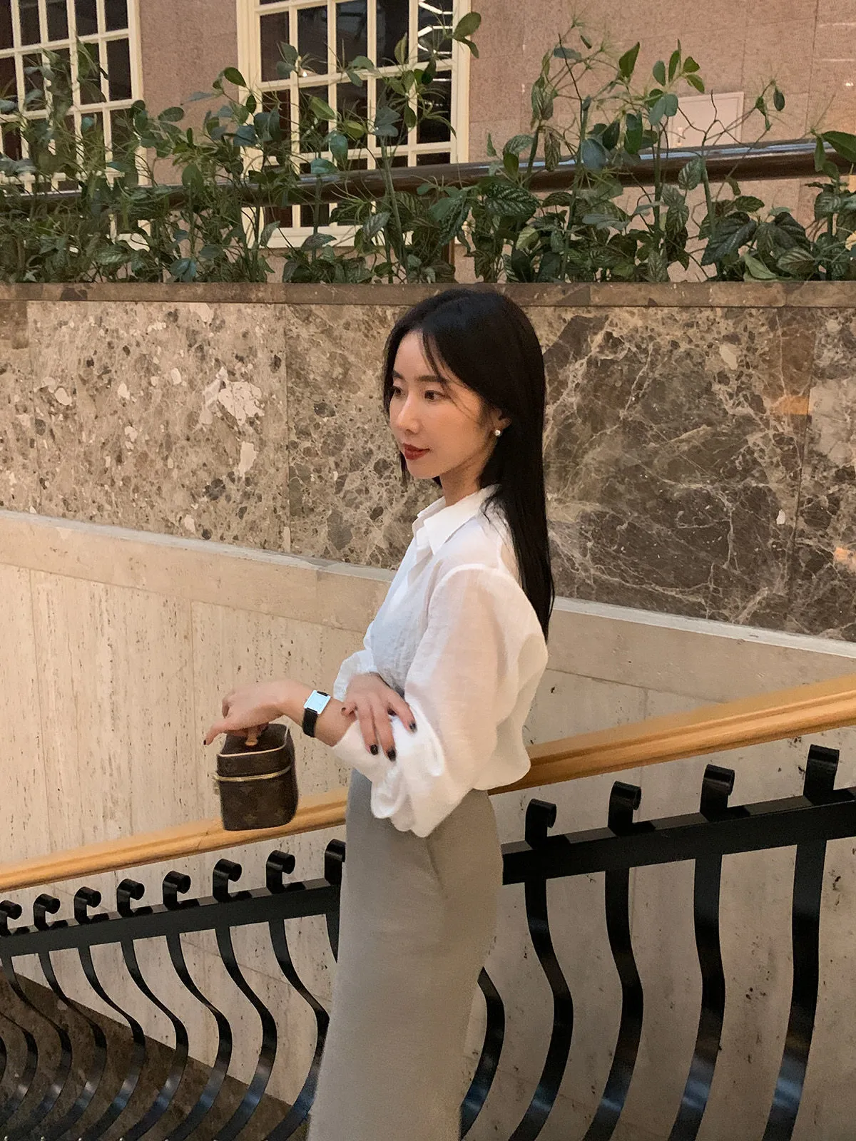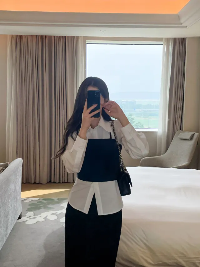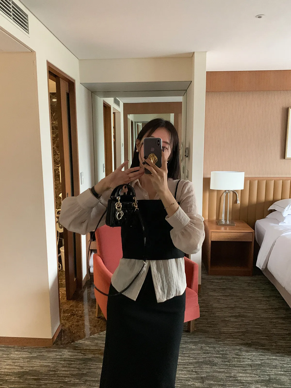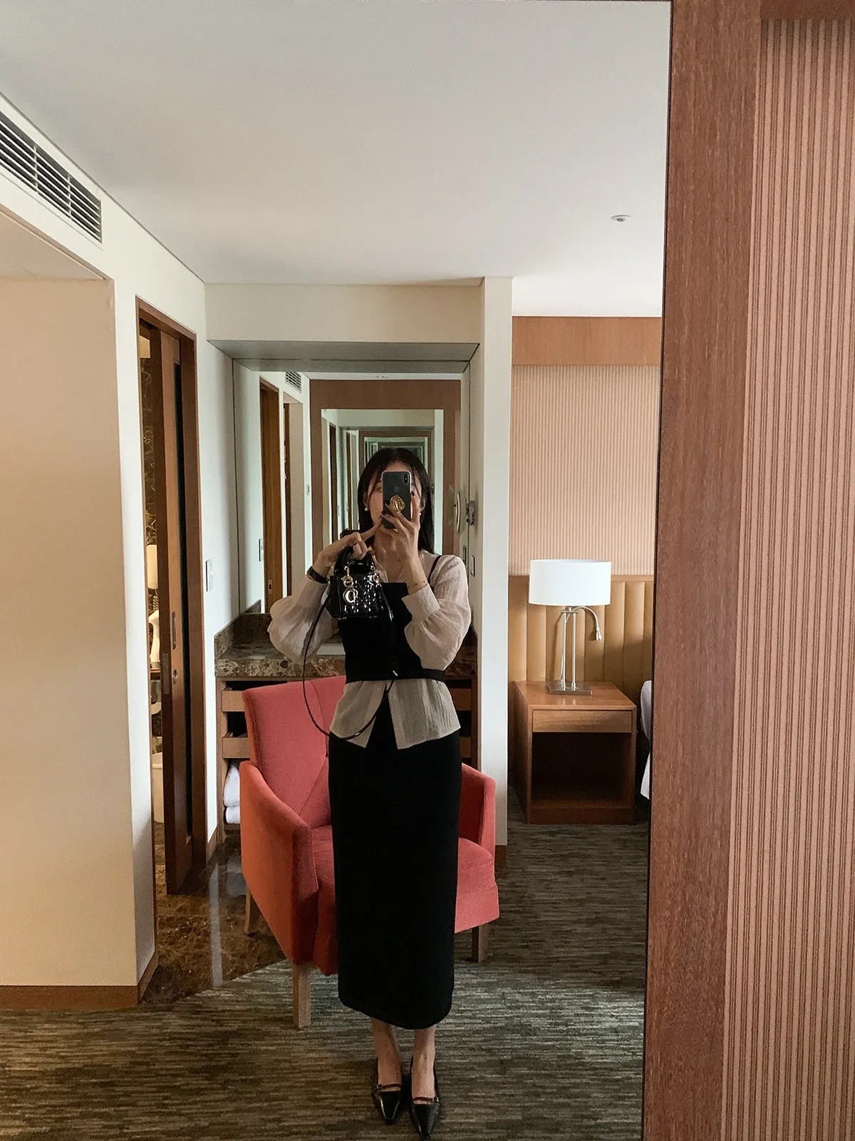 極簡緊身胸衣襯衫+顯瘦H半裙