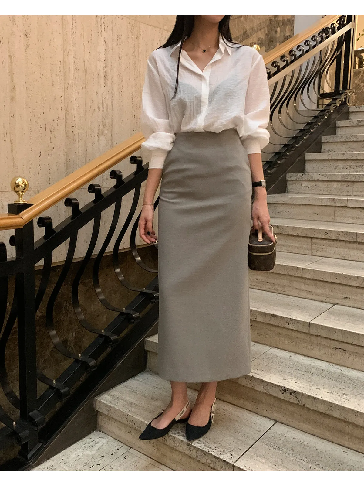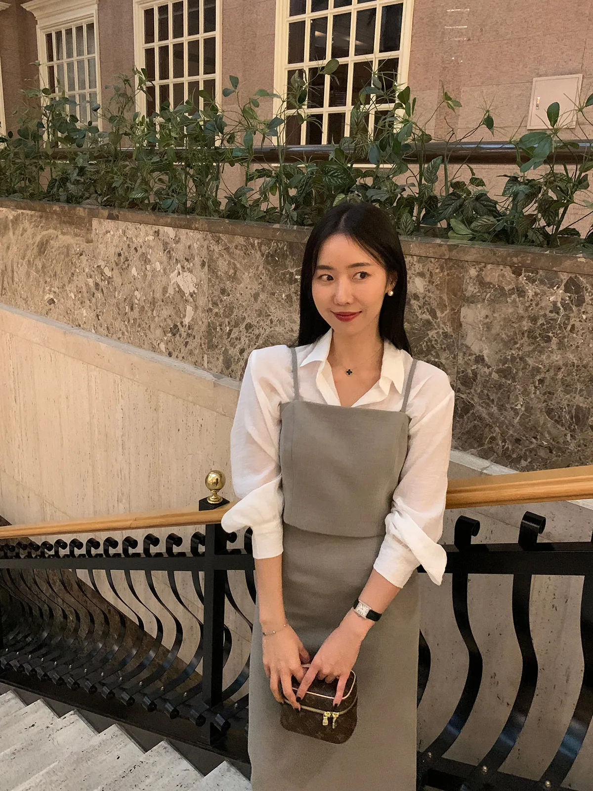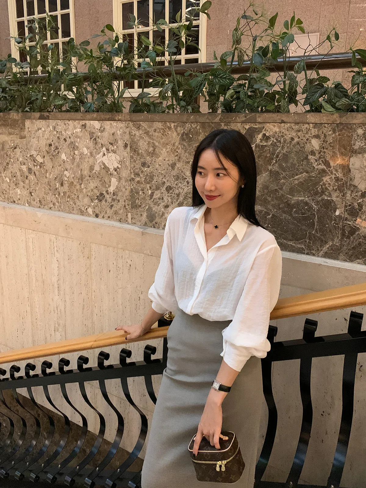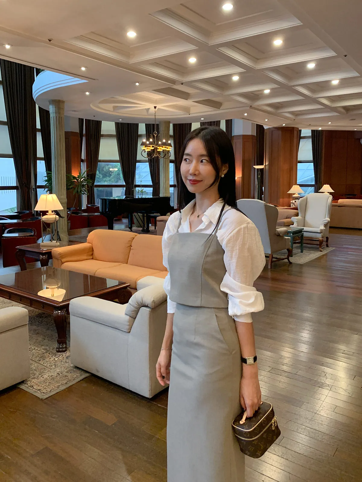 極簡緊身胸衣襯衫+顯瘦H半裙