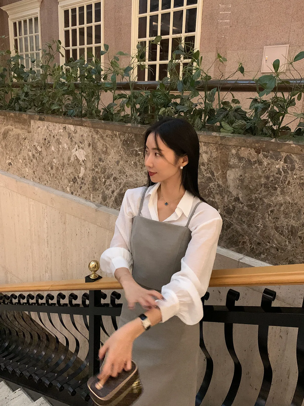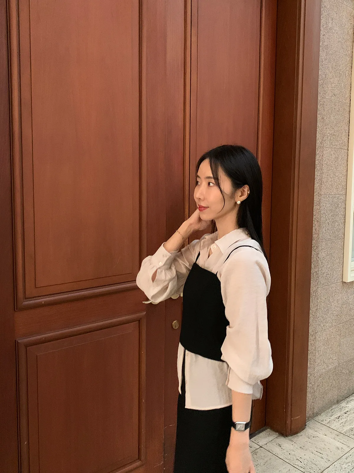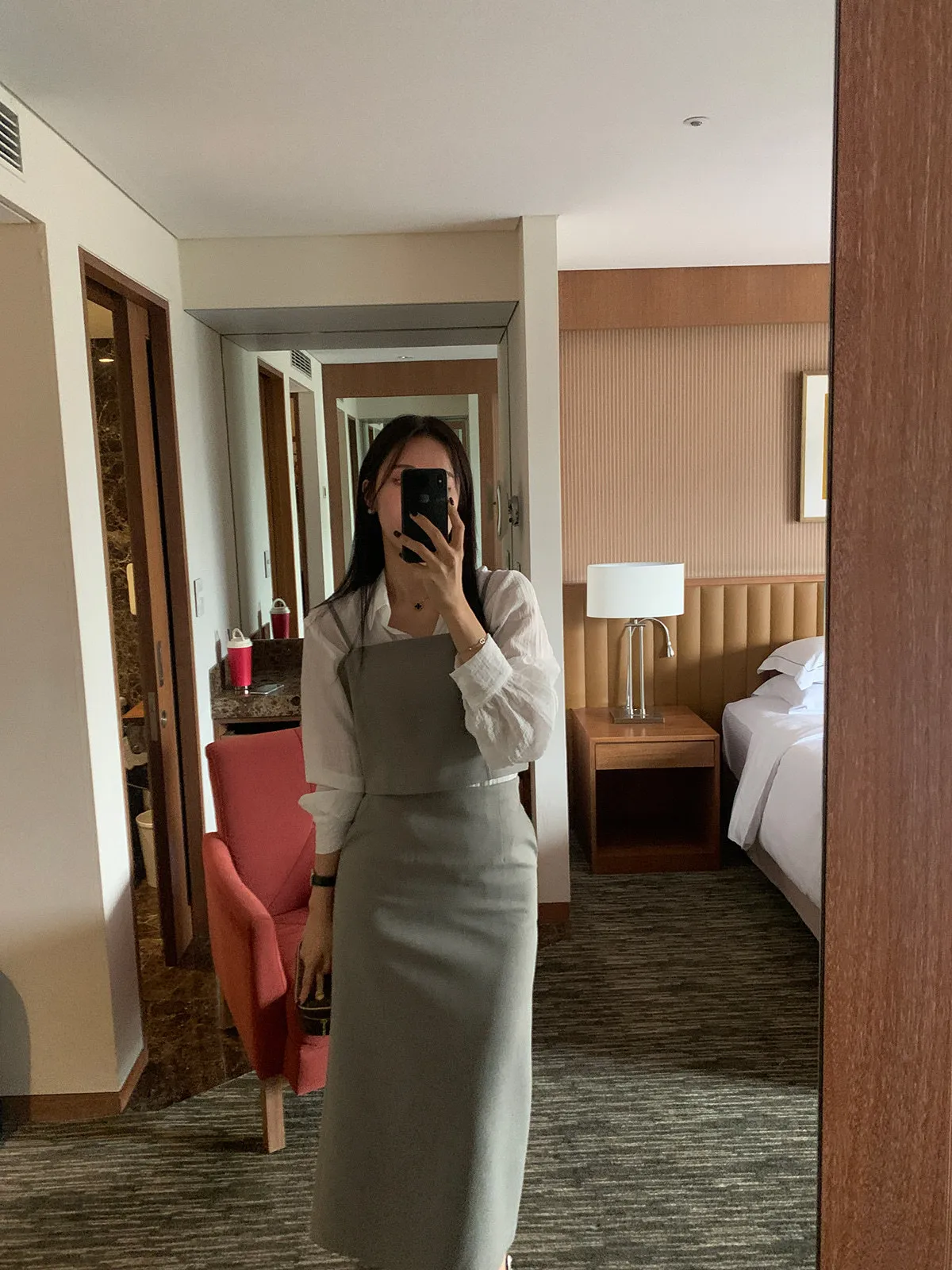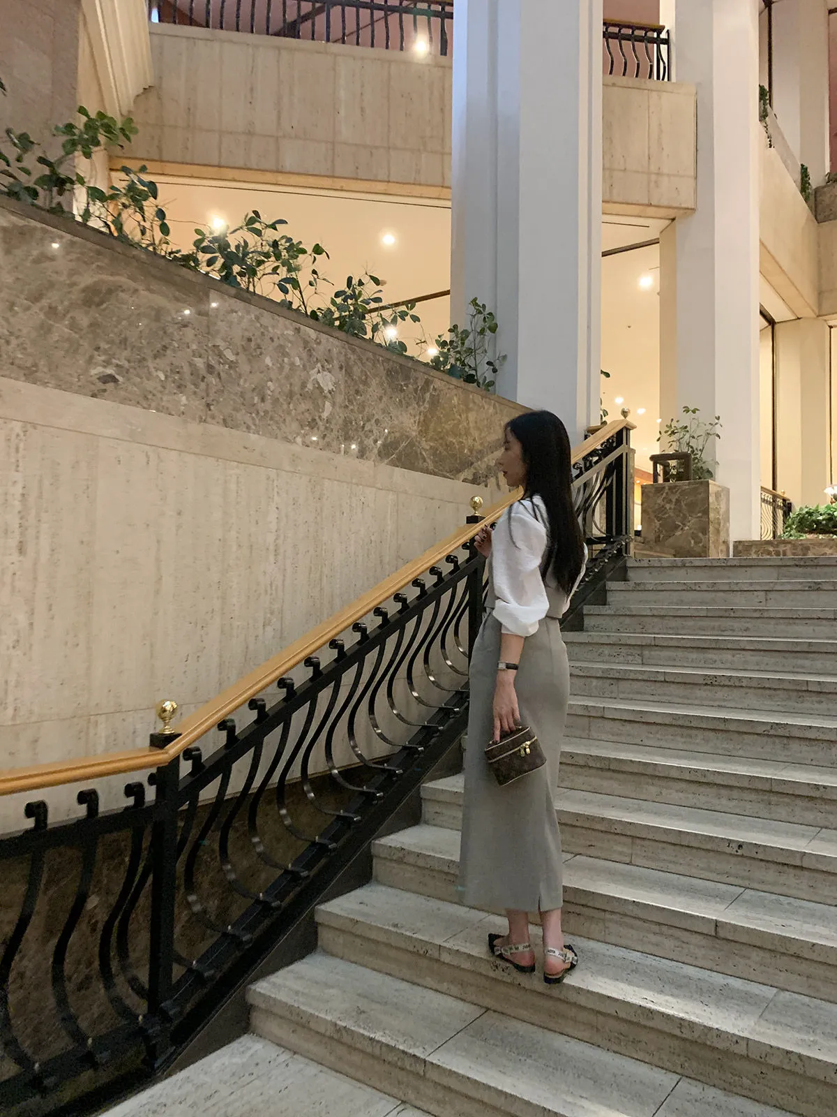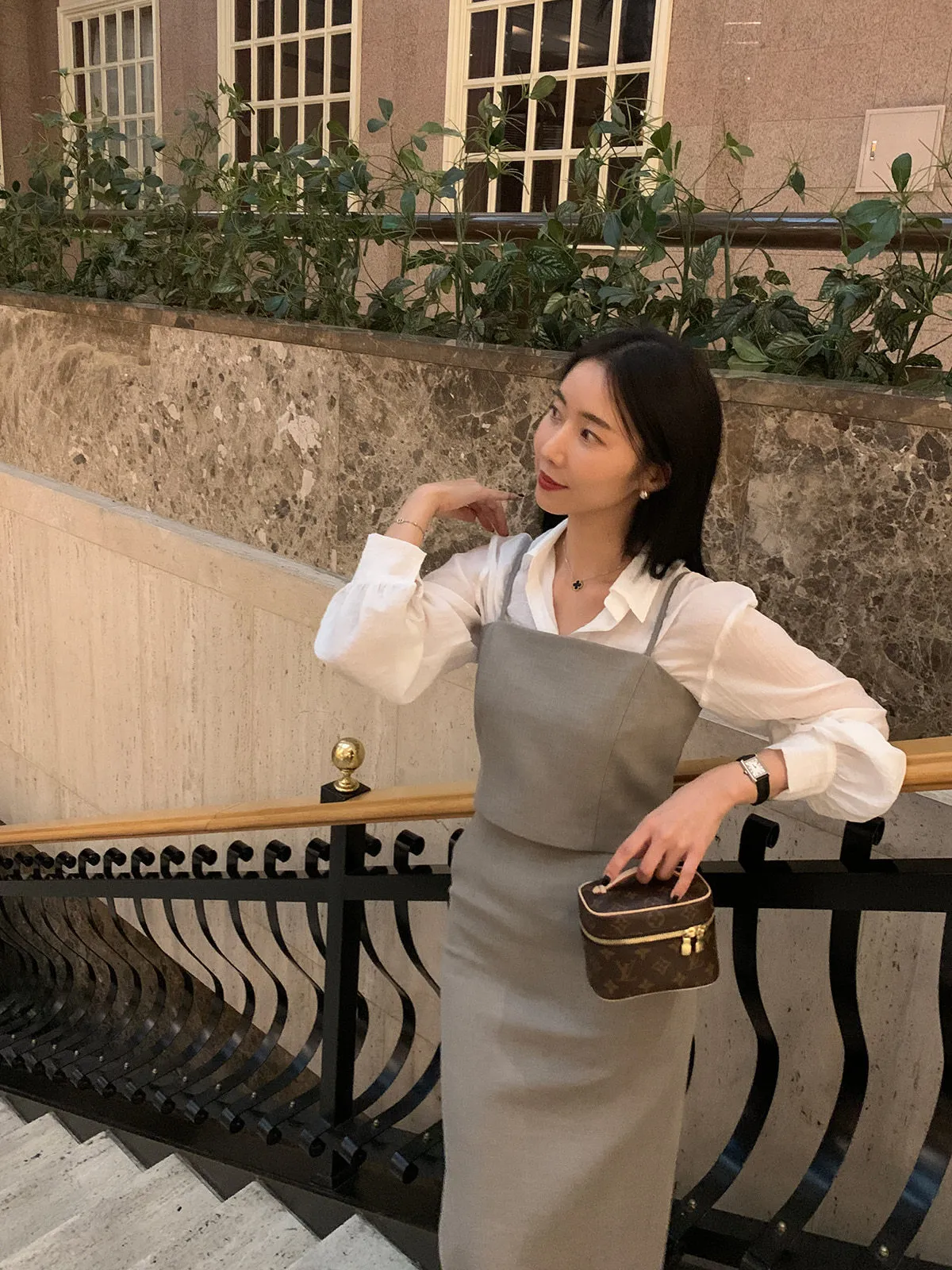 極簡緊身胸衣襯衫+顯瘦H半裙