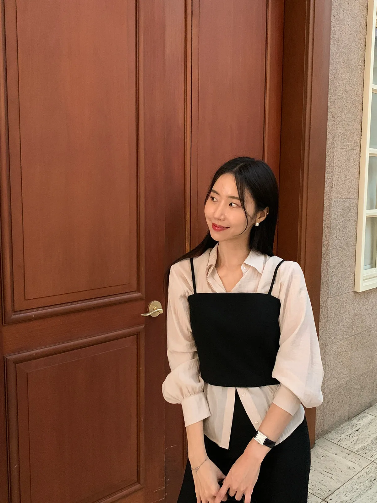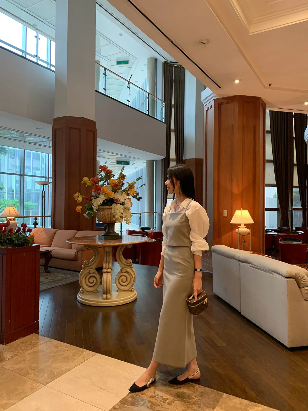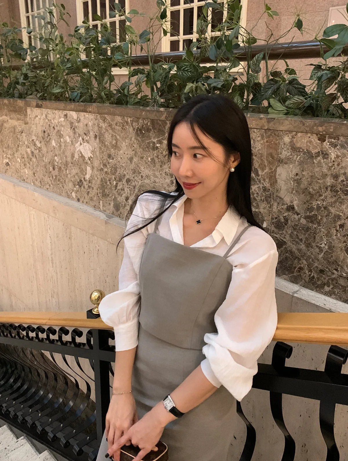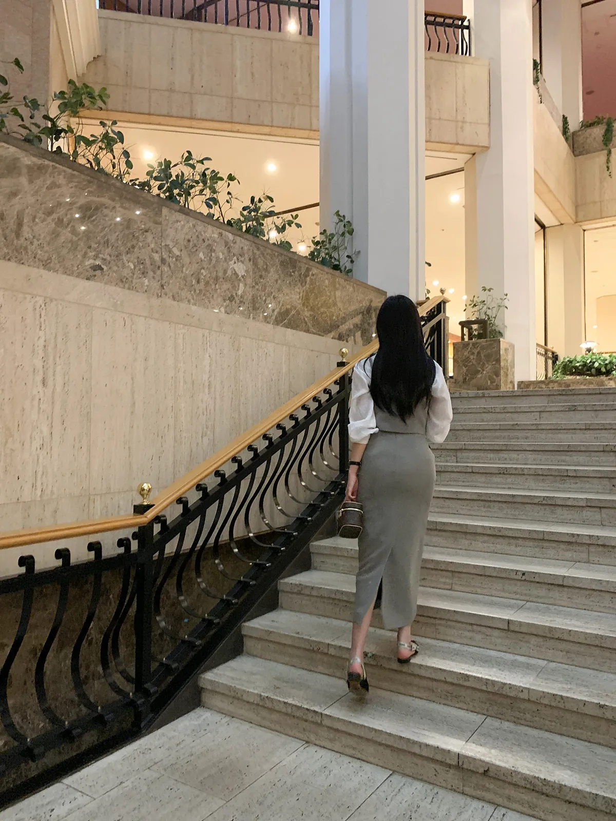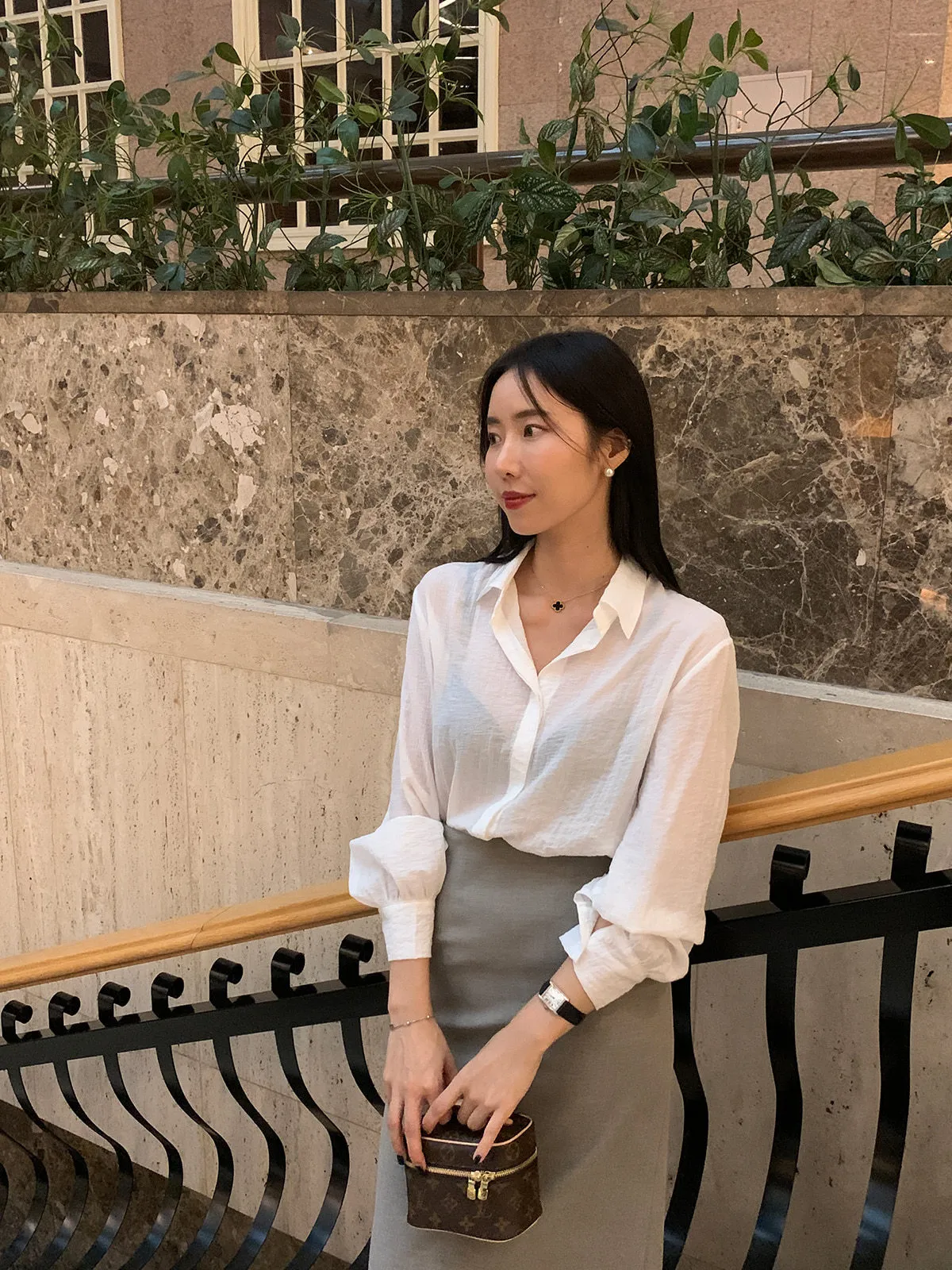 極簡緊身胸衣襯衫+顯瘦H半裙