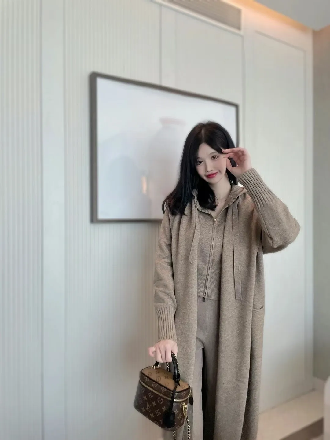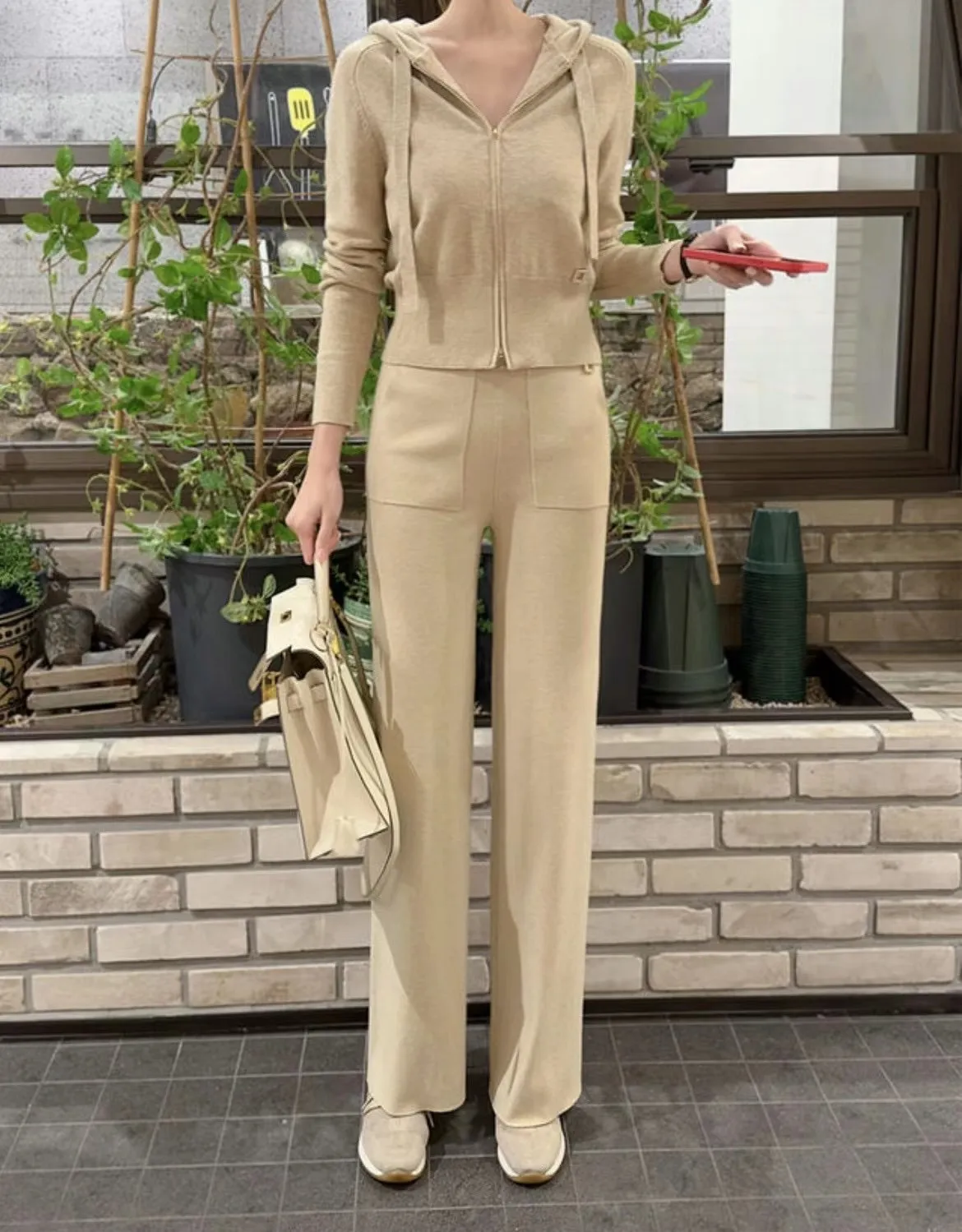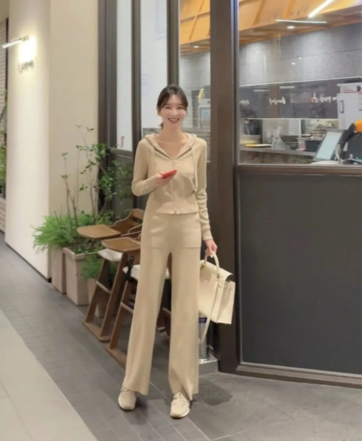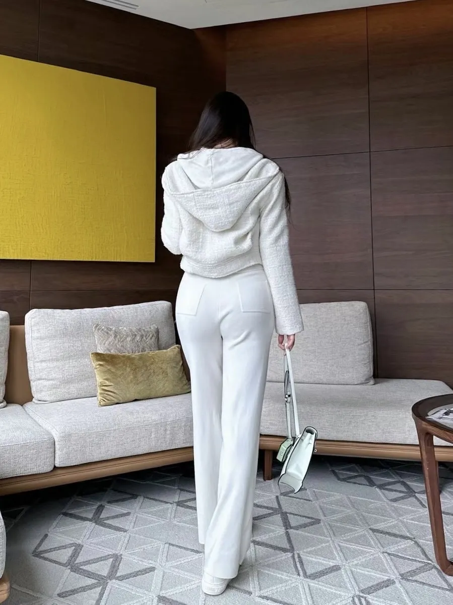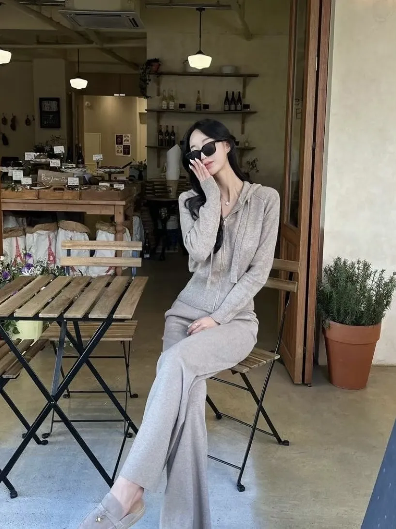 氣質明星款 羊絨連帽外套 休閒舒適套裝 休閒長褲 set