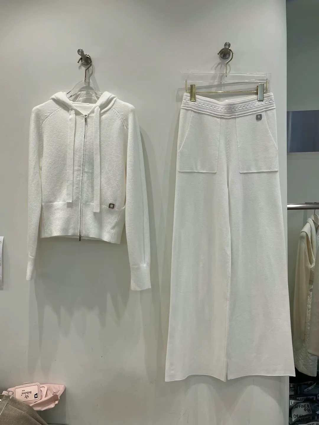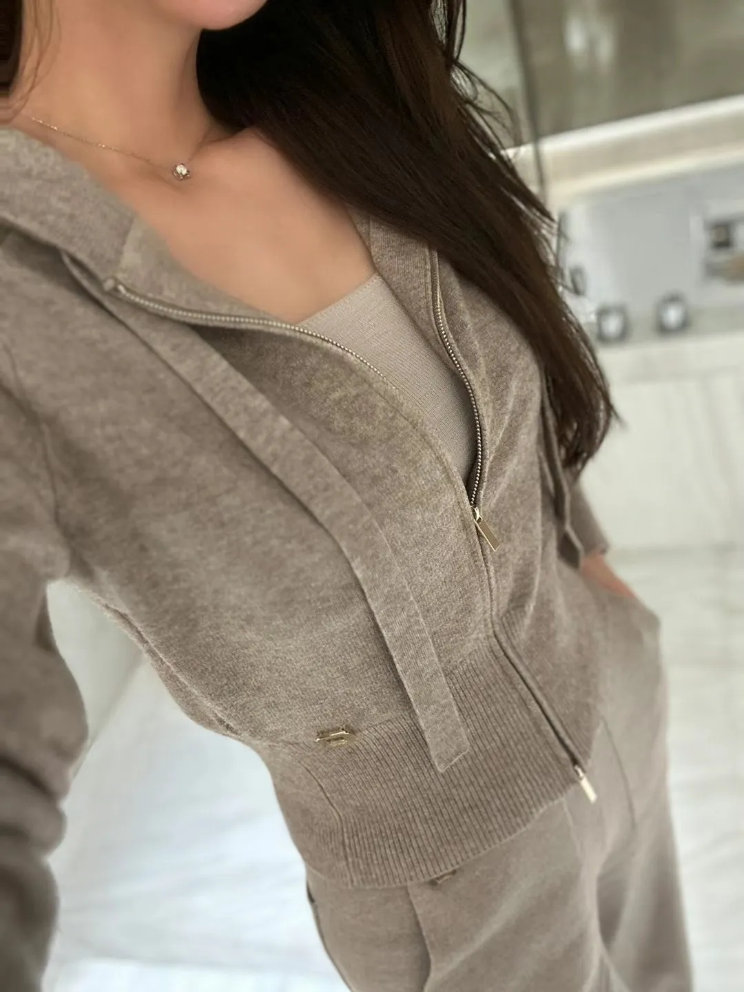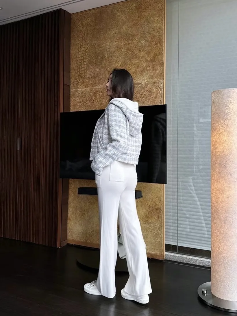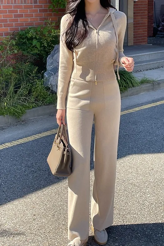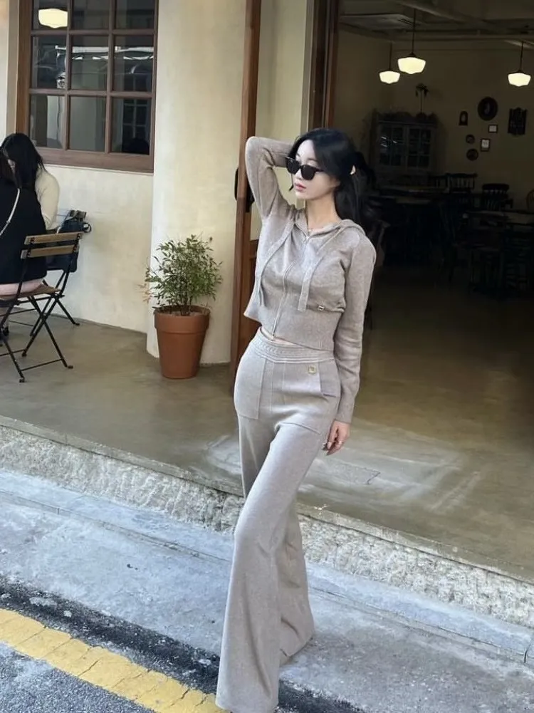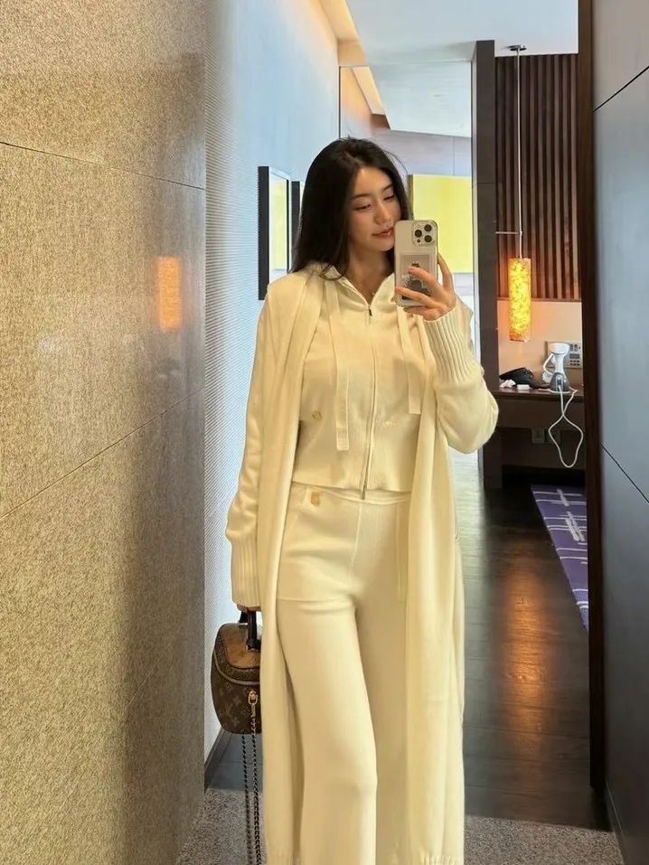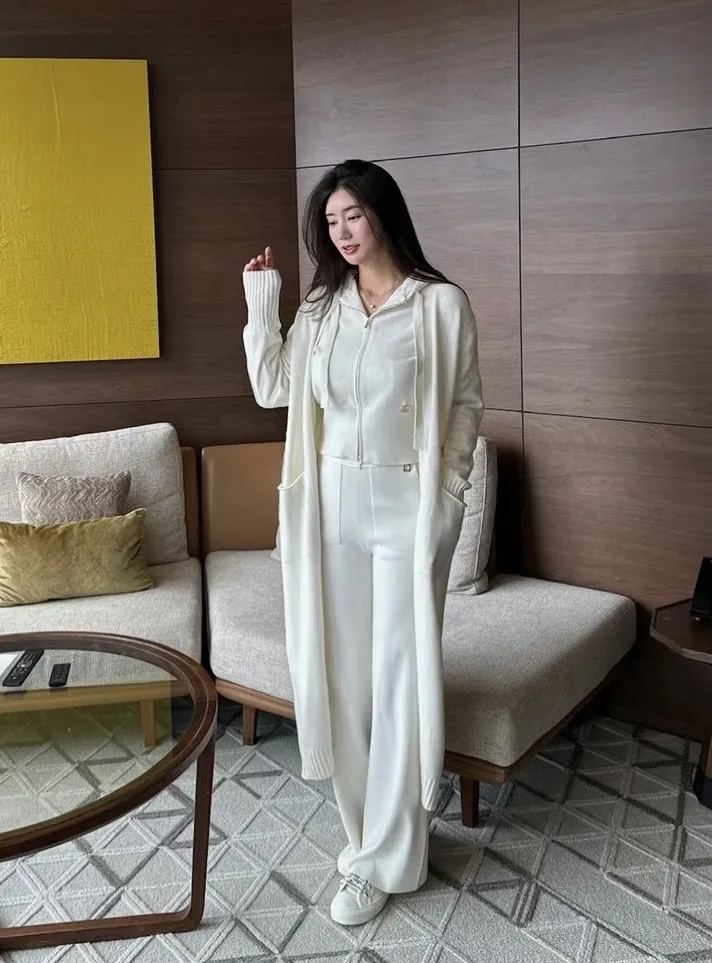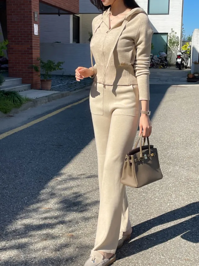 氣質明星款 羊絨連帽外套 休閒舒適套裝 休閒長褲 set