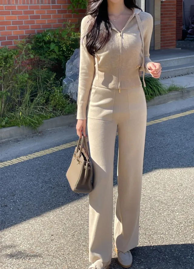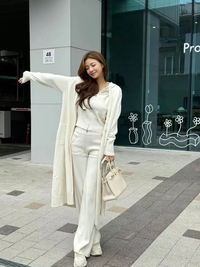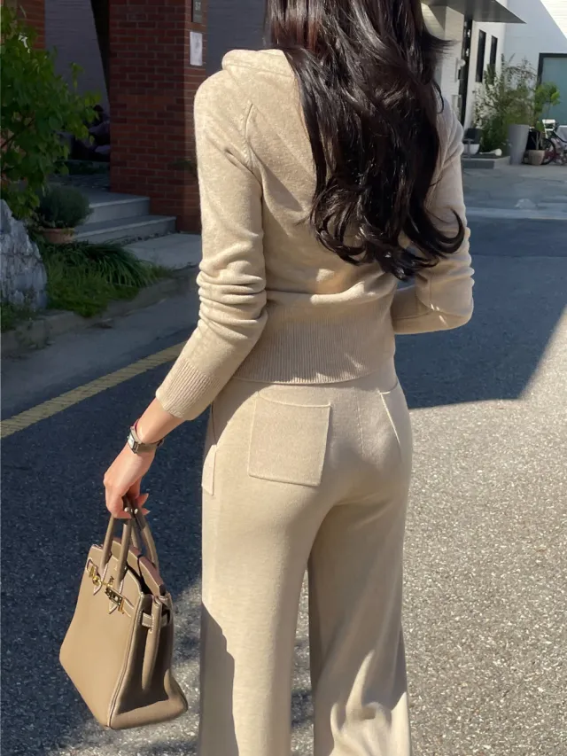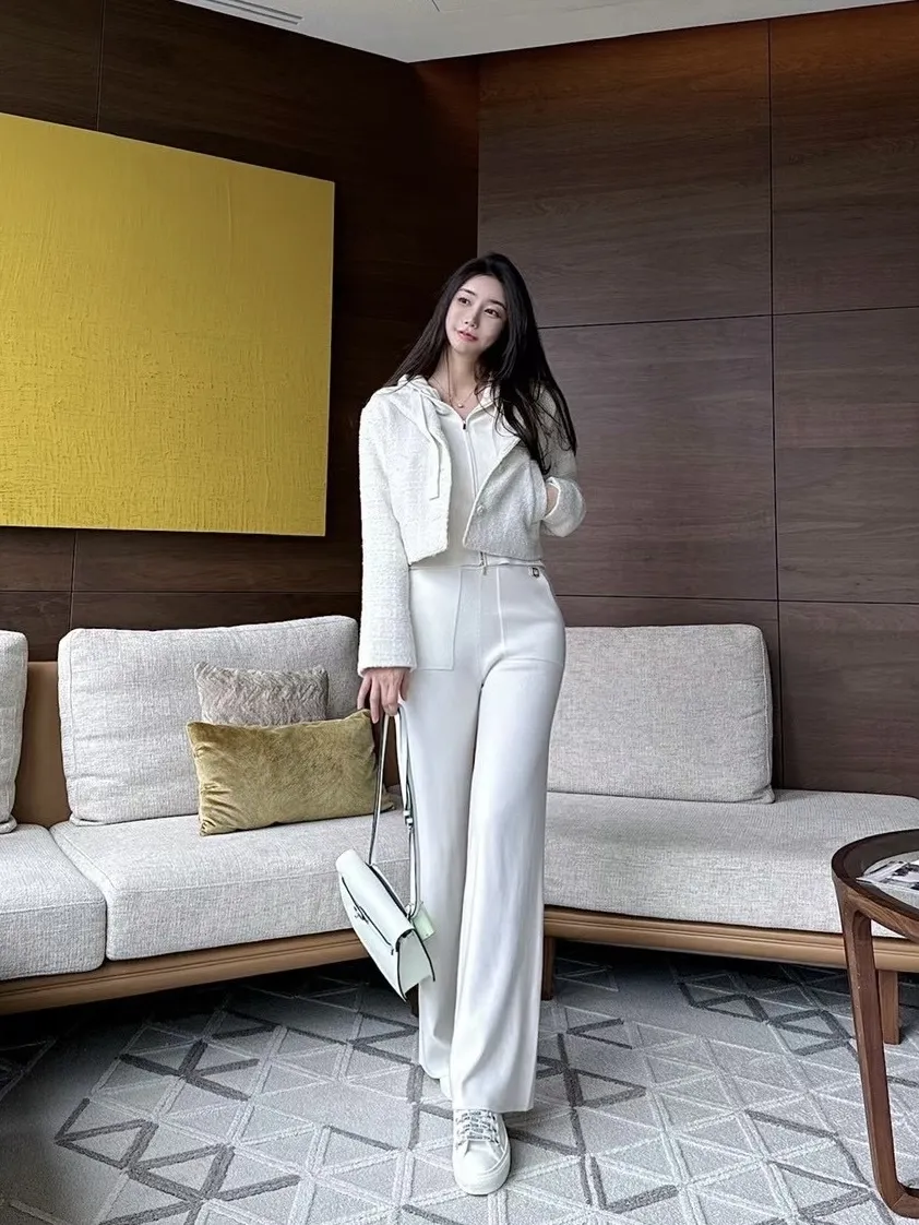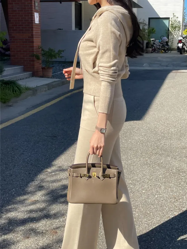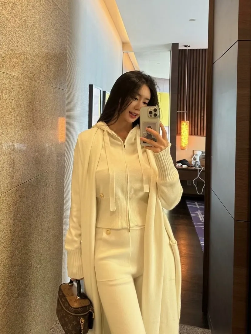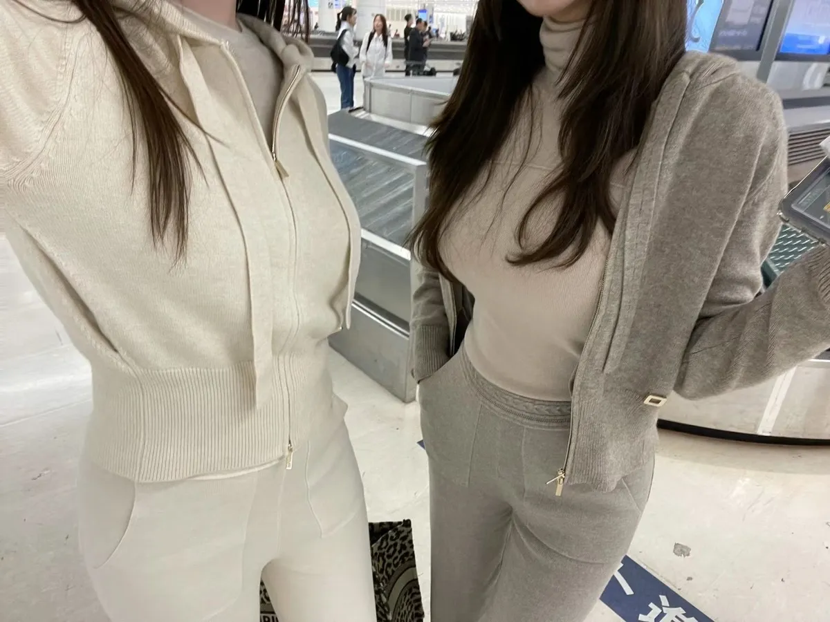 氣質明星款 羊絨連帽外套 休閒舒適套裝 休閒長褲 set