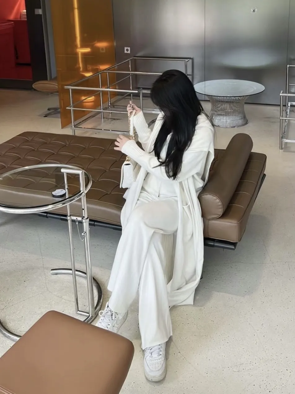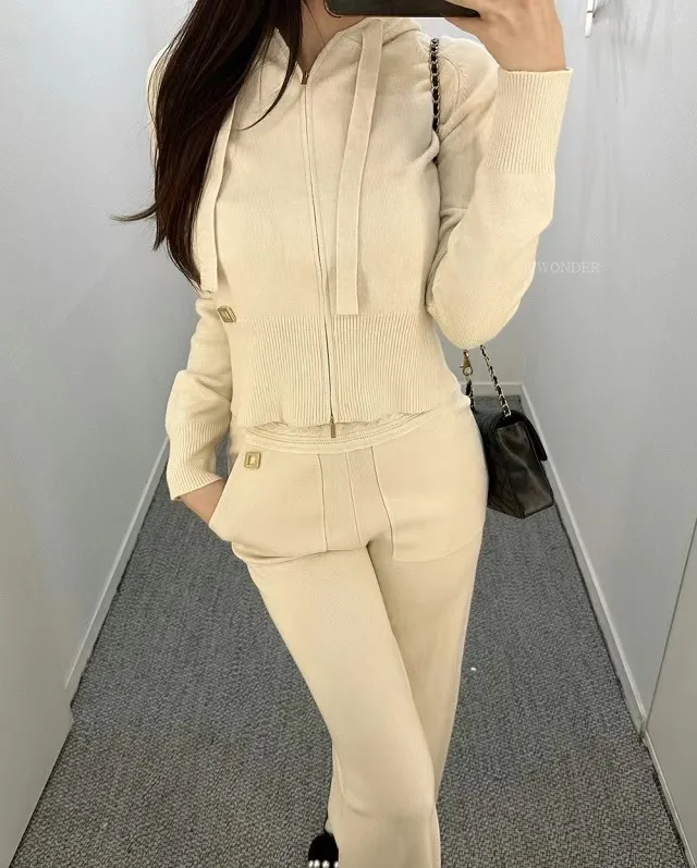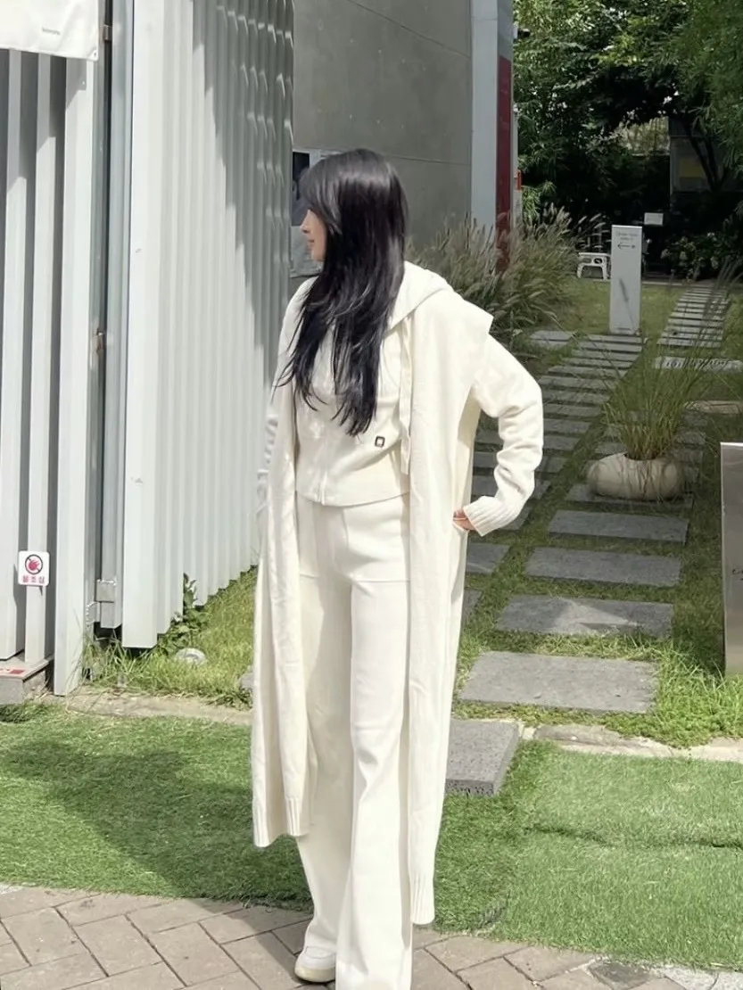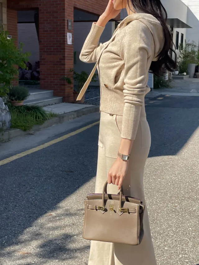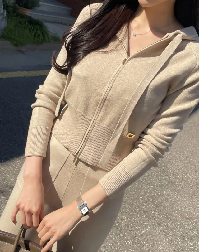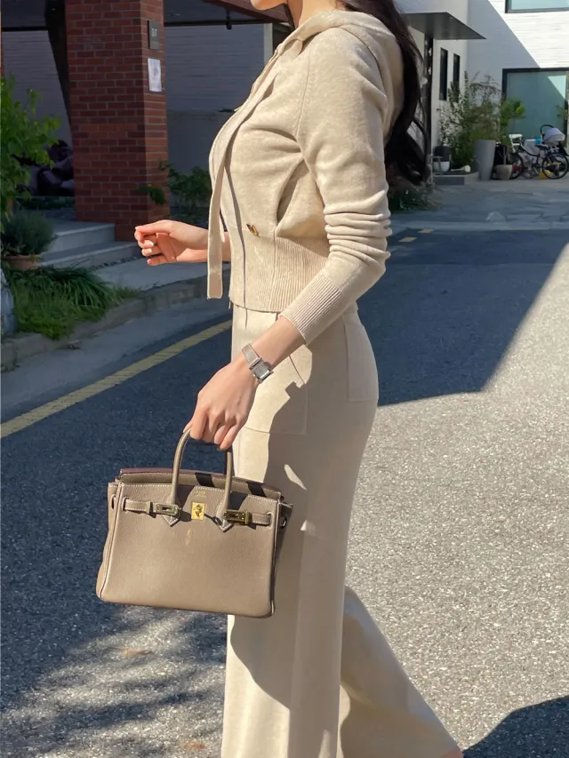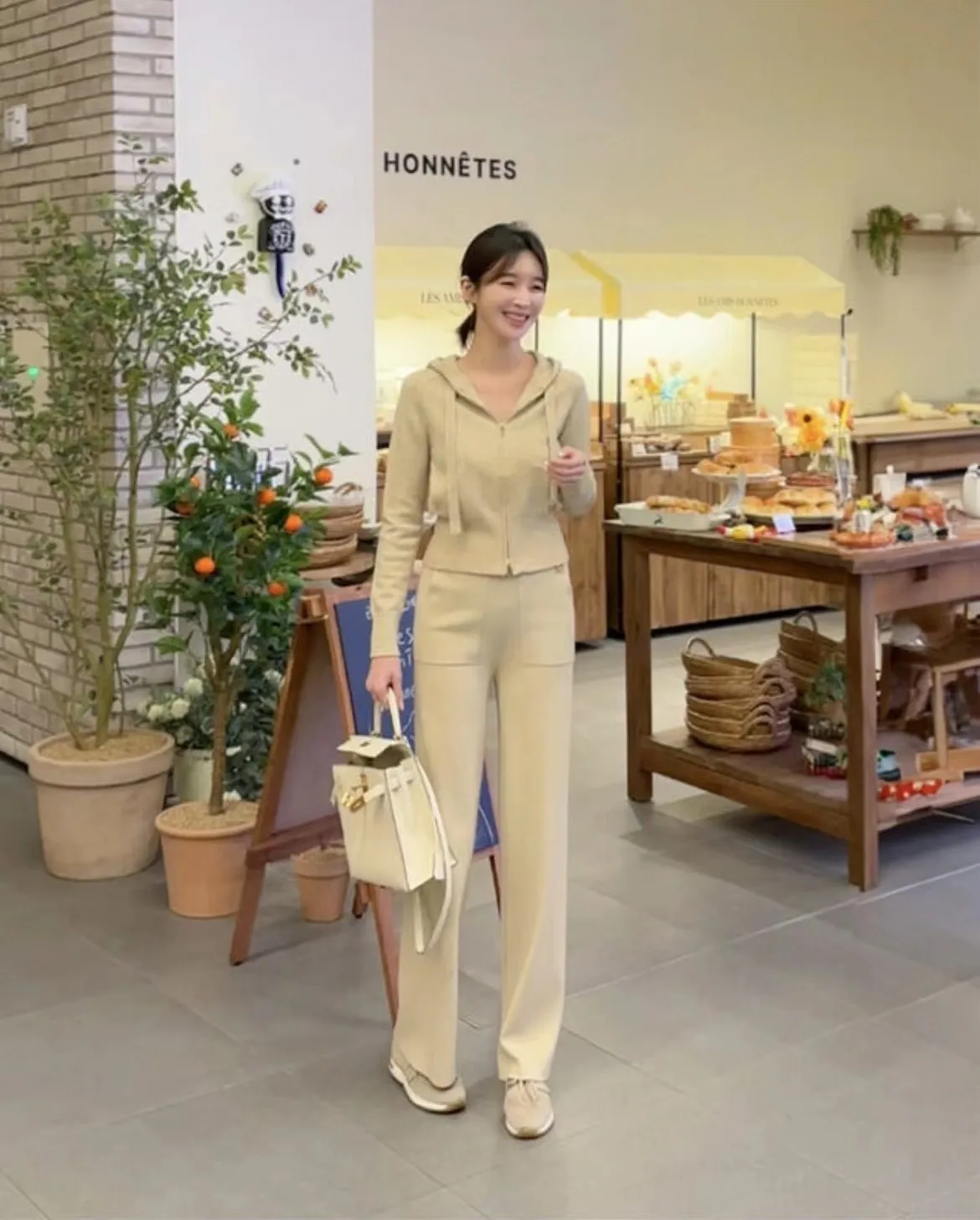 氣質明星款 羊絨連帽外套 休閒舒適套裝 休閒長褲 set