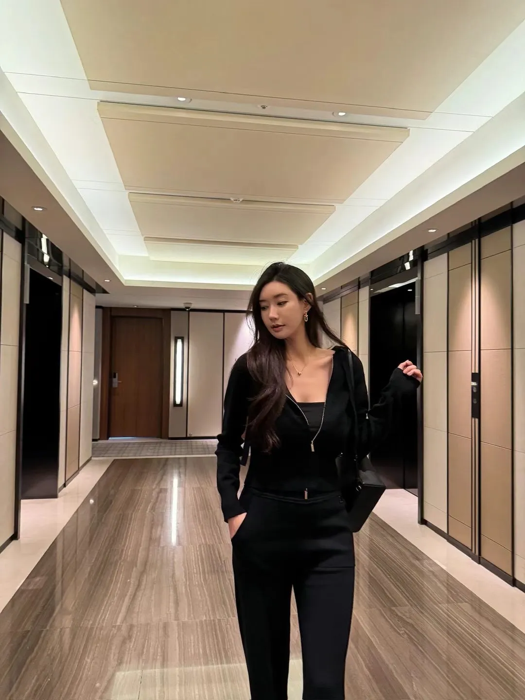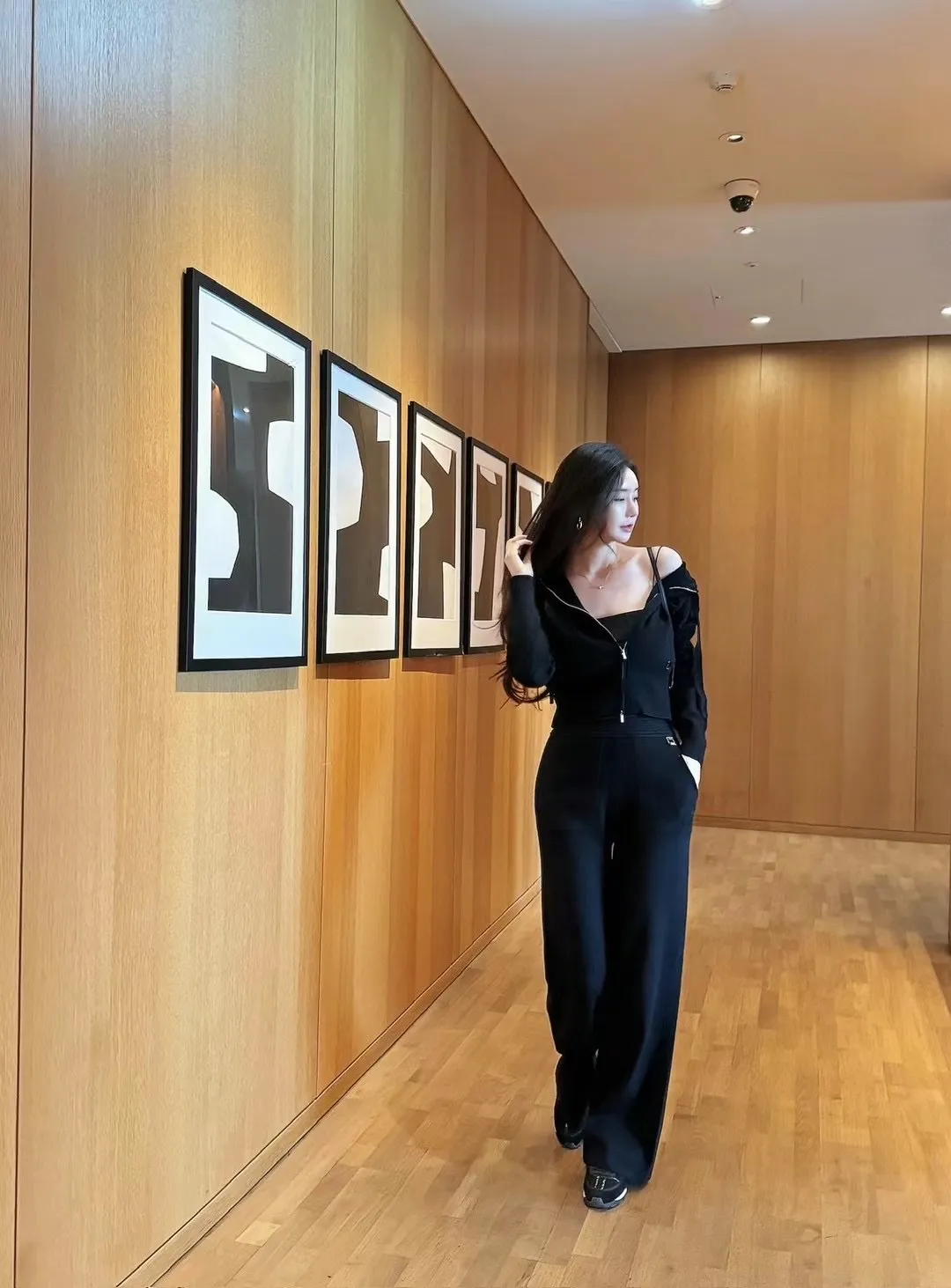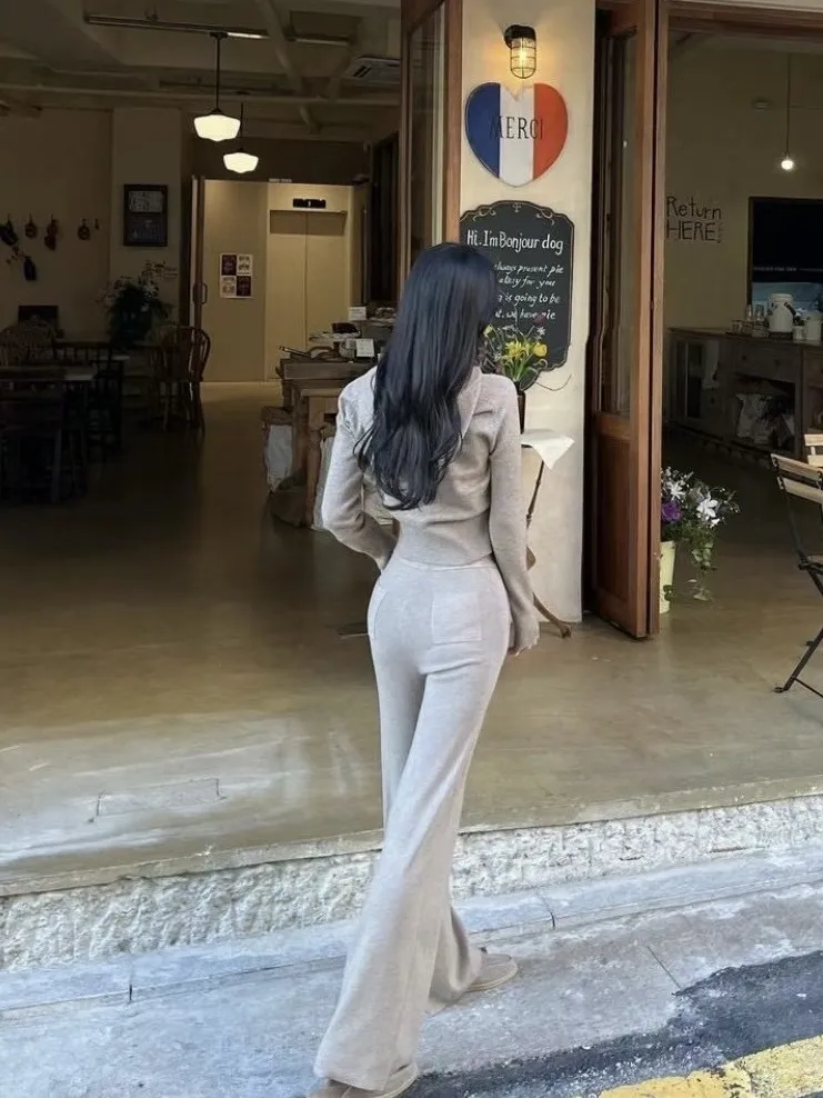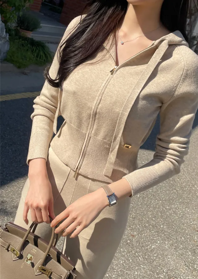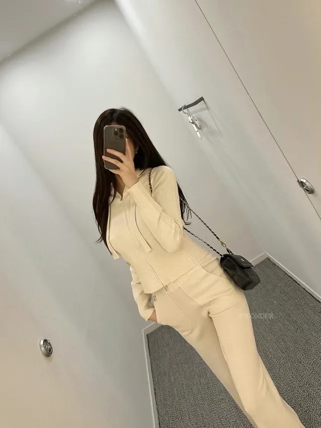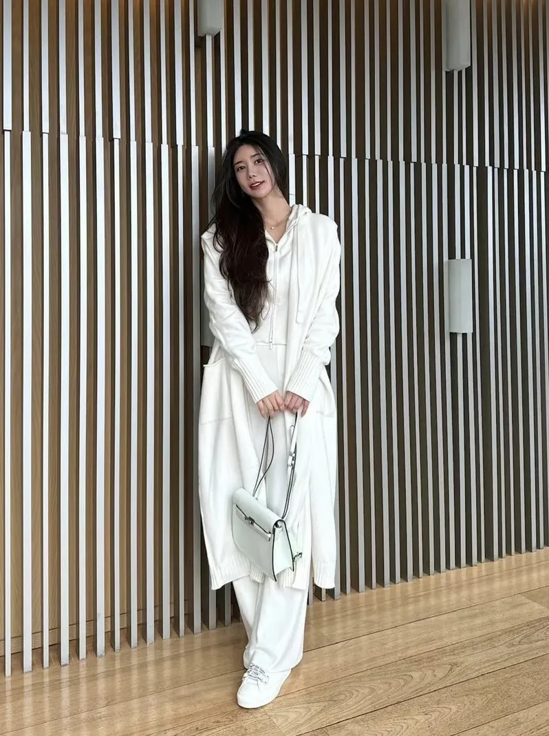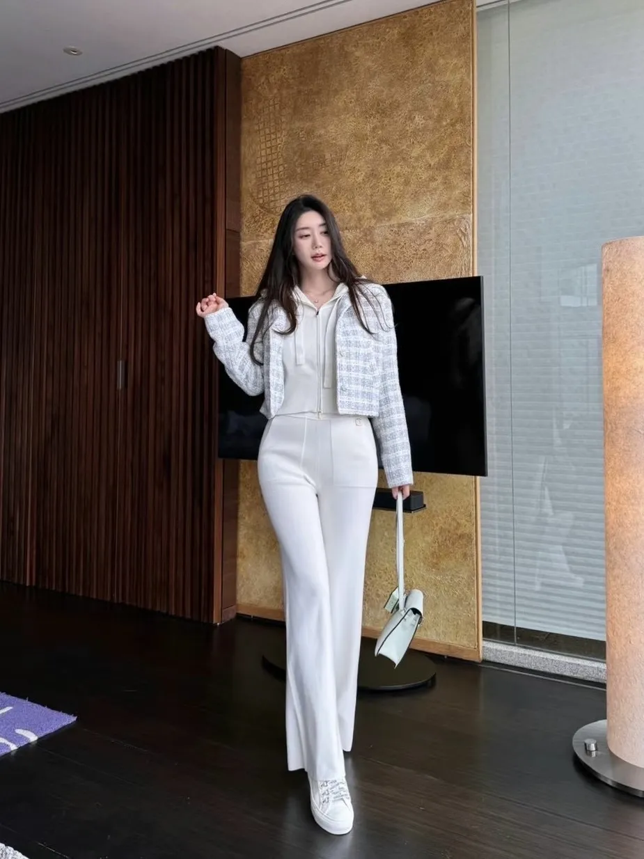 氣質明星款 羊絨連帽外套 休閒舒適套裝 休閒長褲 set