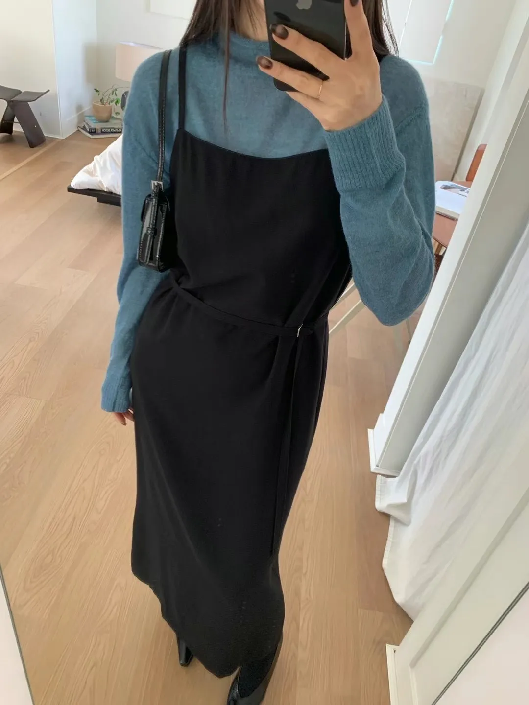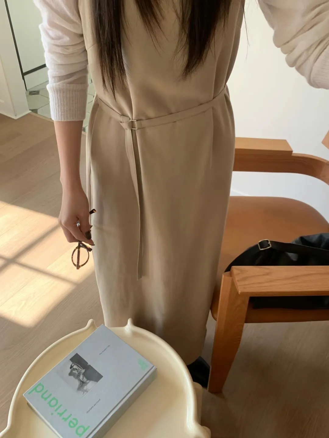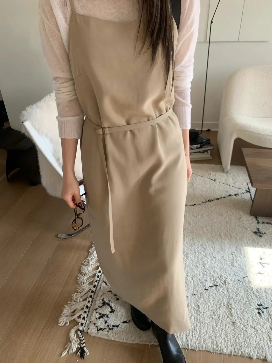 優雅細肩帶修身綁帶長版連身裙