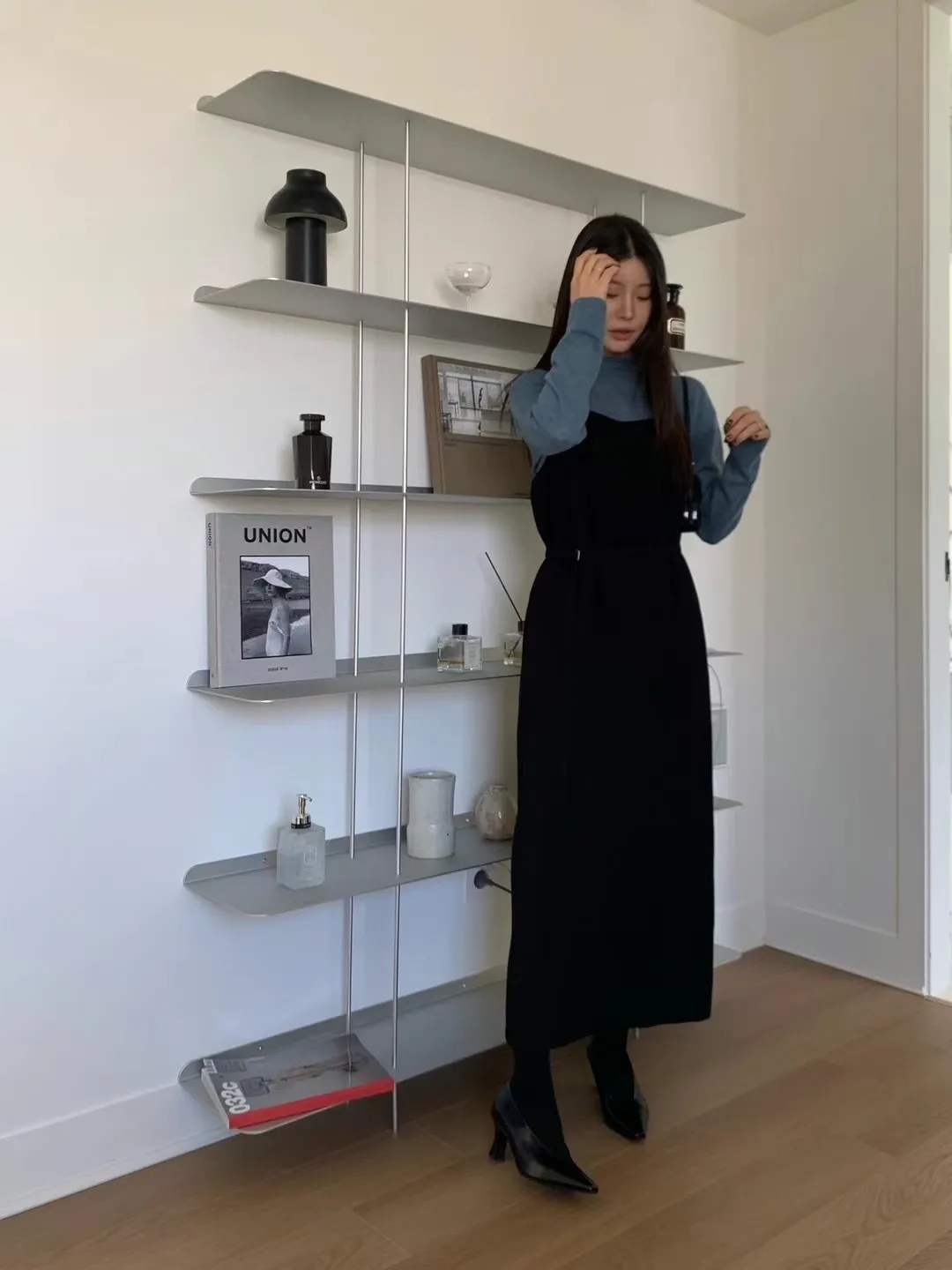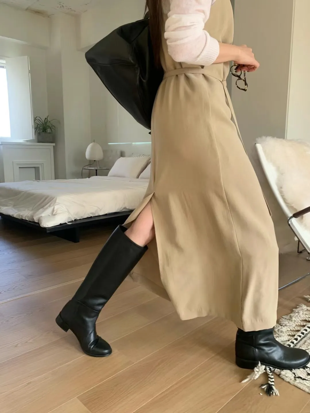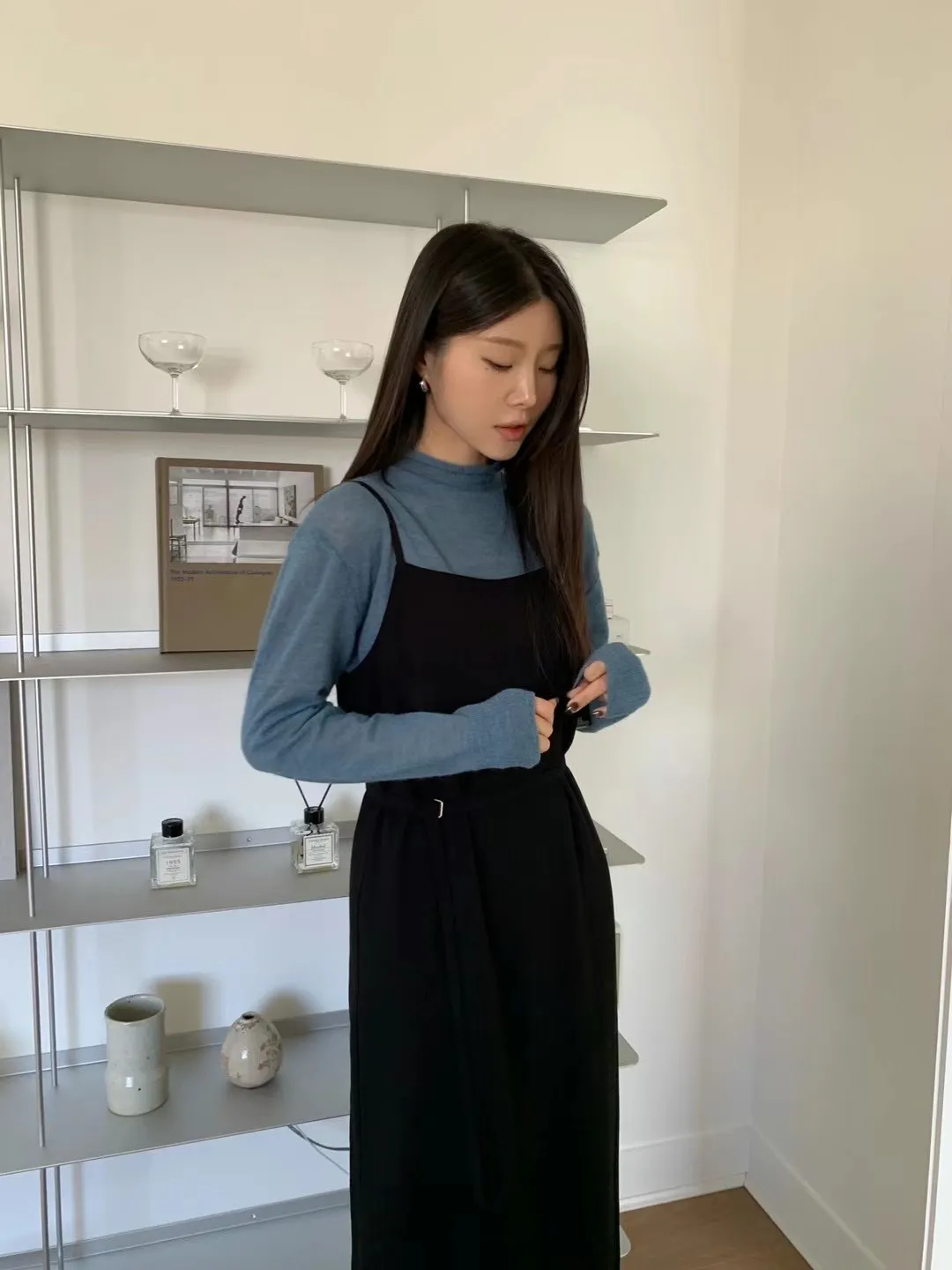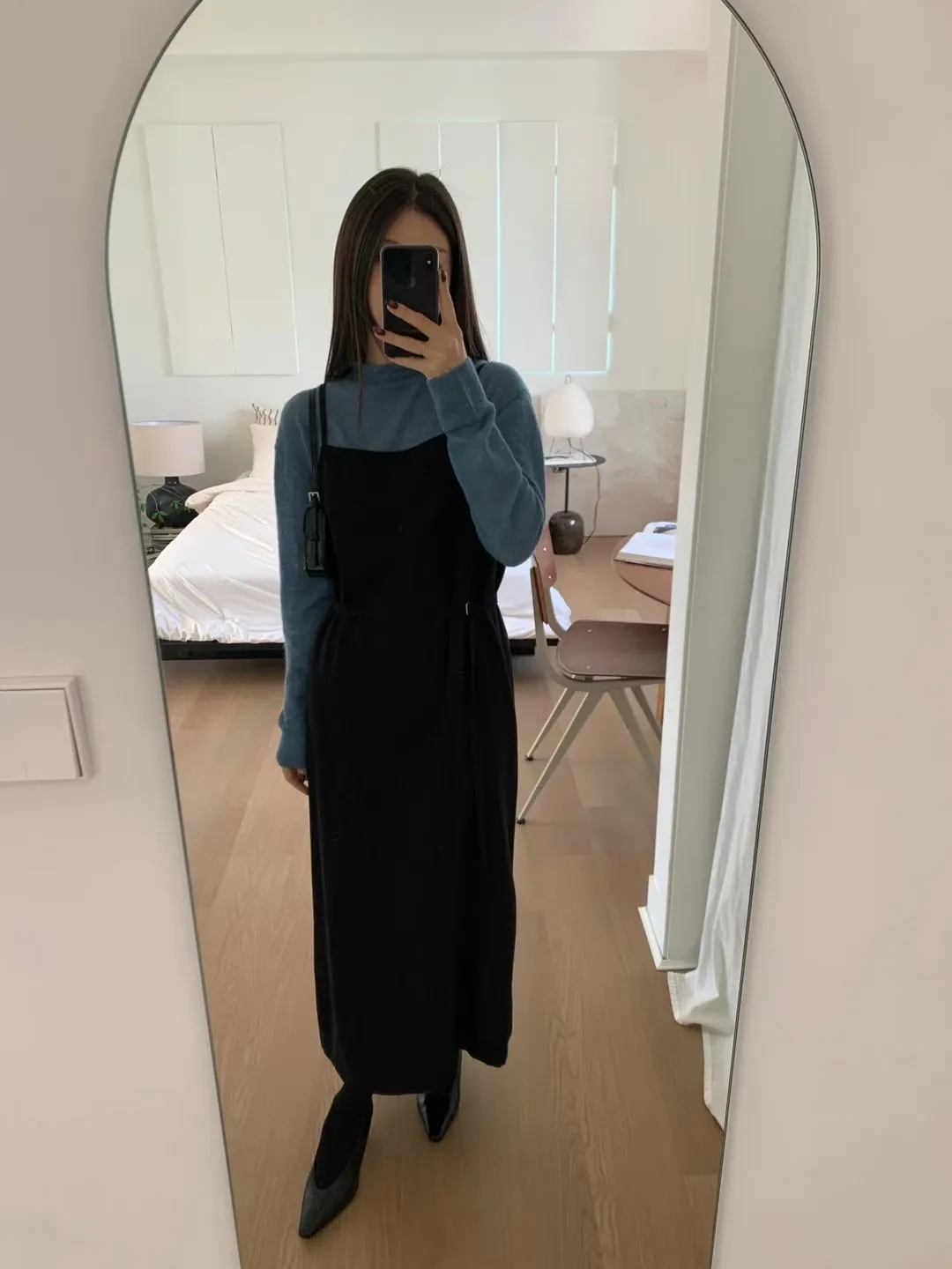 優雅細肩帶修身綁帶長版連身裙