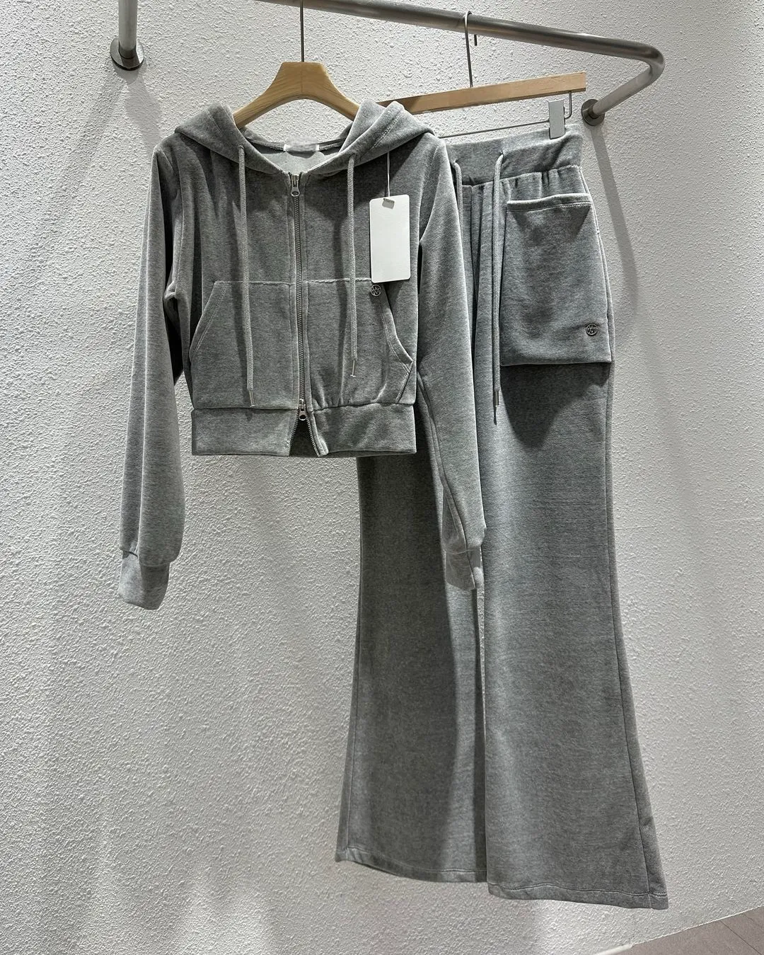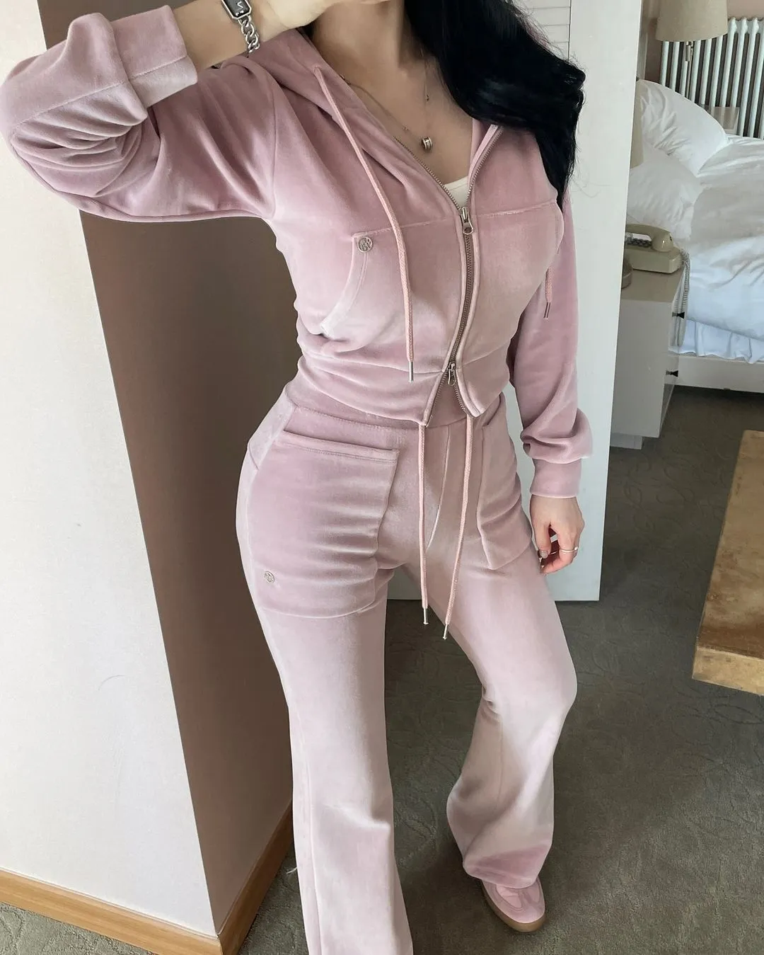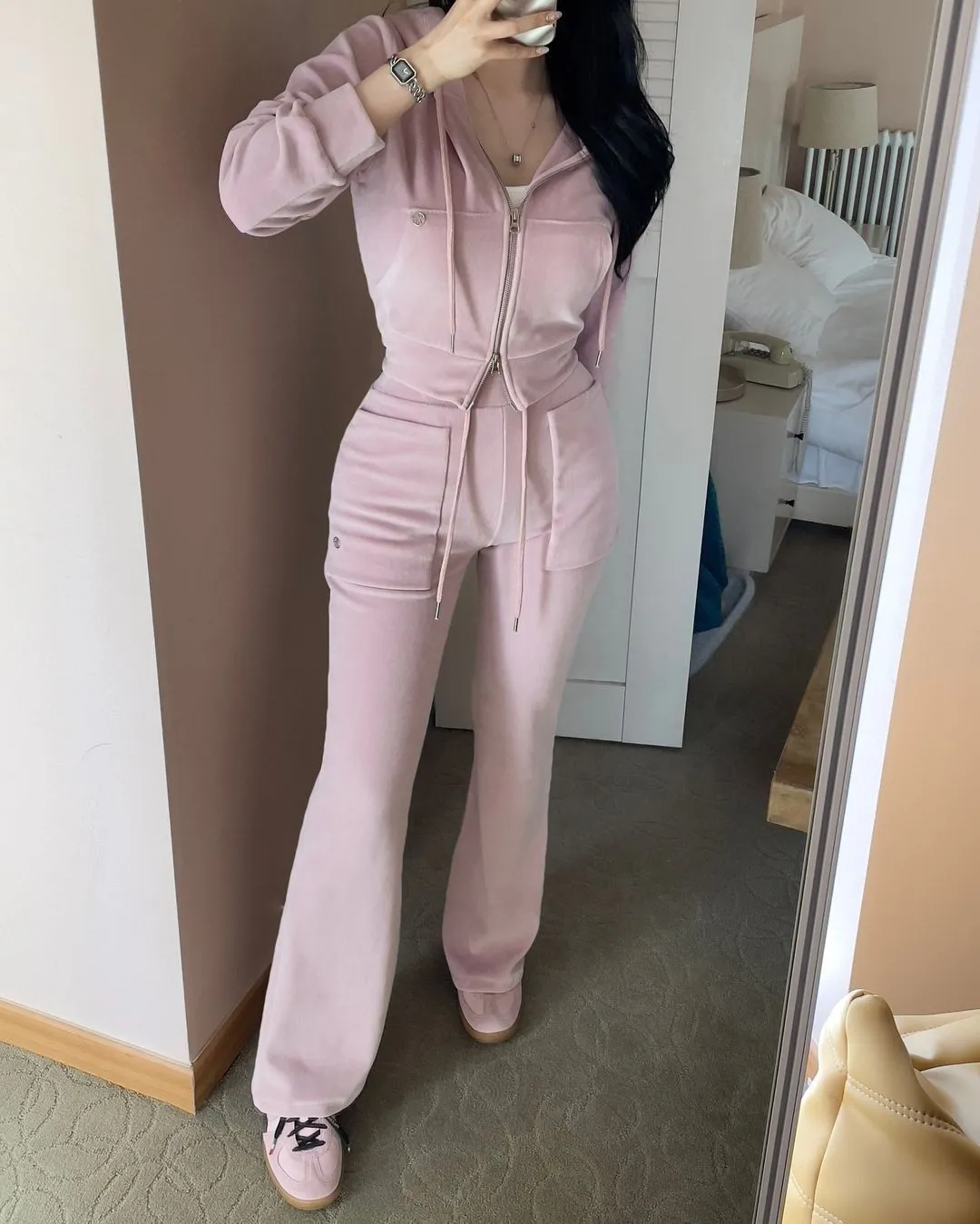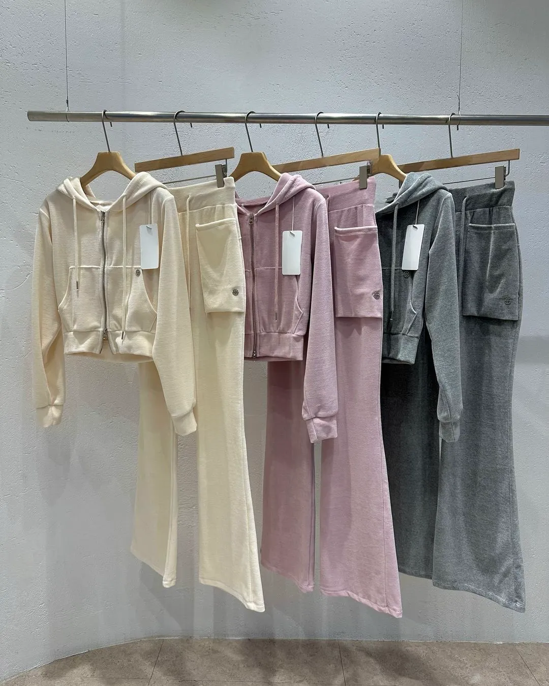 天鵝絨口袋靴型微喇叭褲套裝 set
