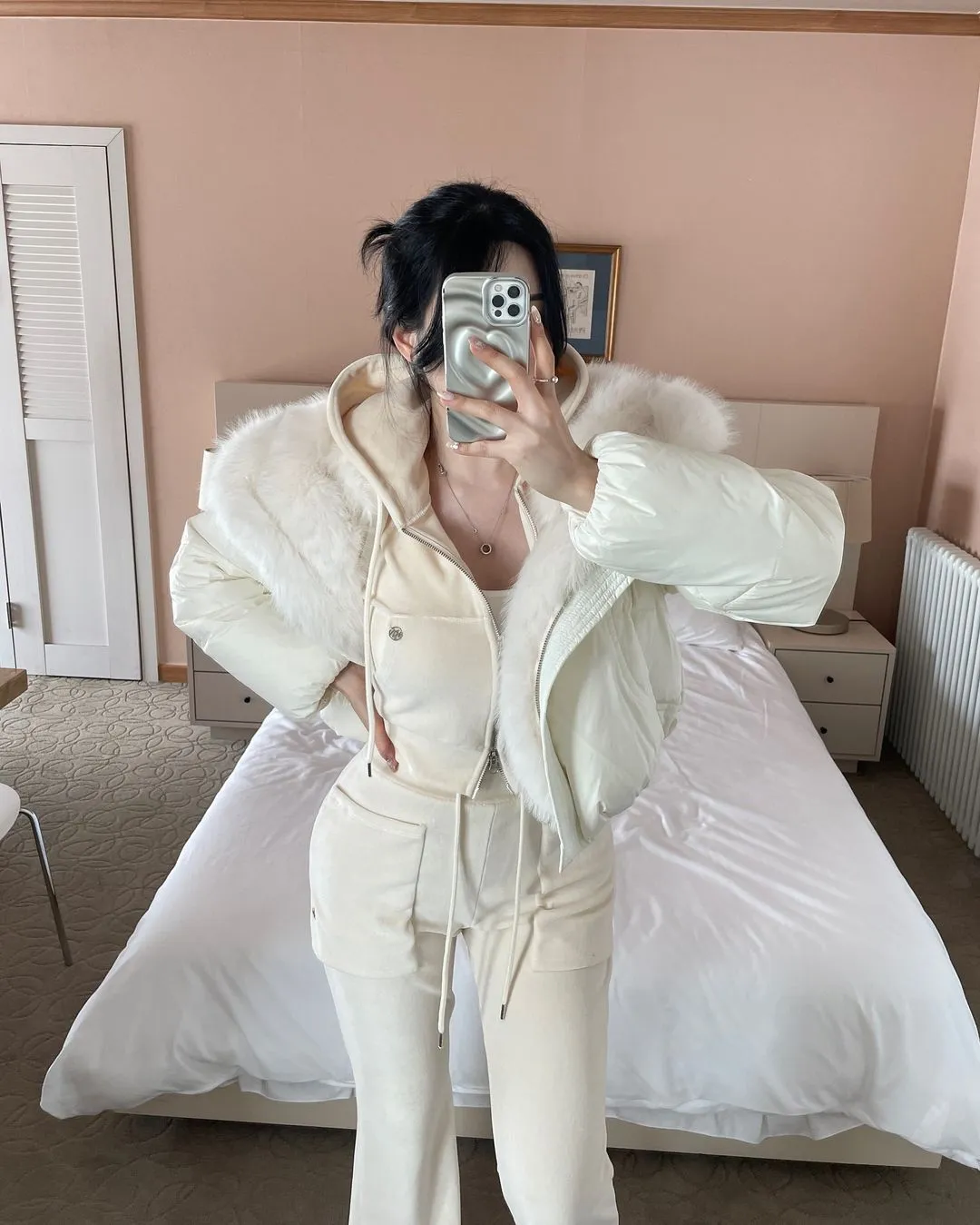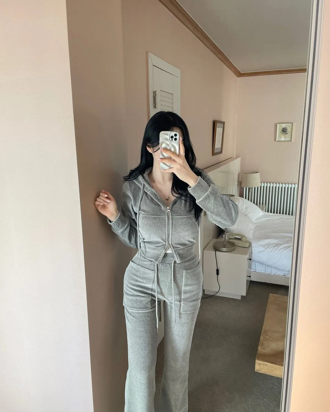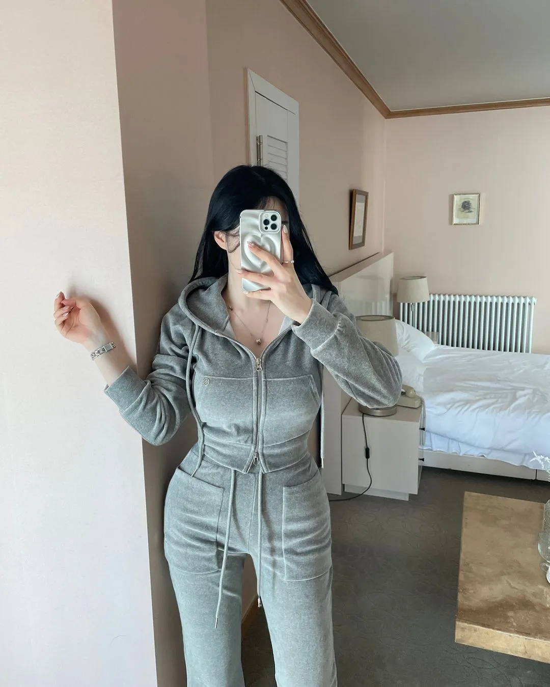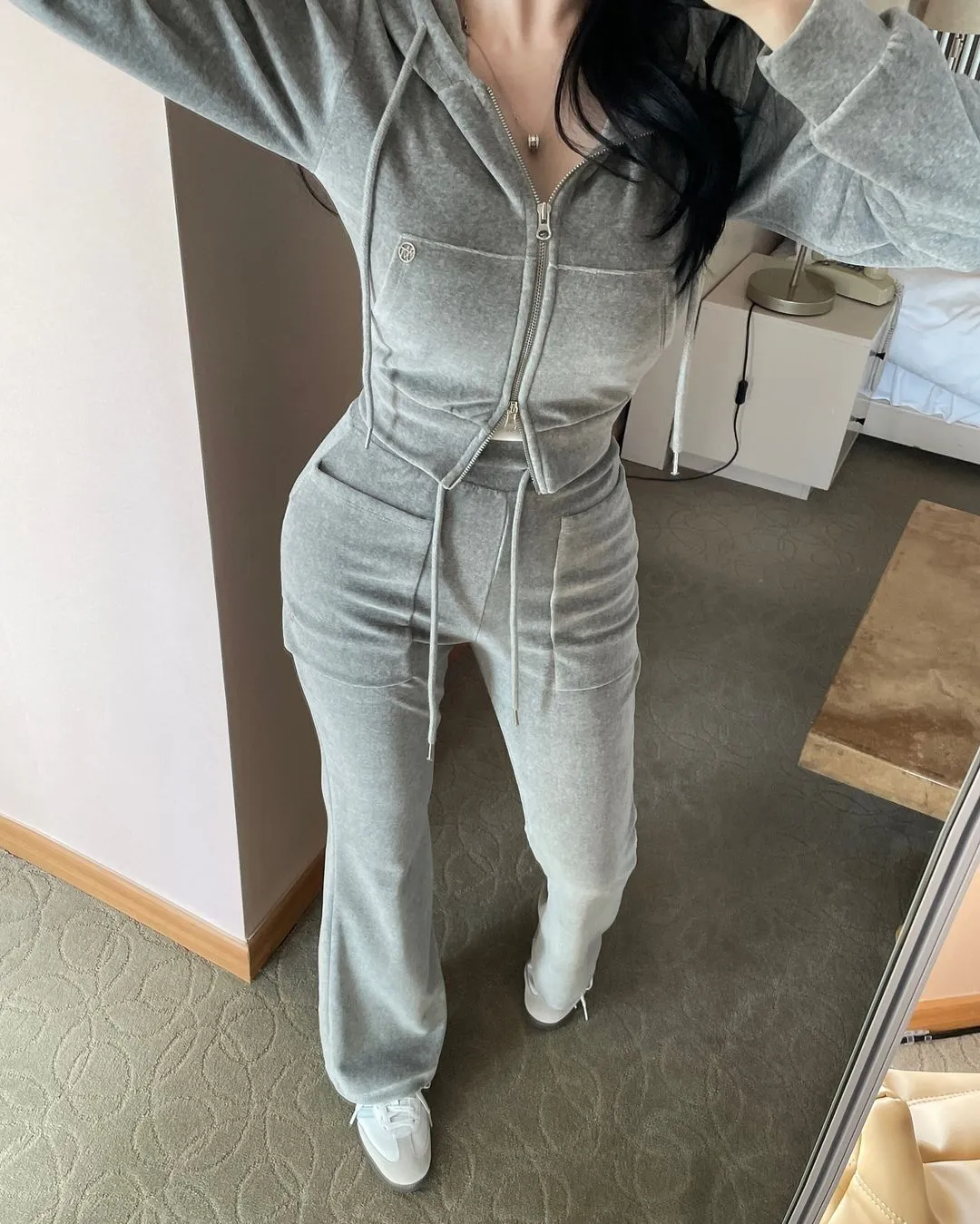 天鵝絨口袋靴型微喇叭褲套裝 set
