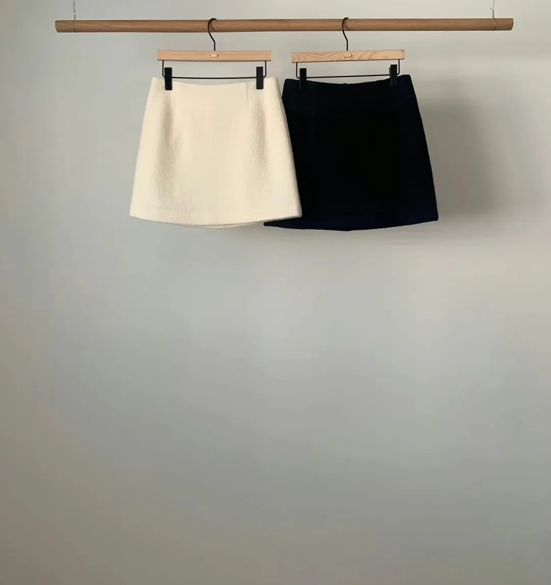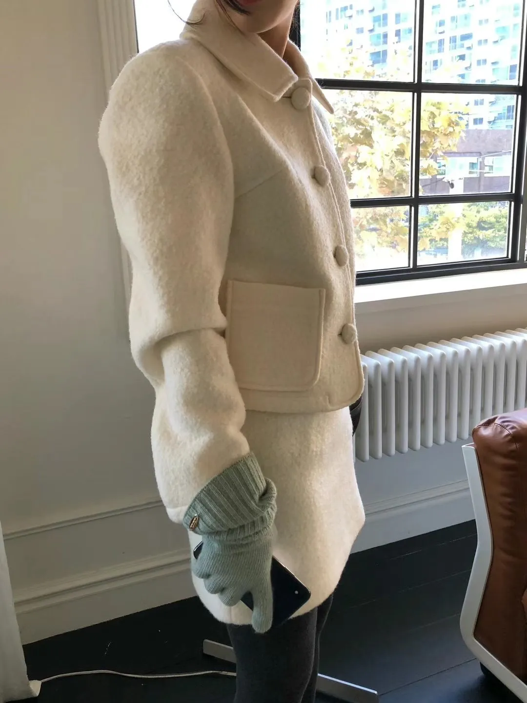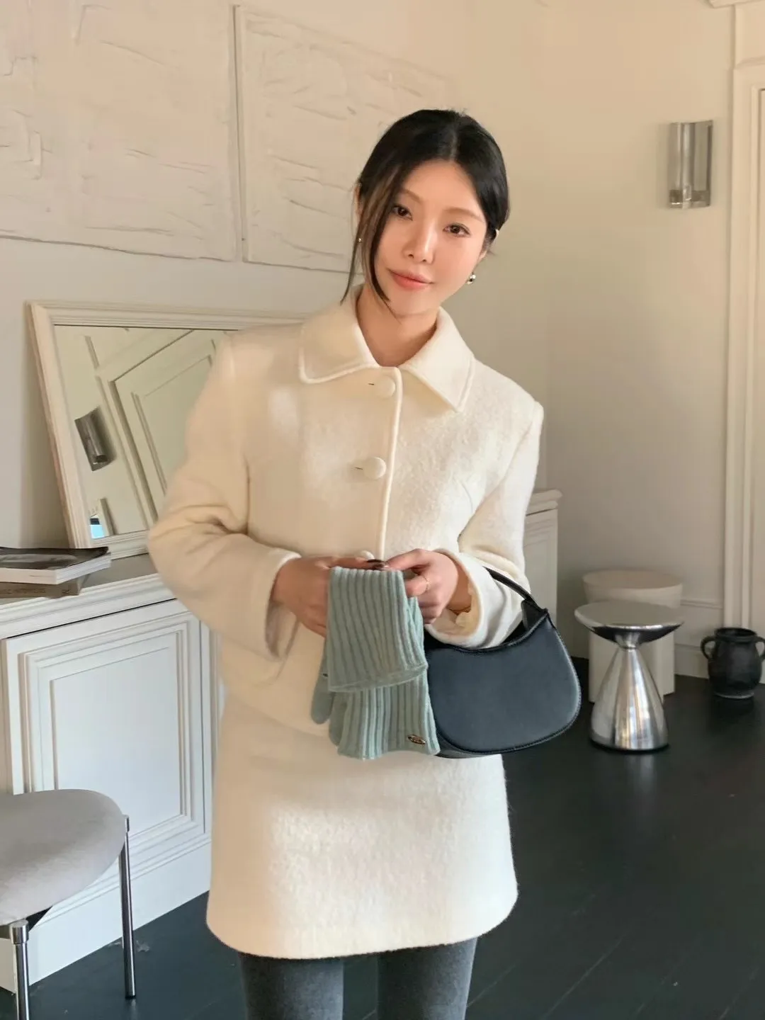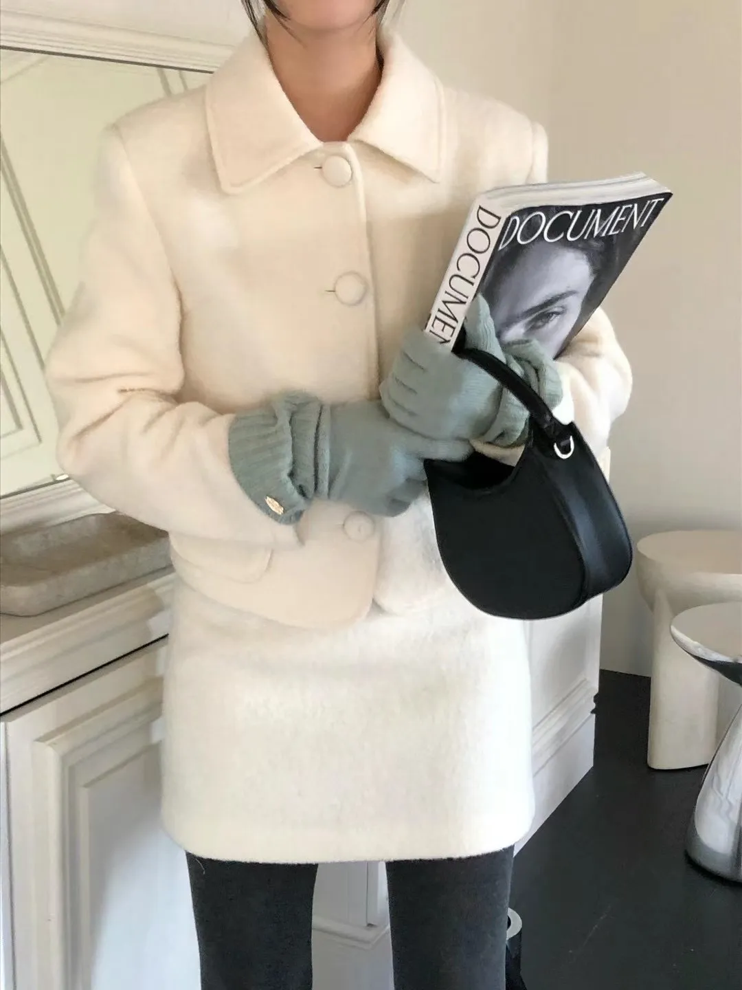 氣質溫暖修身羊毛外套+高腰短裙 套裝set