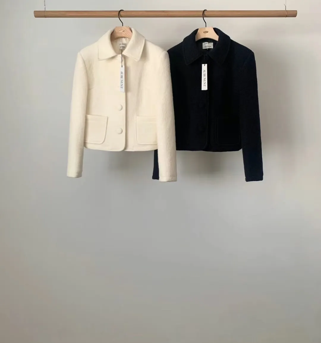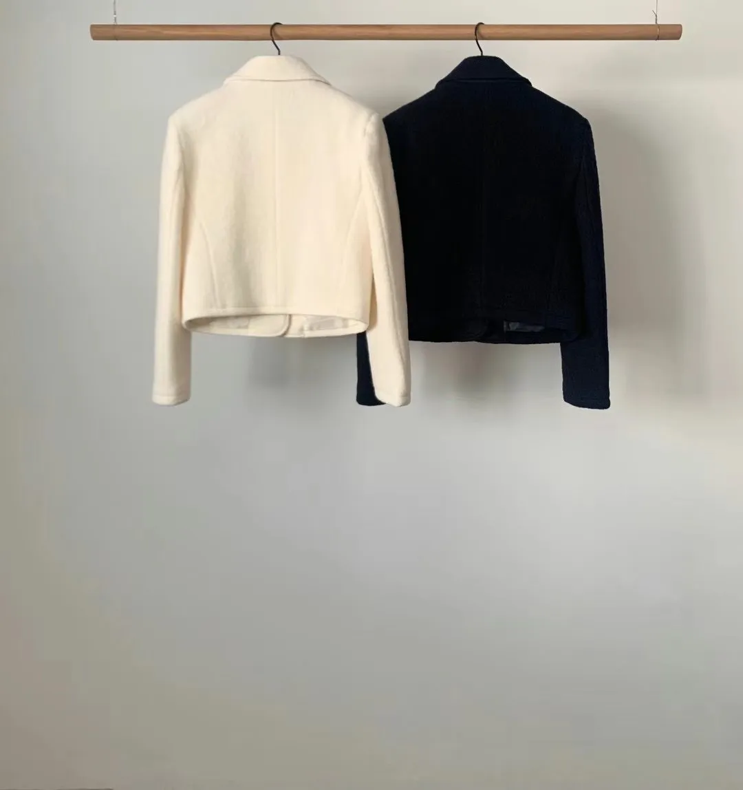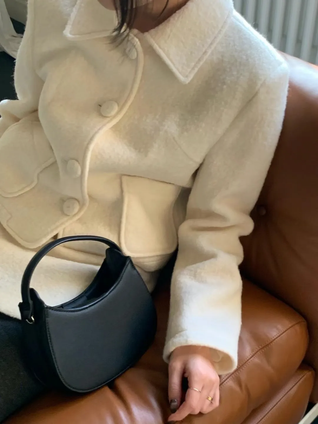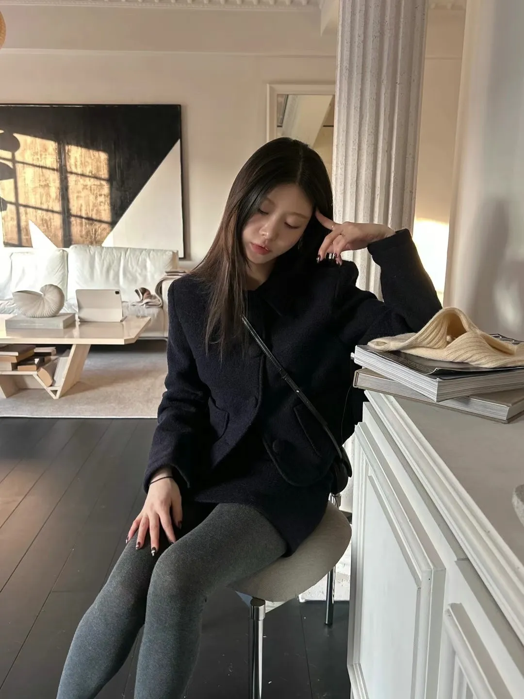 氣質溫暖修身羊毛外套+高腰短裙 套裝set