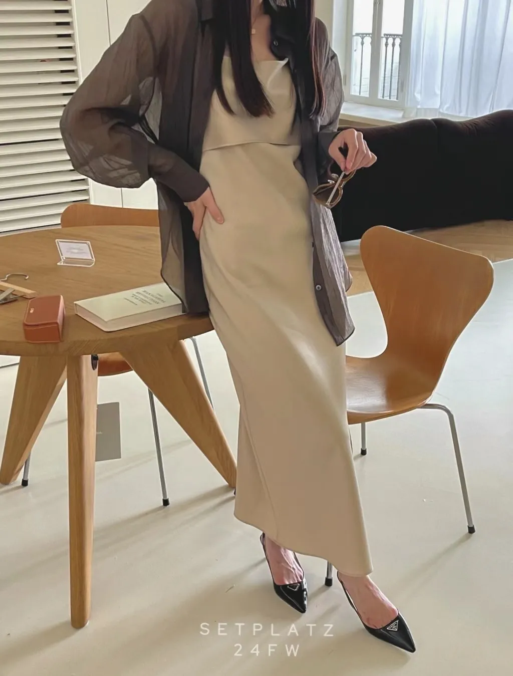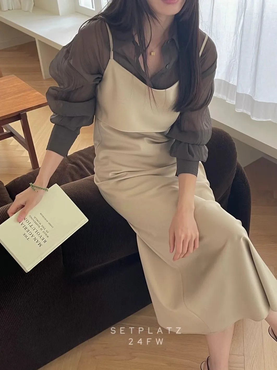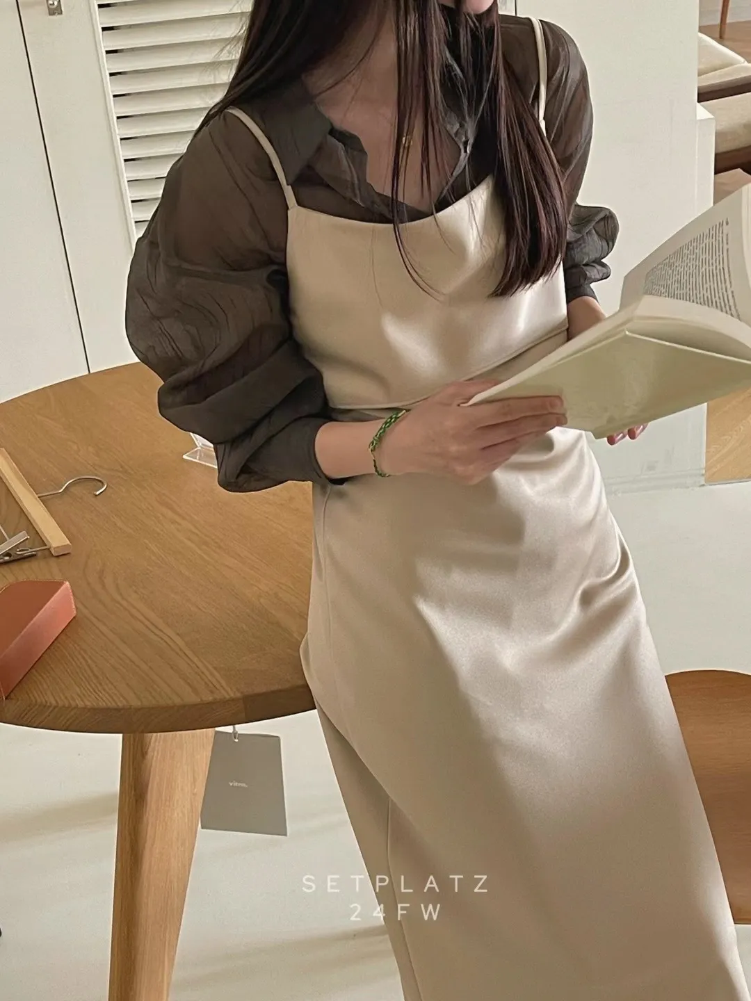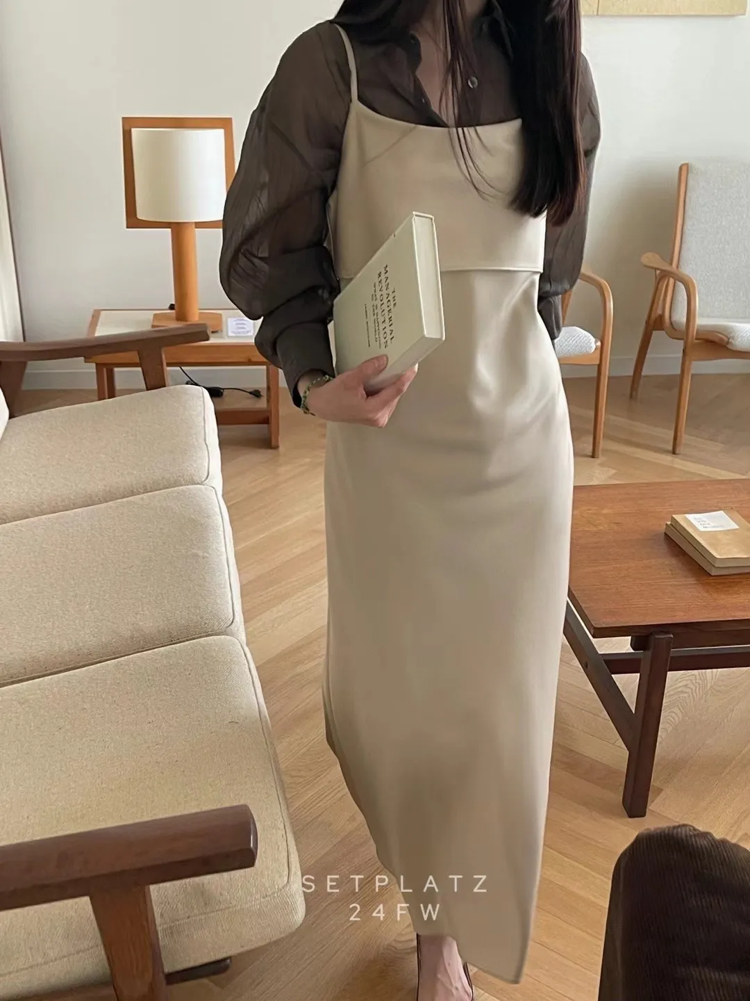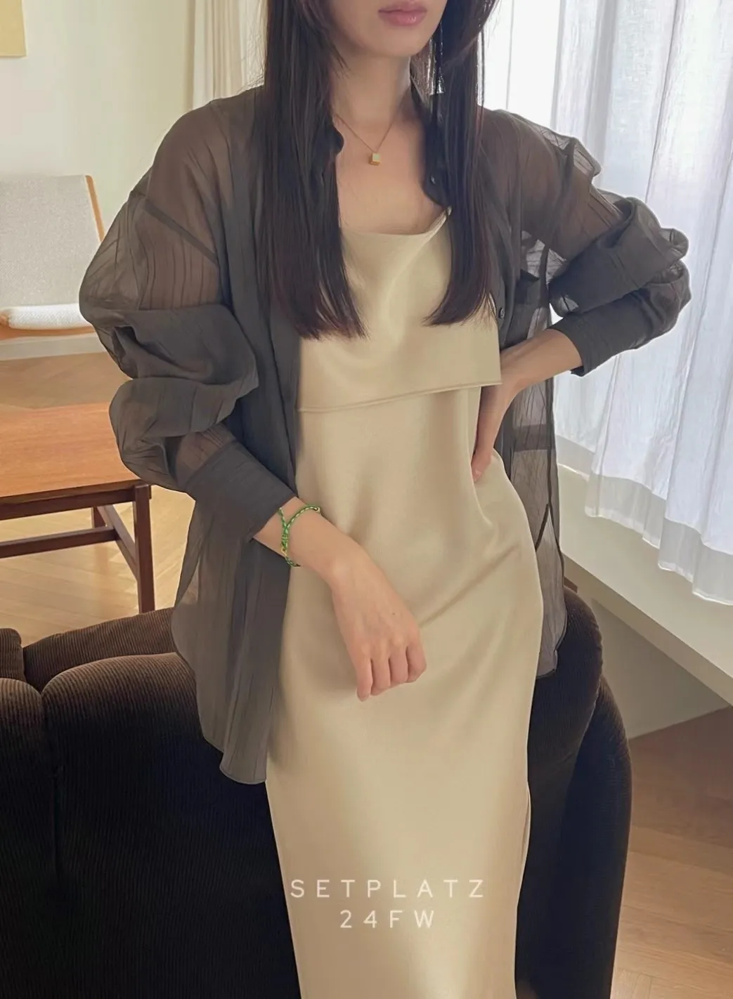 氣質緞面細肩連衣裙洋裝