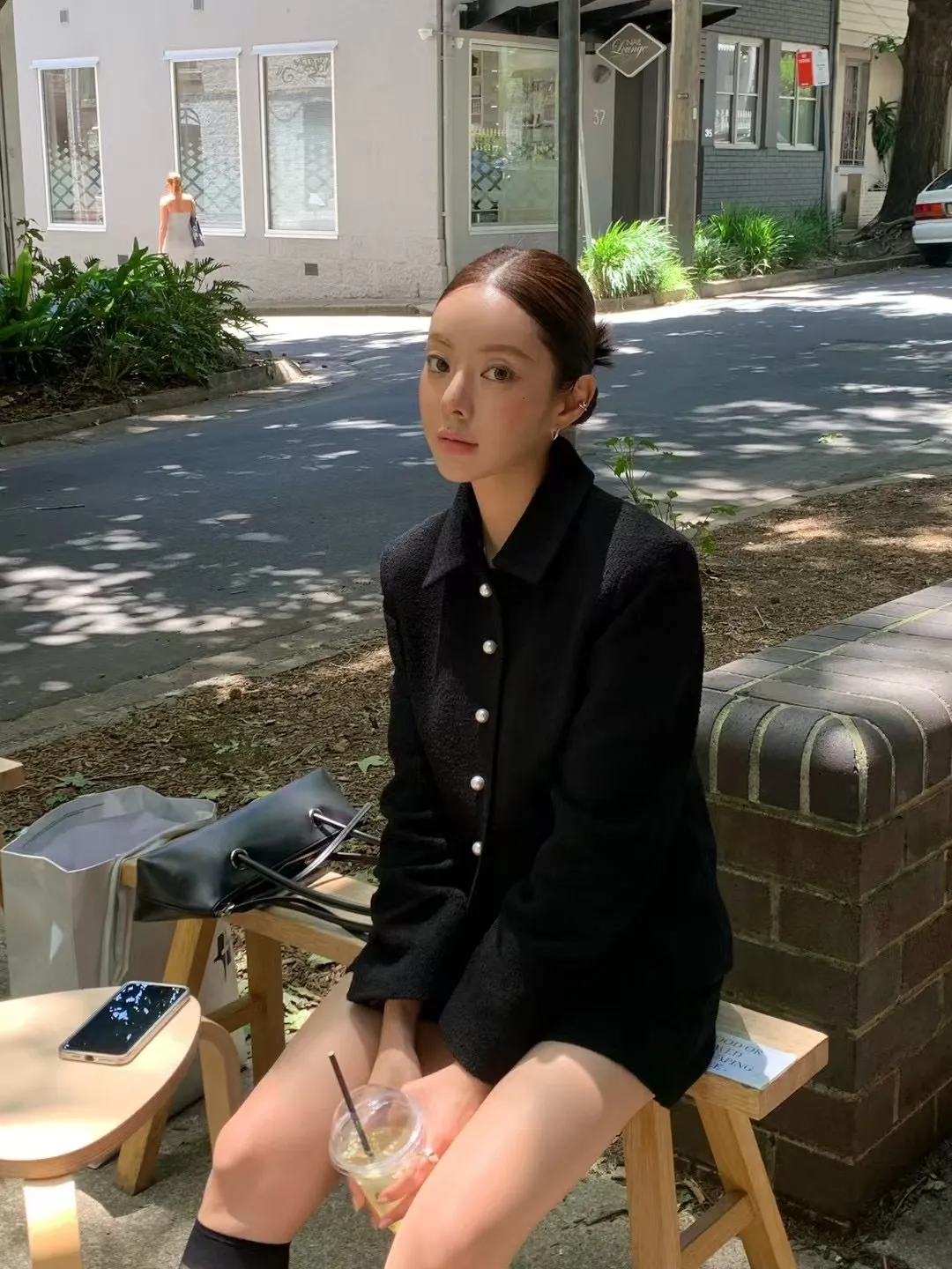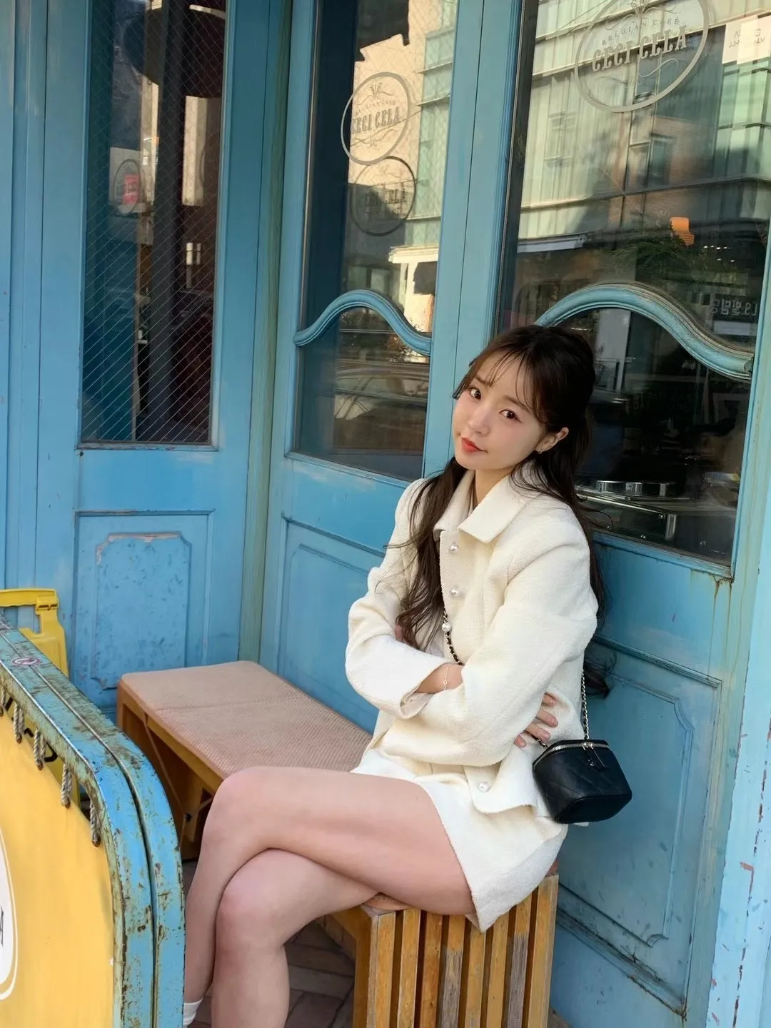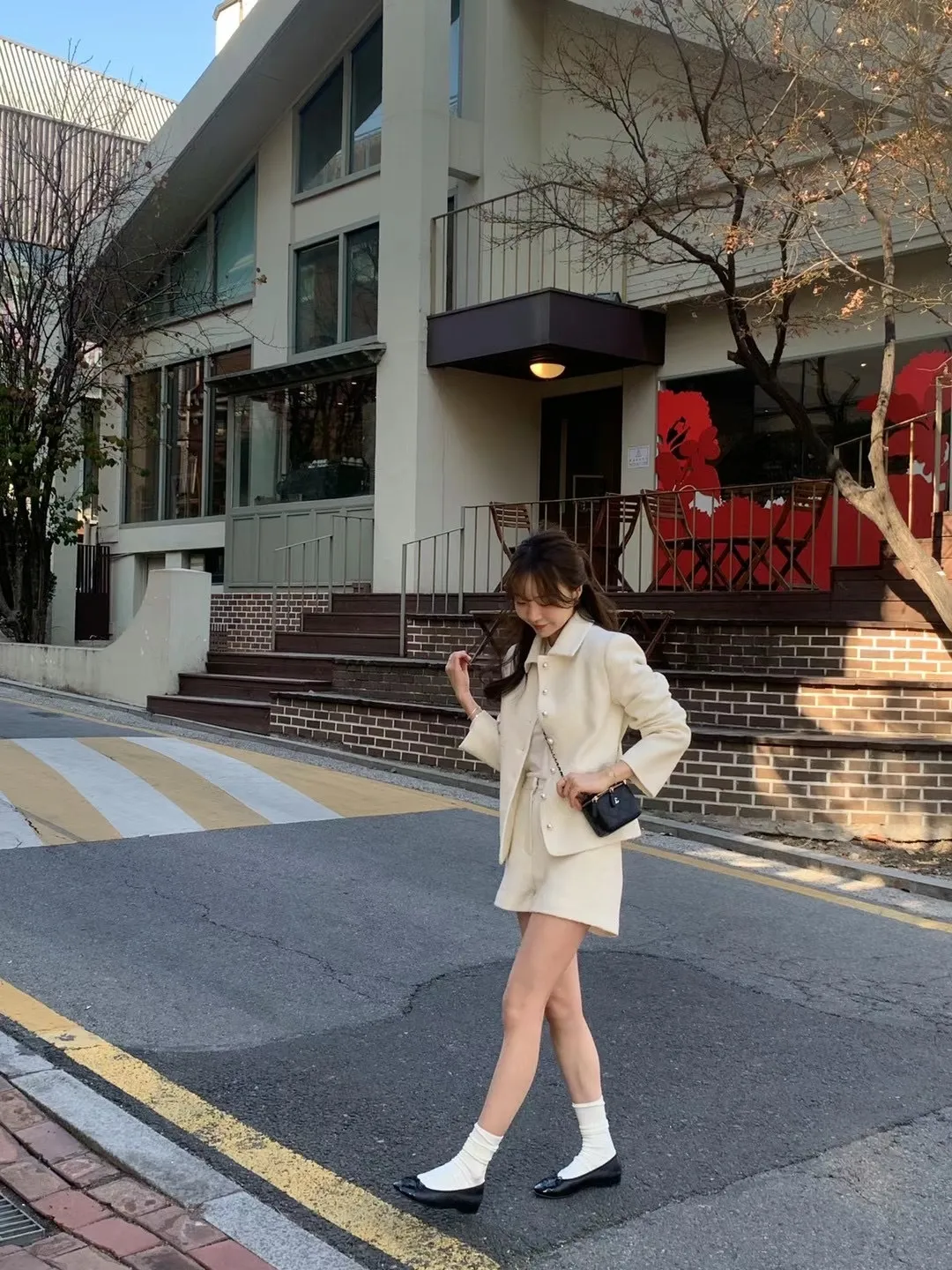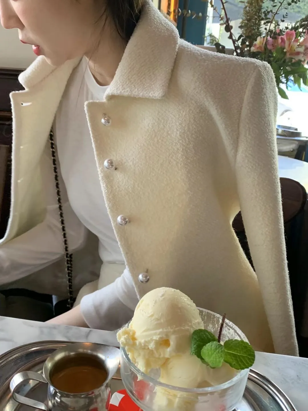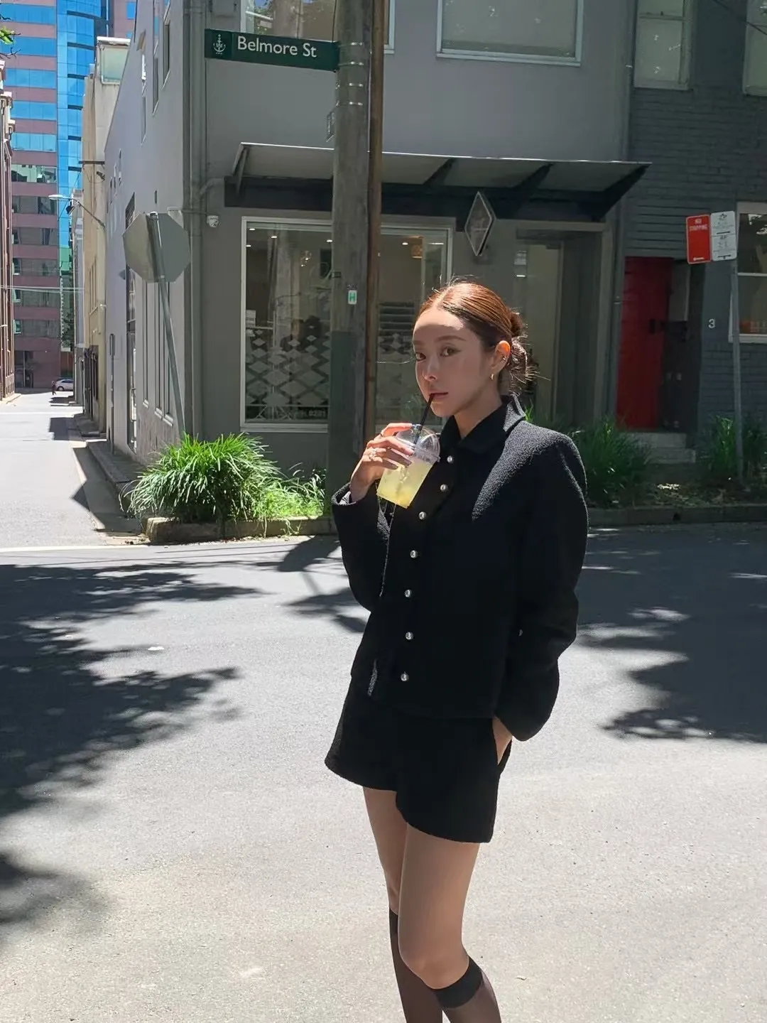 巴黎晨曦珍珠羊毛呢外套+顯瘦短褲套裝