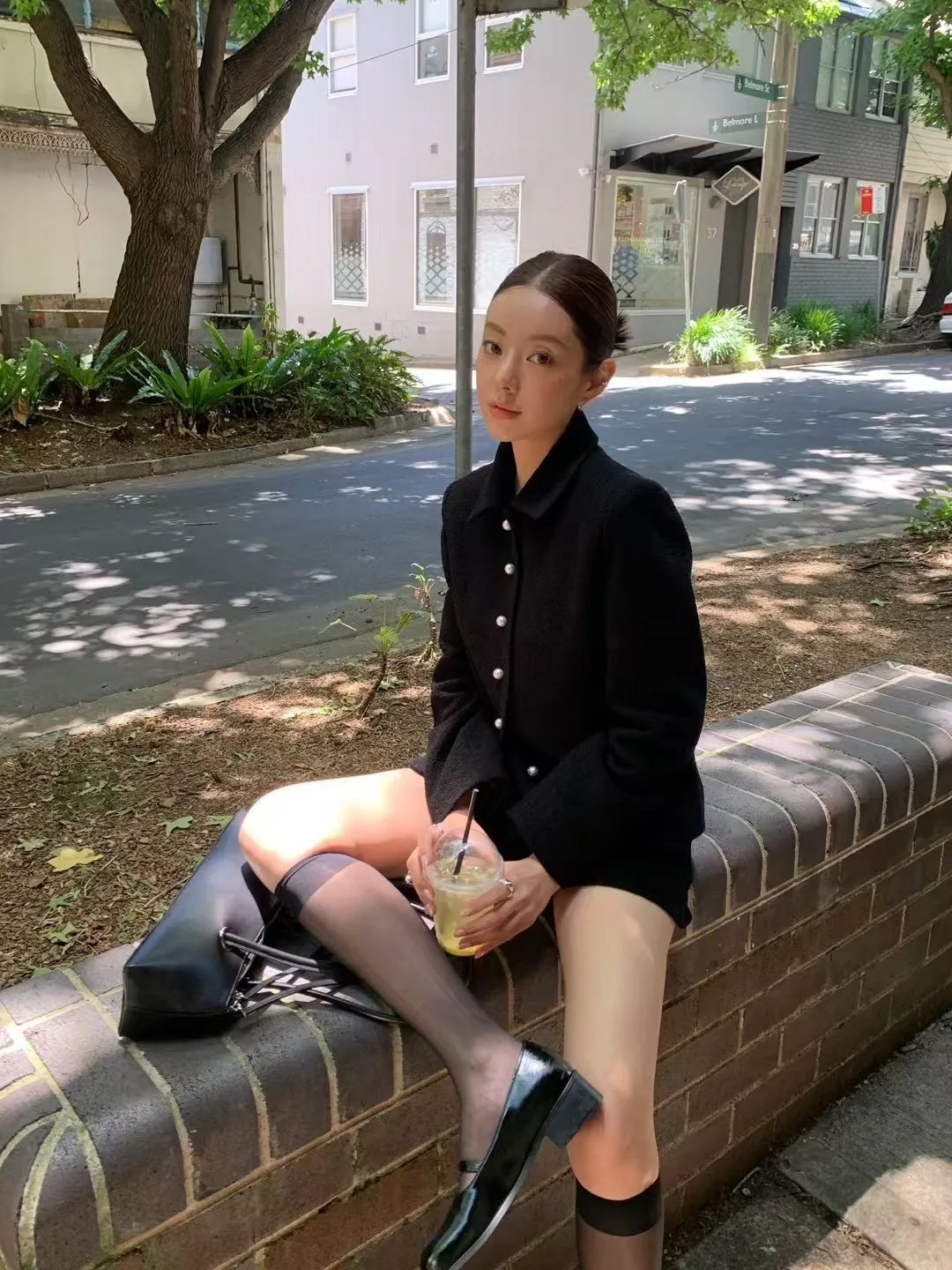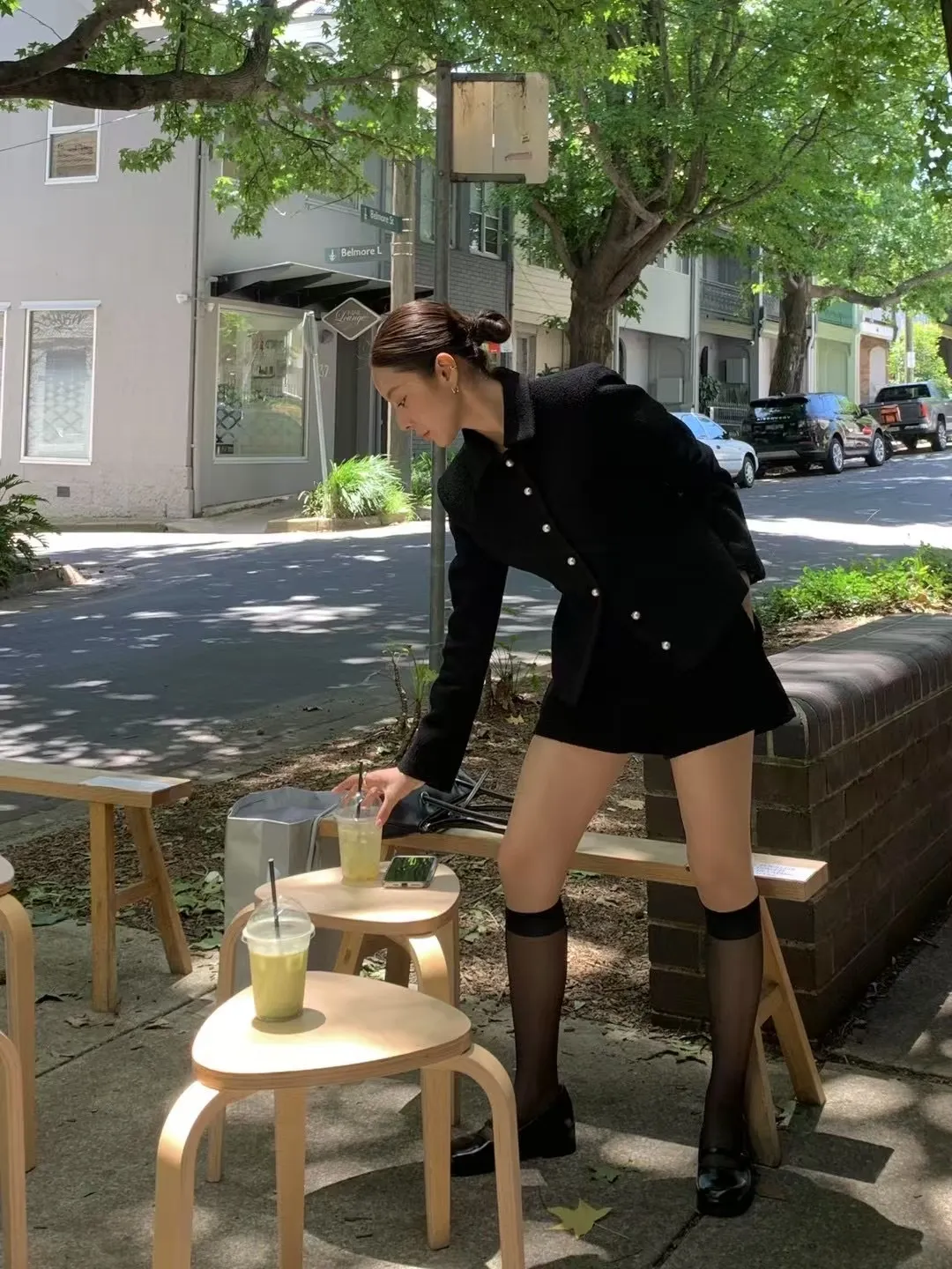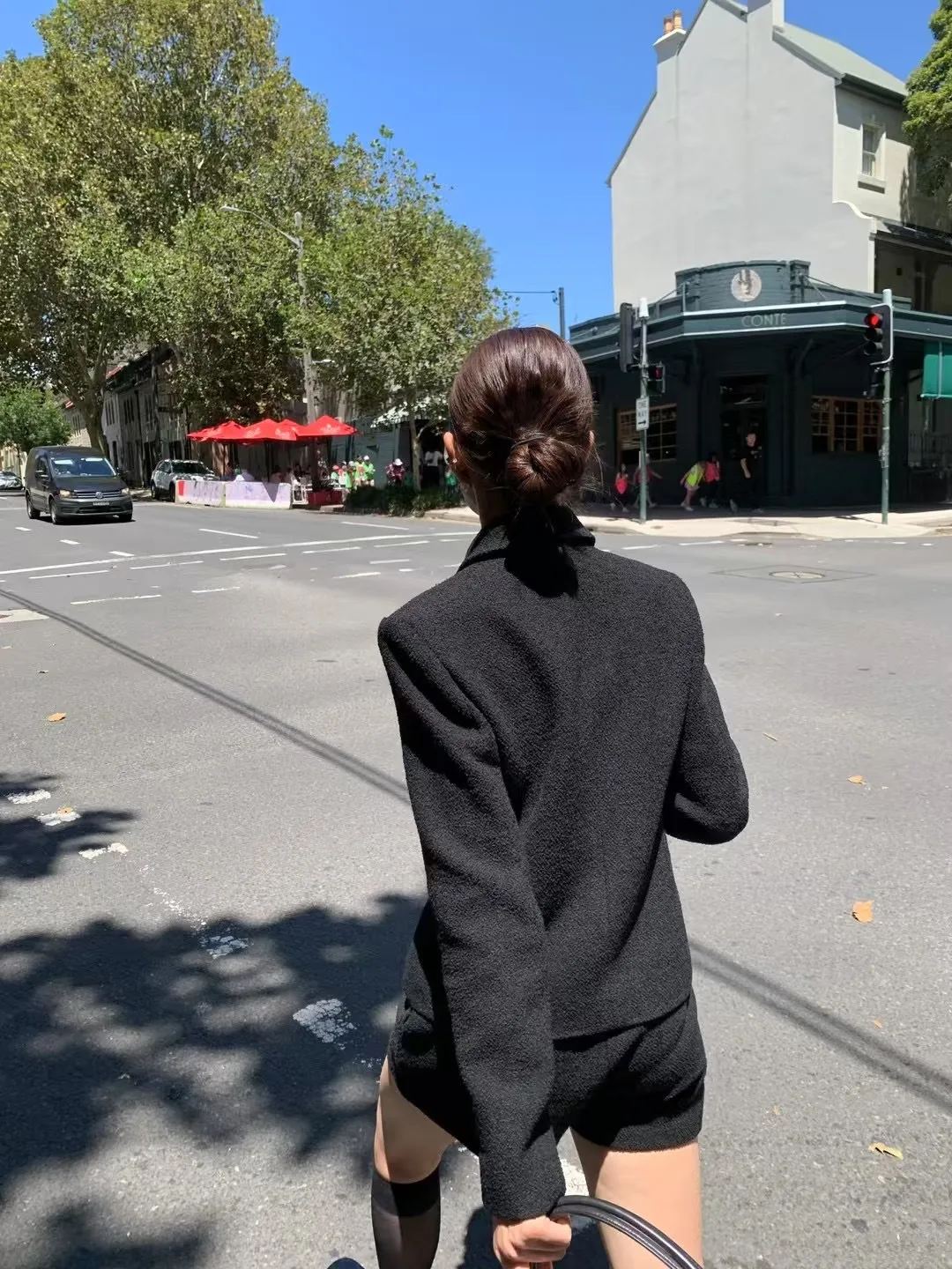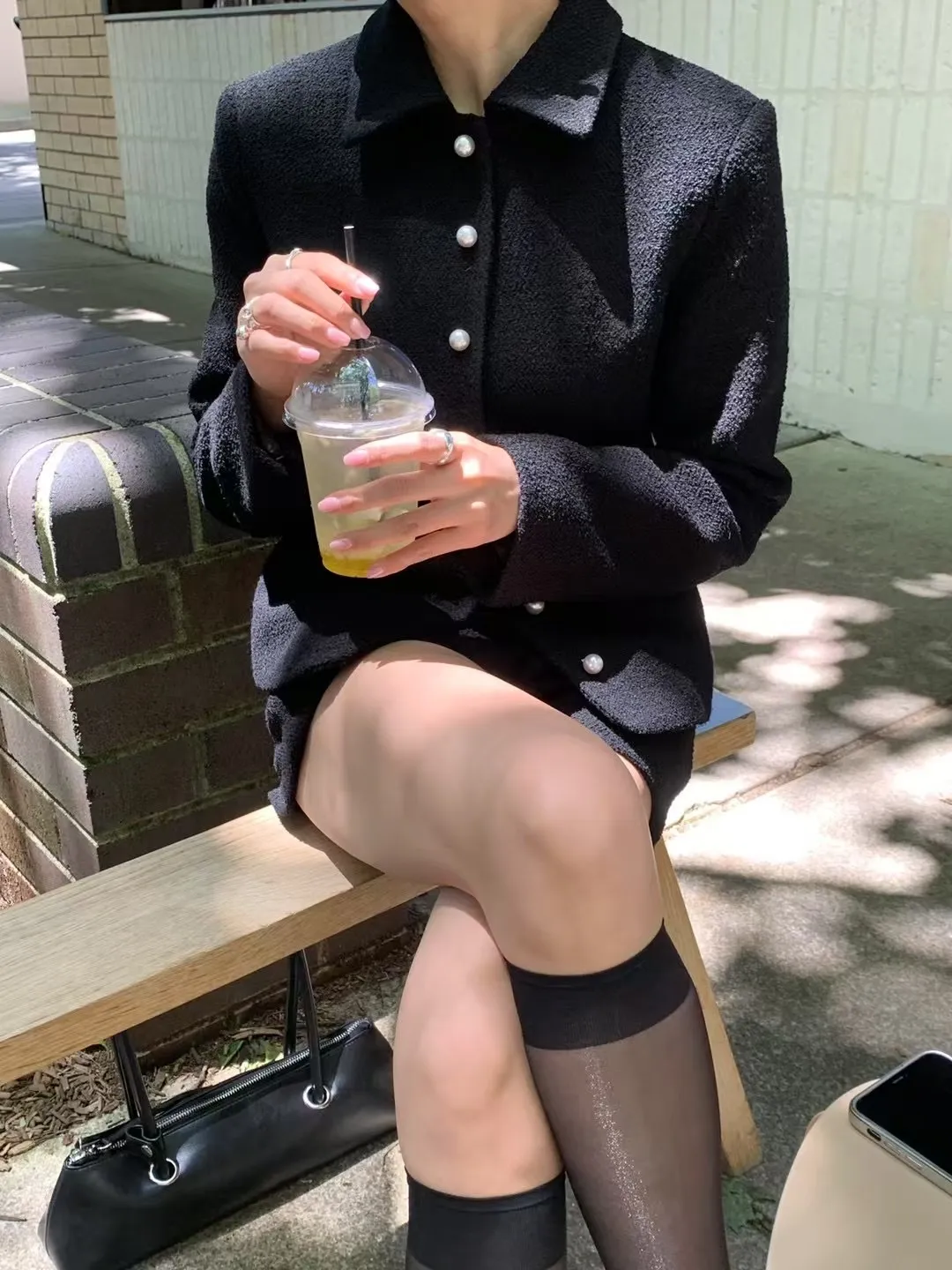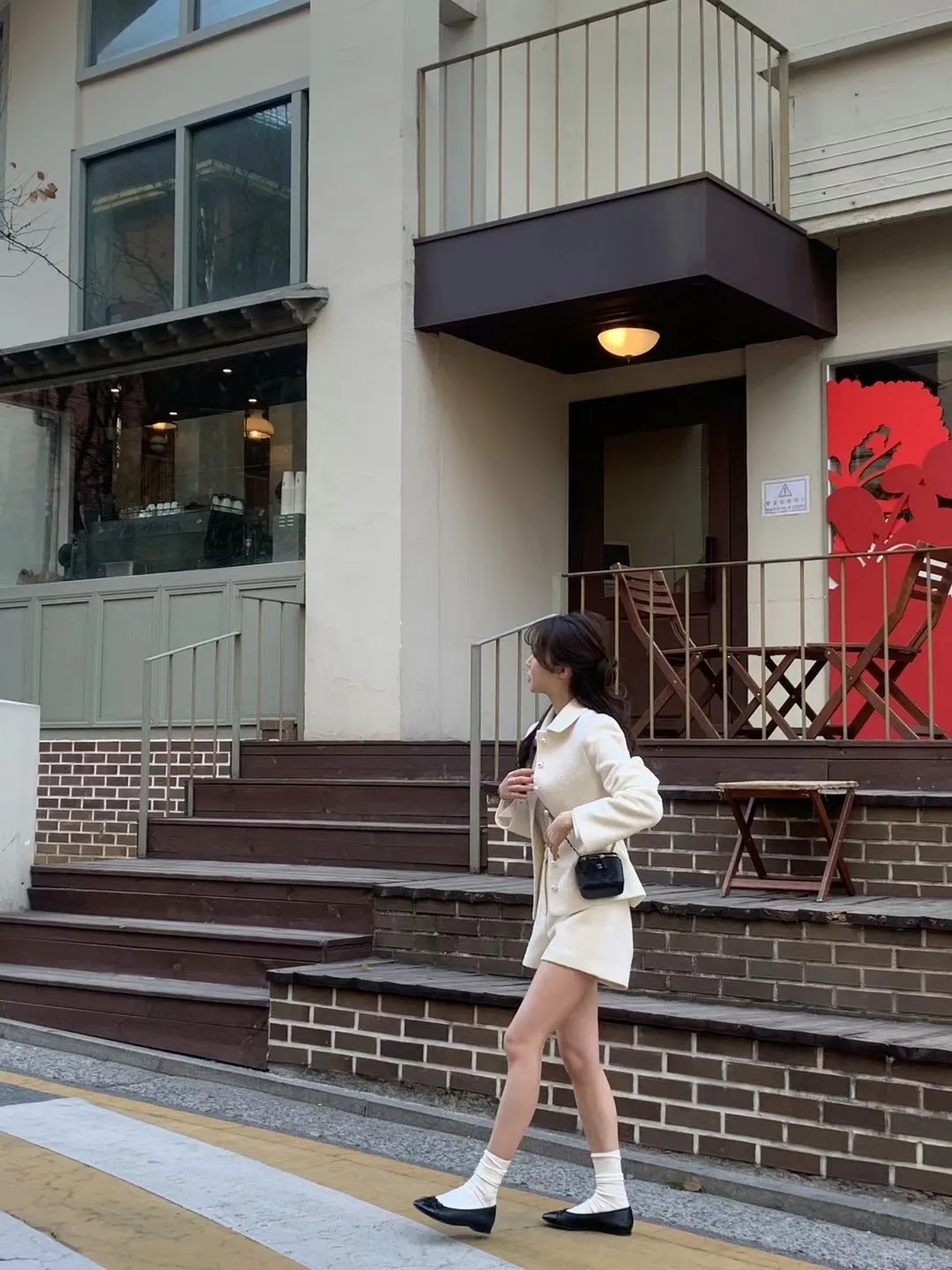 巴黎晨曦珍珠羊毛呢外套+顯瘦短褲套裝