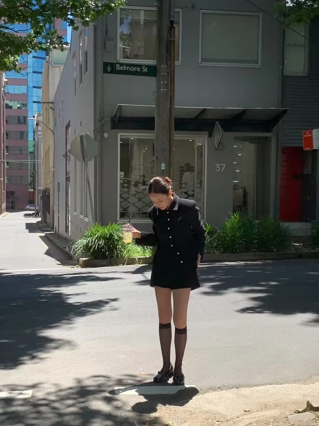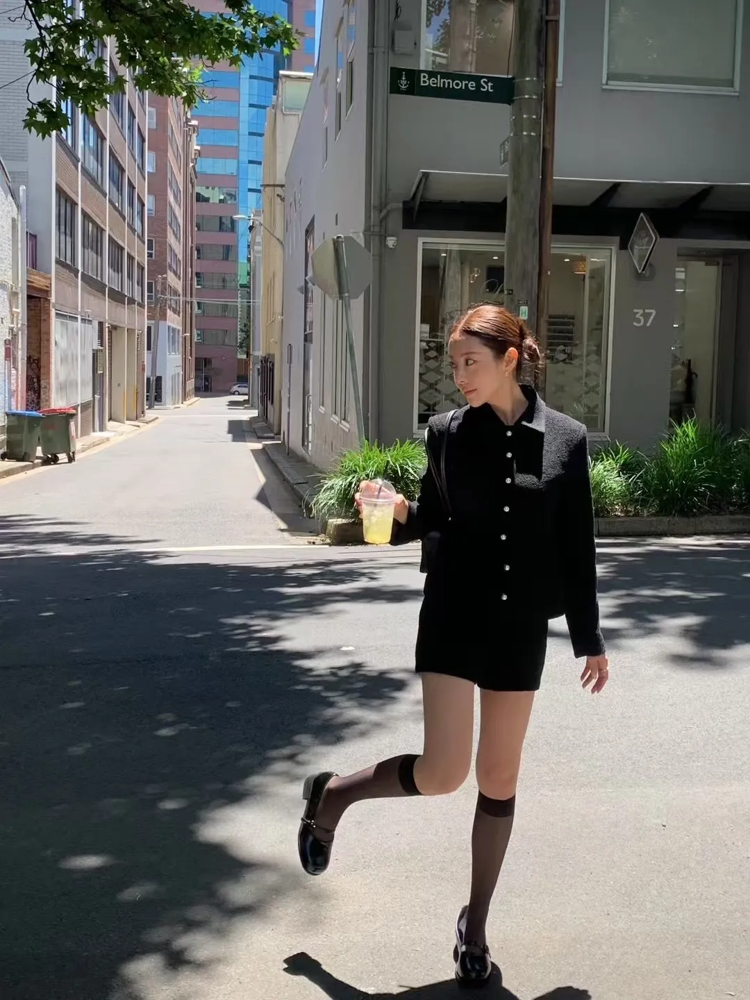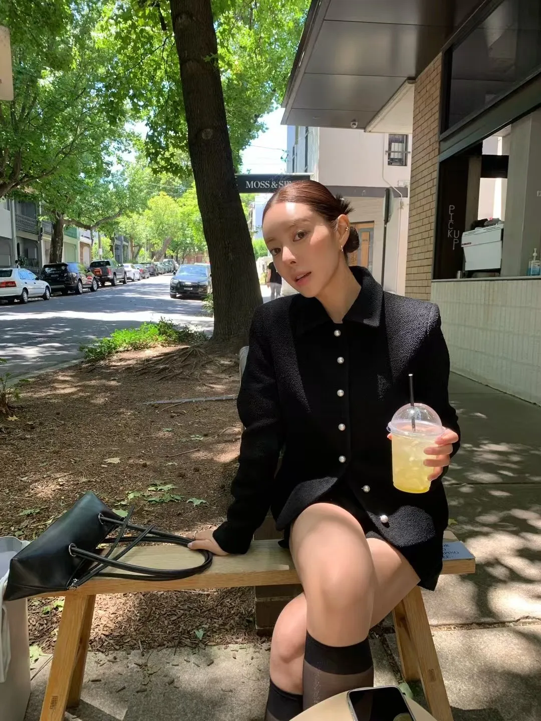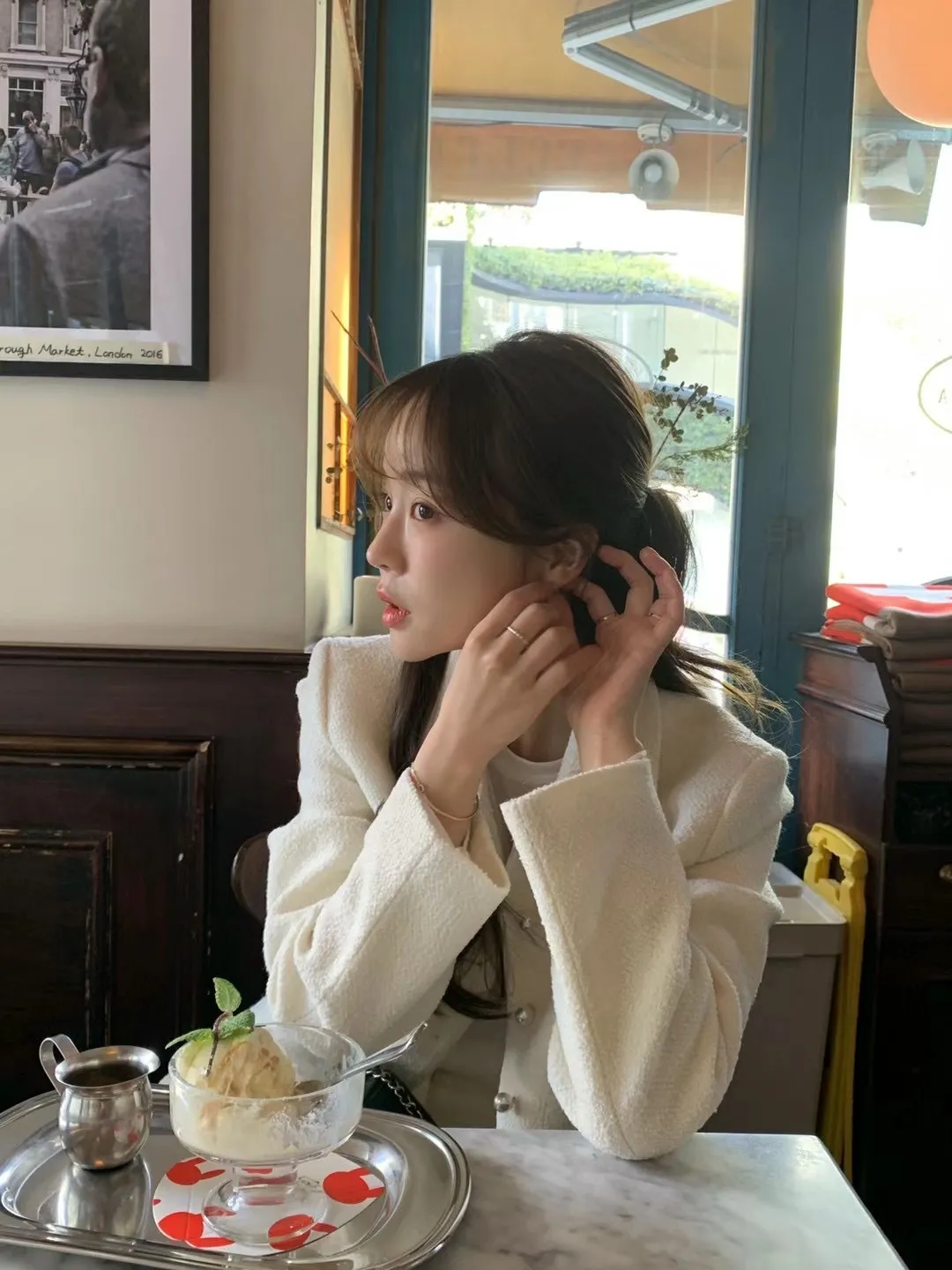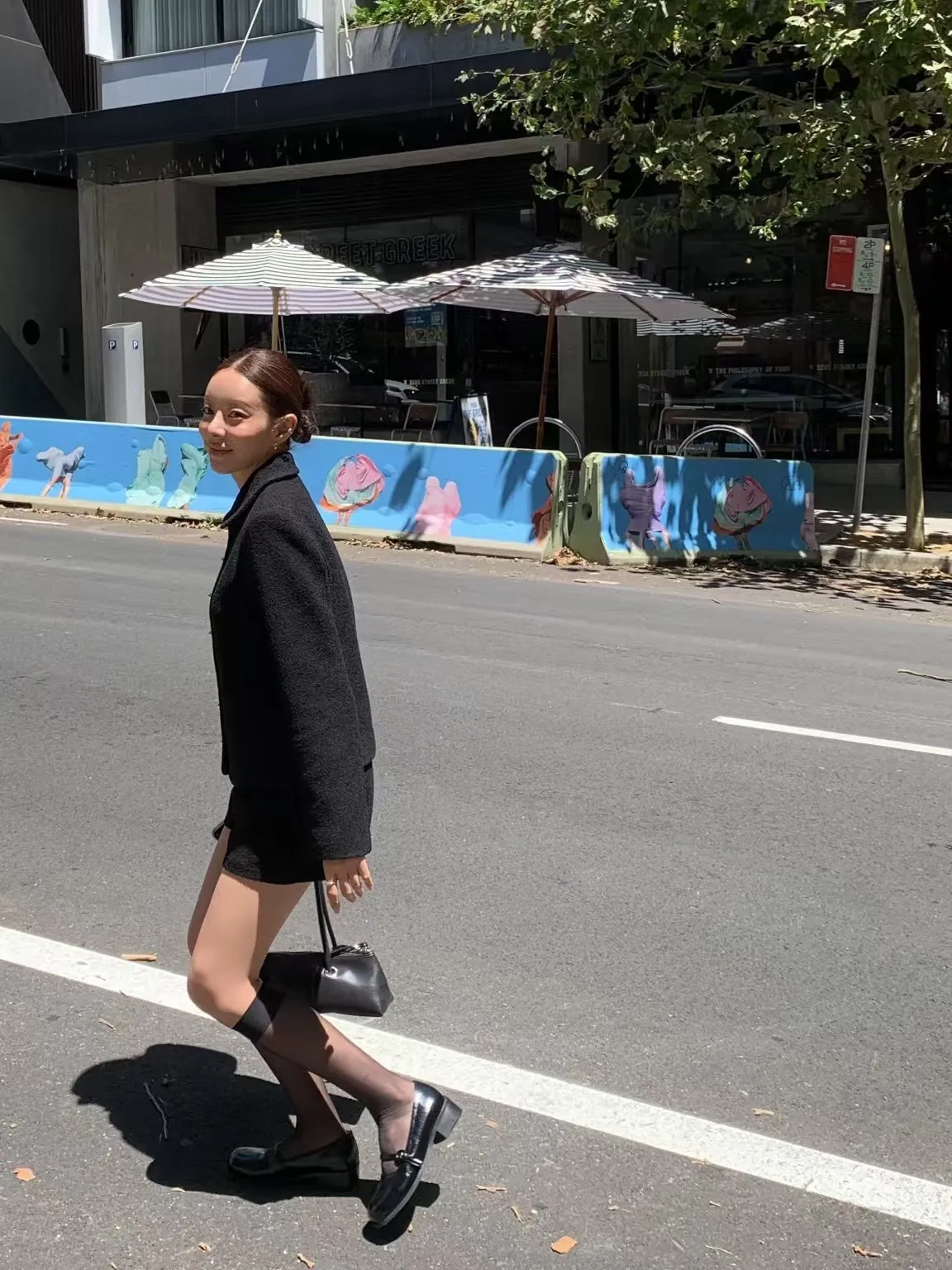 巴黎晨曦珍珠羊毛呢外套+顯瘦短褲套裝