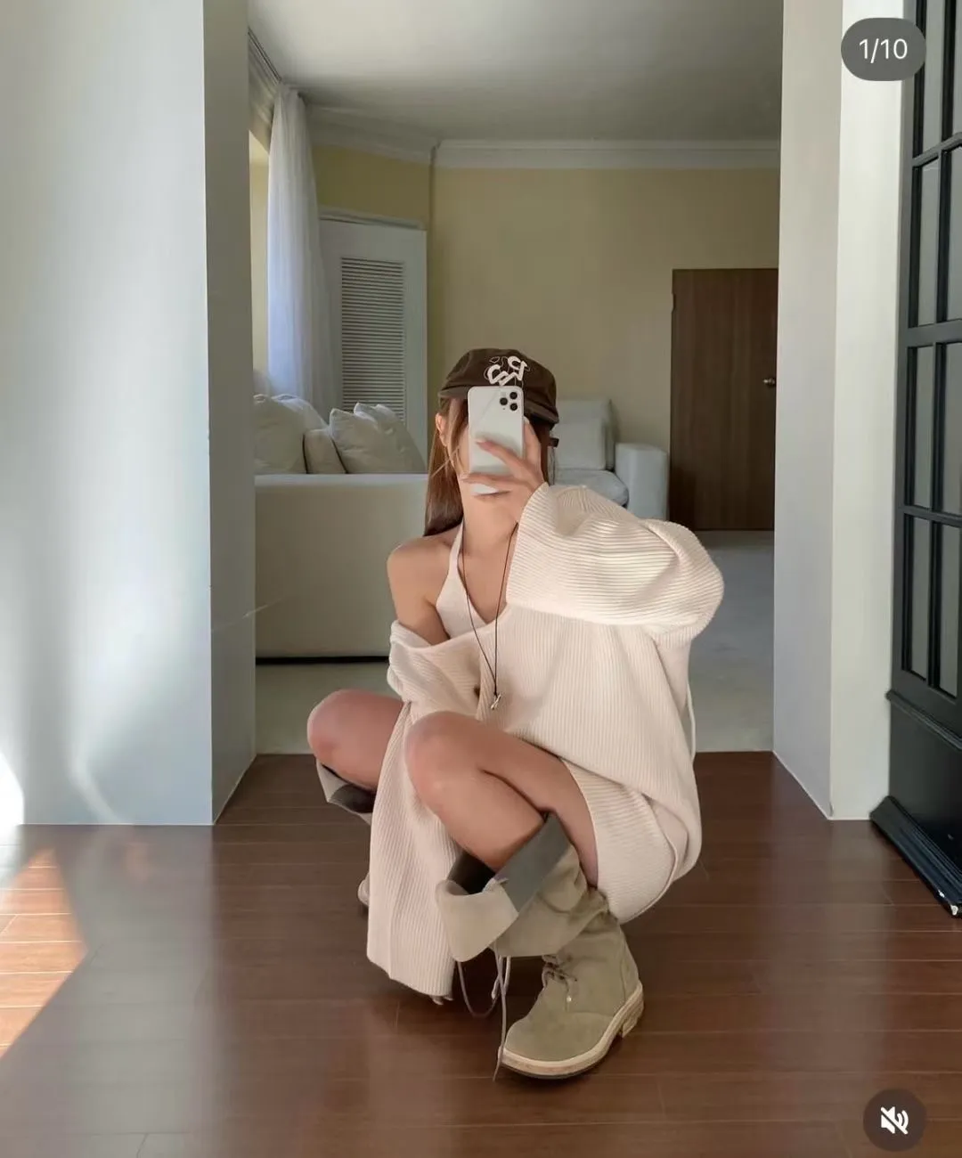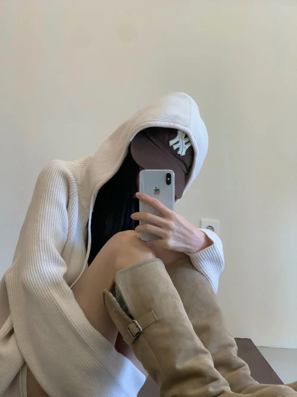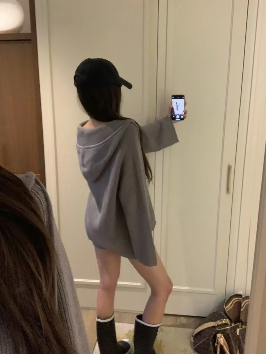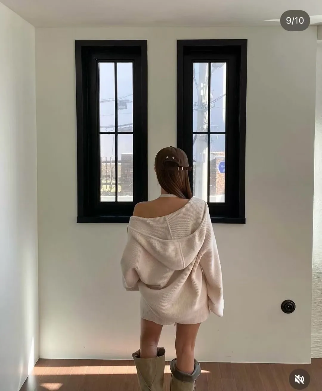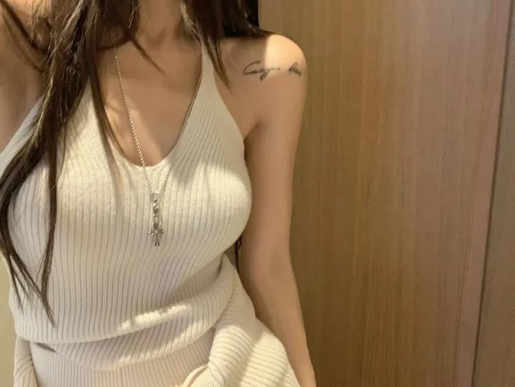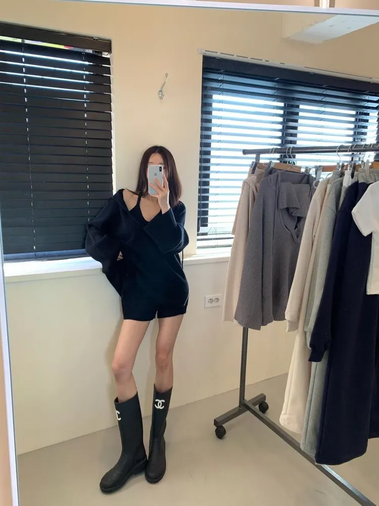 繞脖背心+連帽針織上衣+抽繩短褲套裝