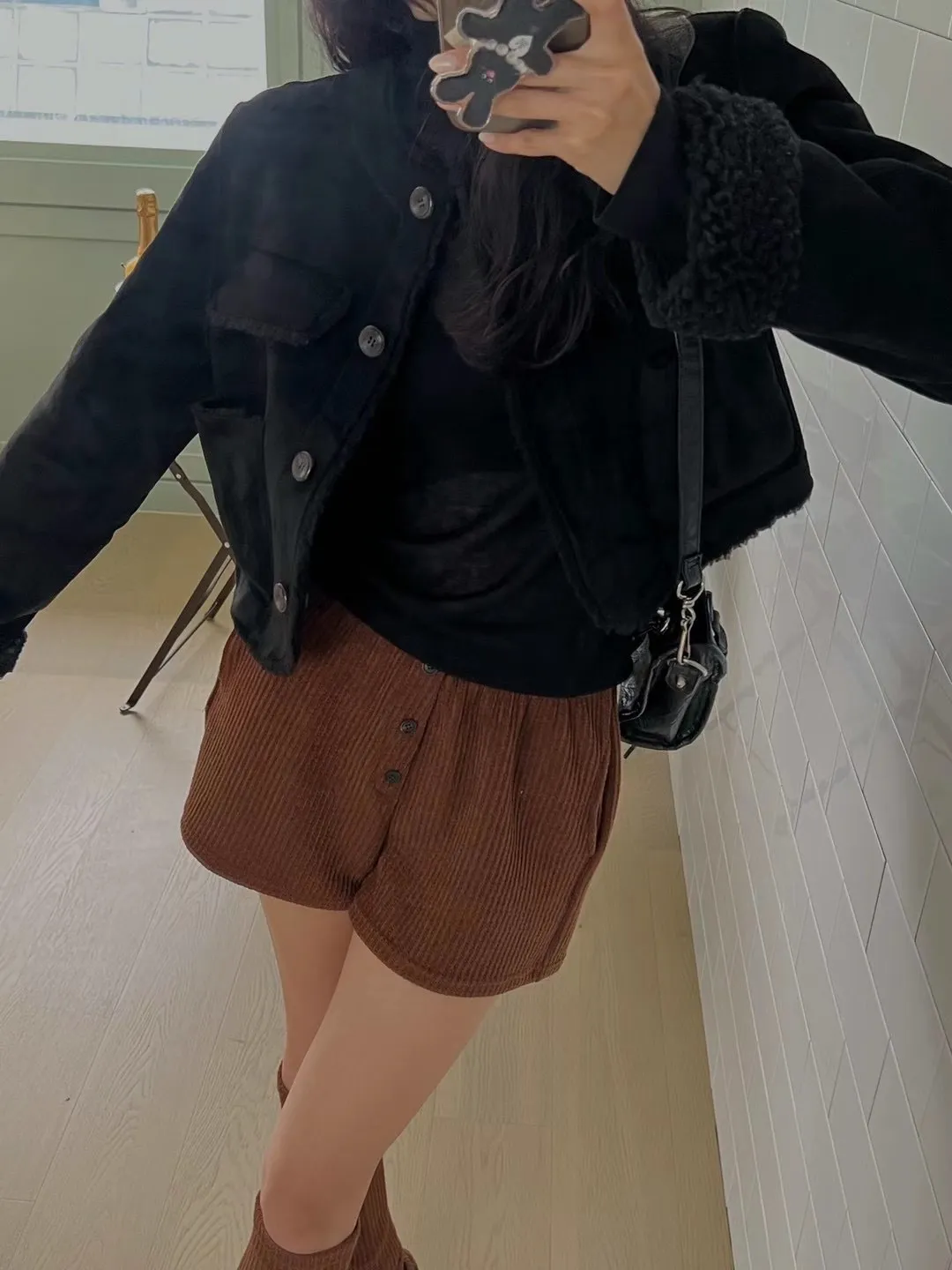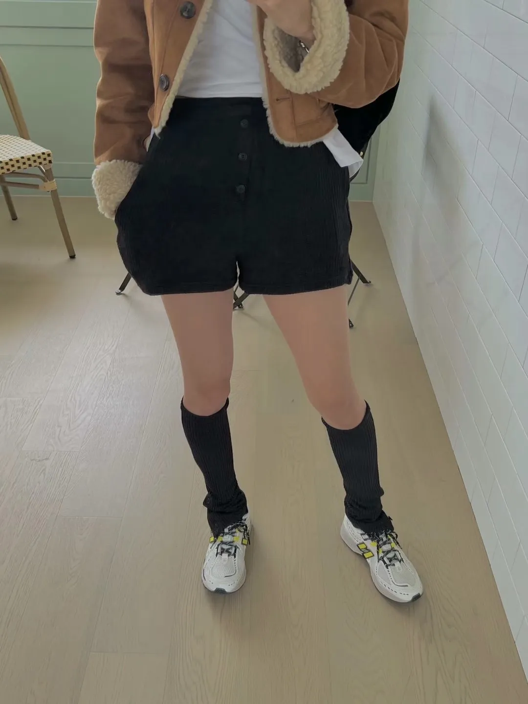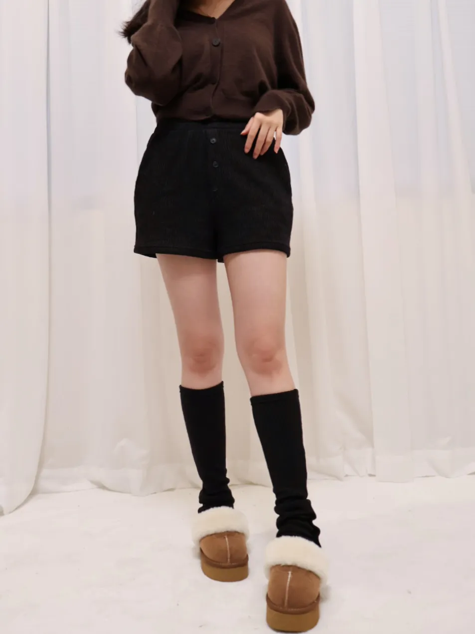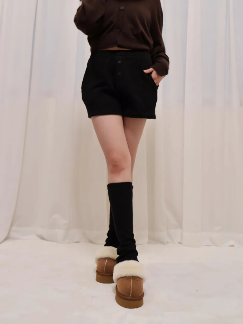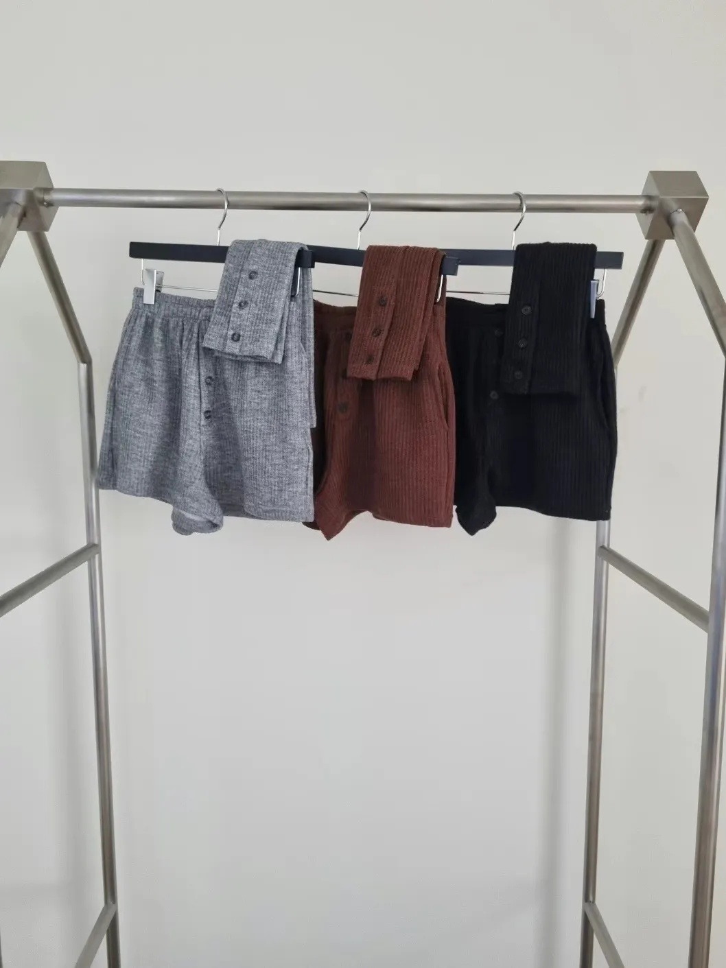 螺紋鬆緊三粒釦腳鬆緊休閒短褲+螺紋腳套 兩件套