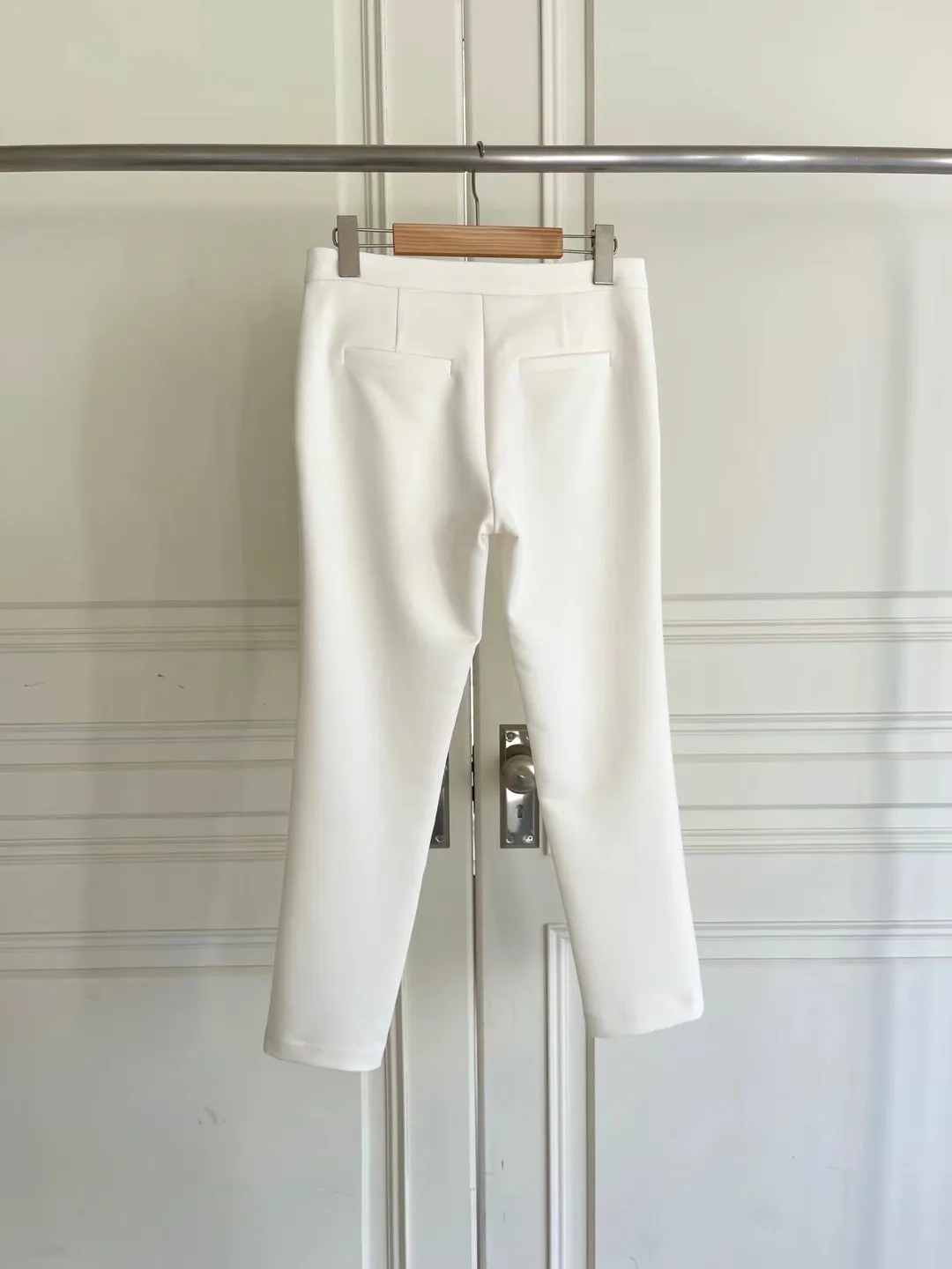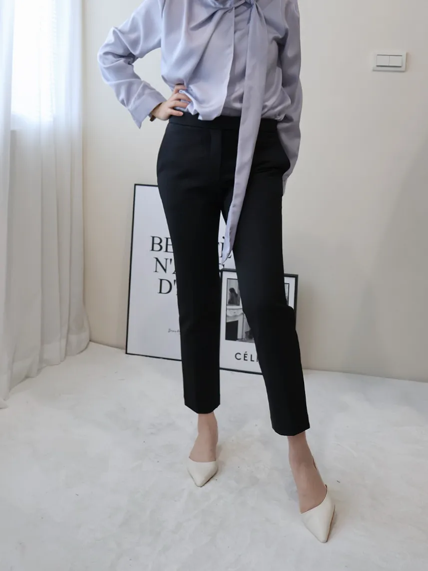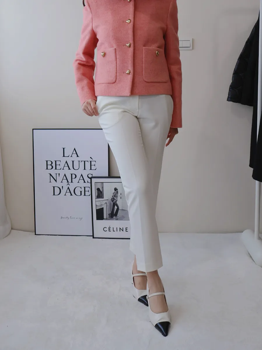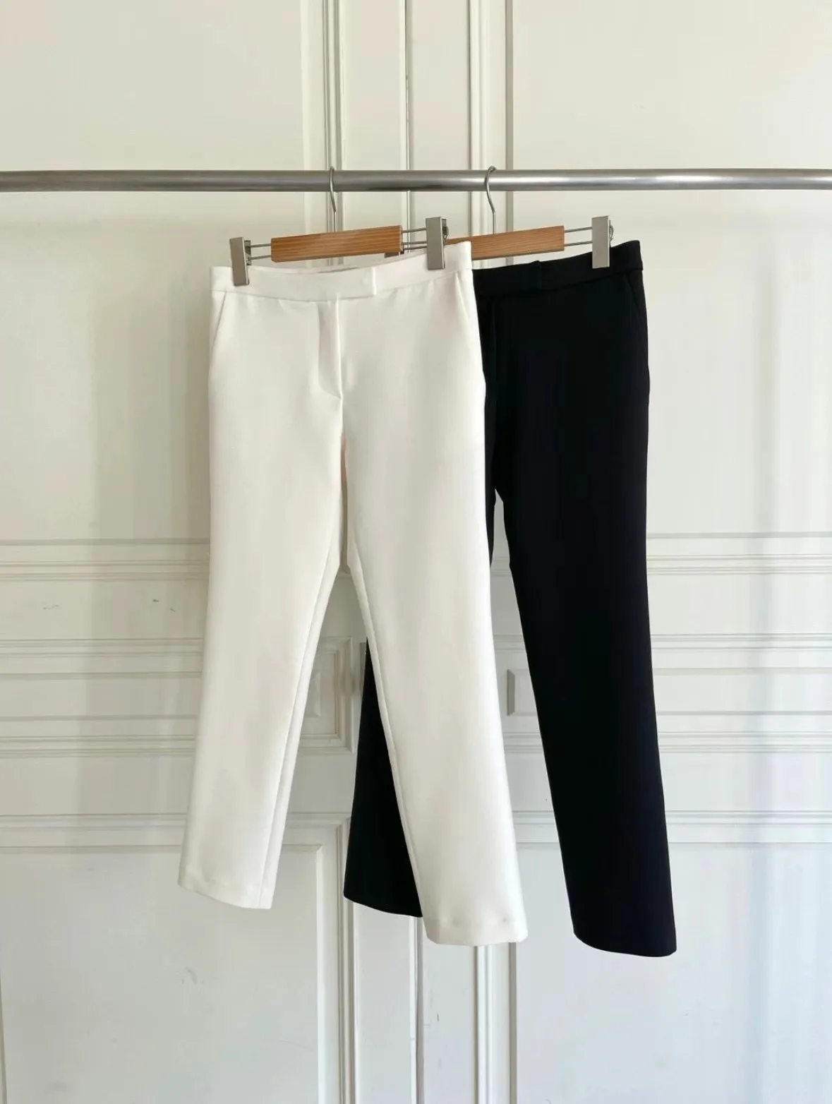 設計師款 彈力修身厚款小直筒休閒西裝褲