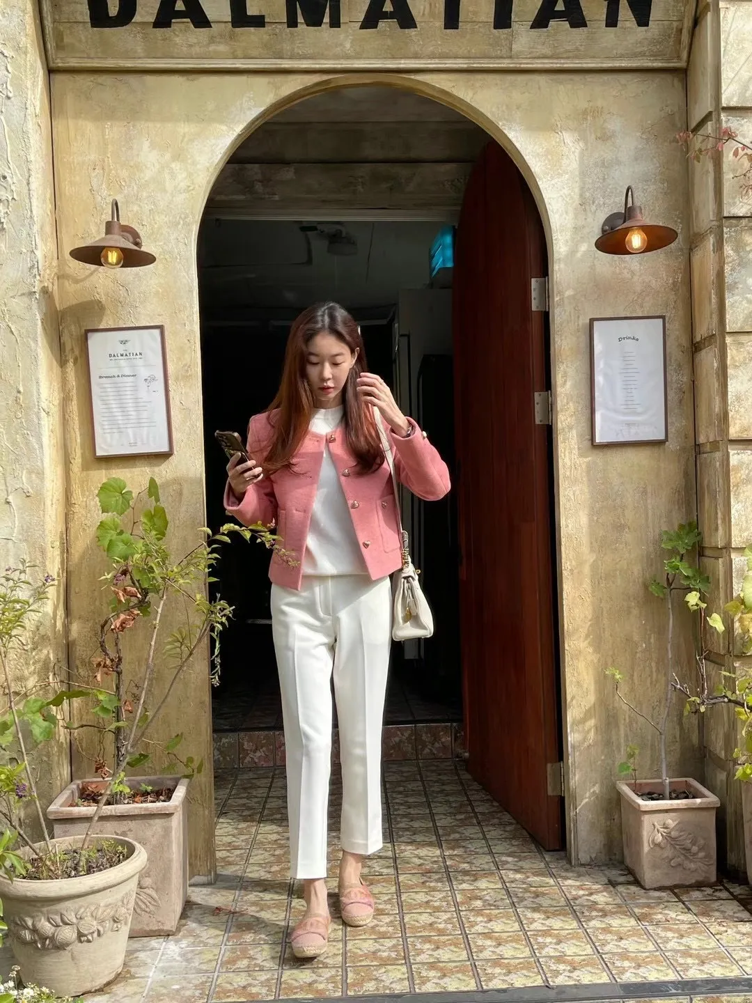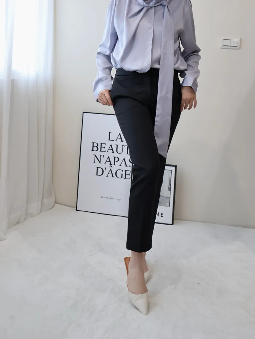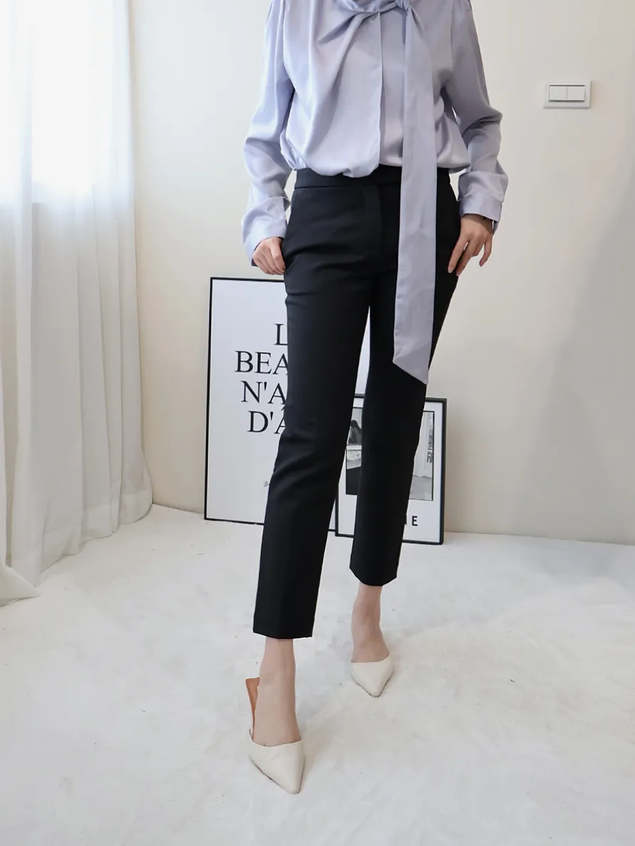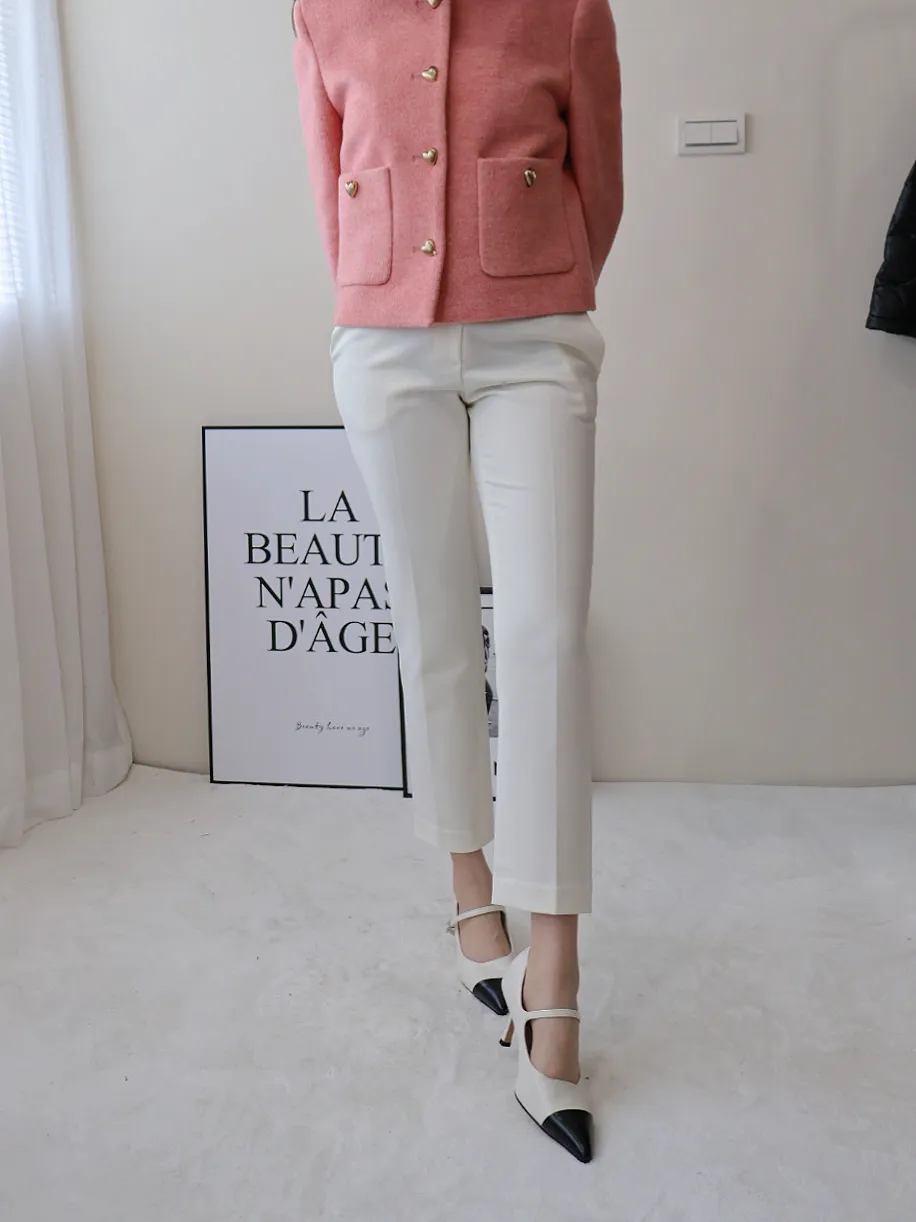 設計師款 彈力修身厚款小直筒休閒西裝褲