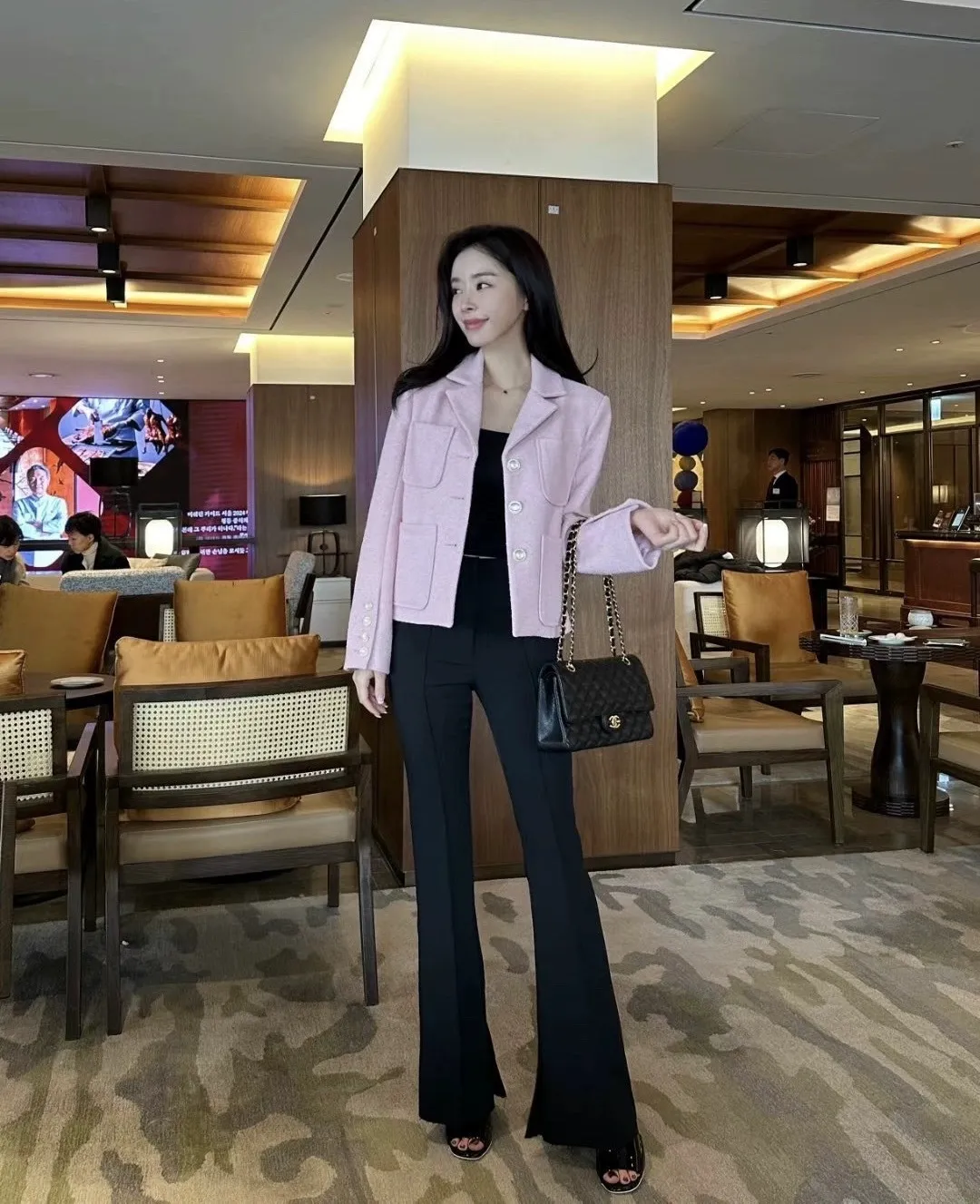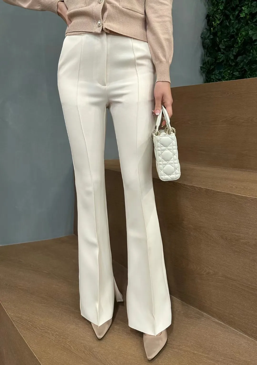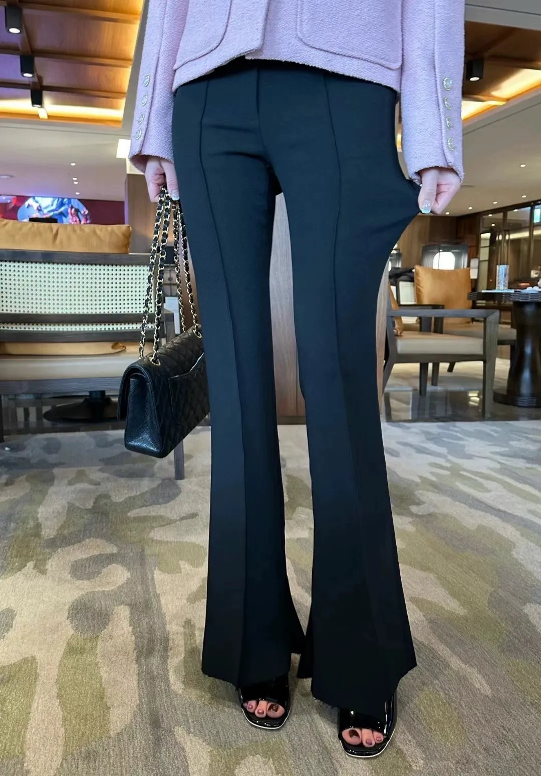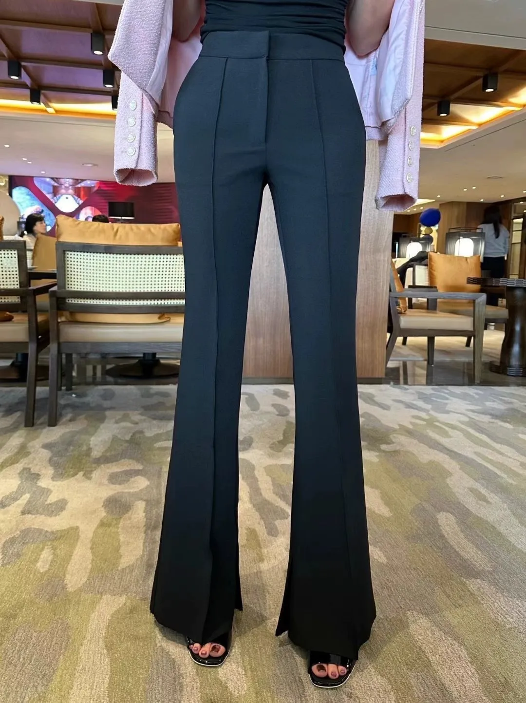 設計師品牌 氣質顯瘦顯腿長彈性微喇叭西裝褲