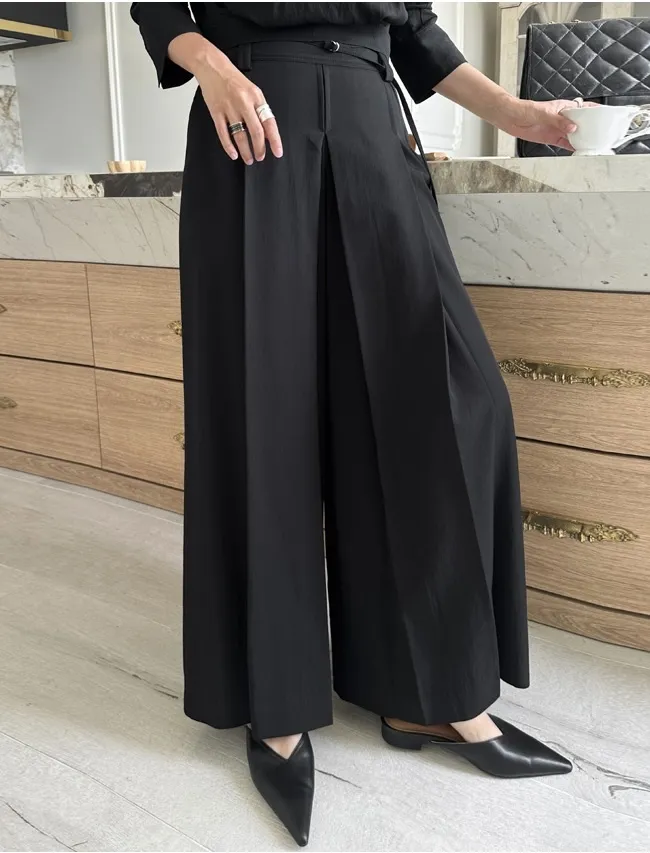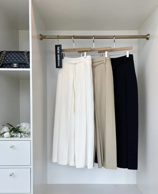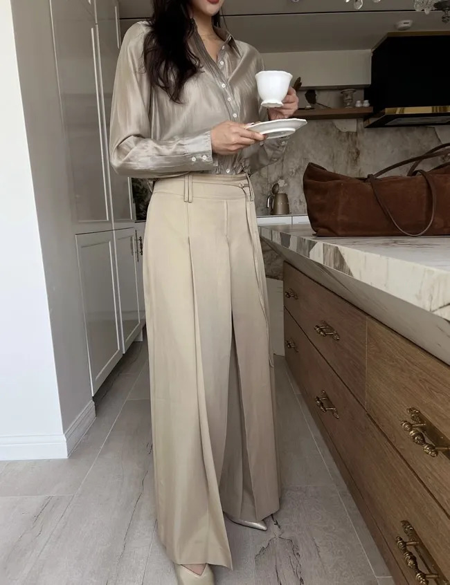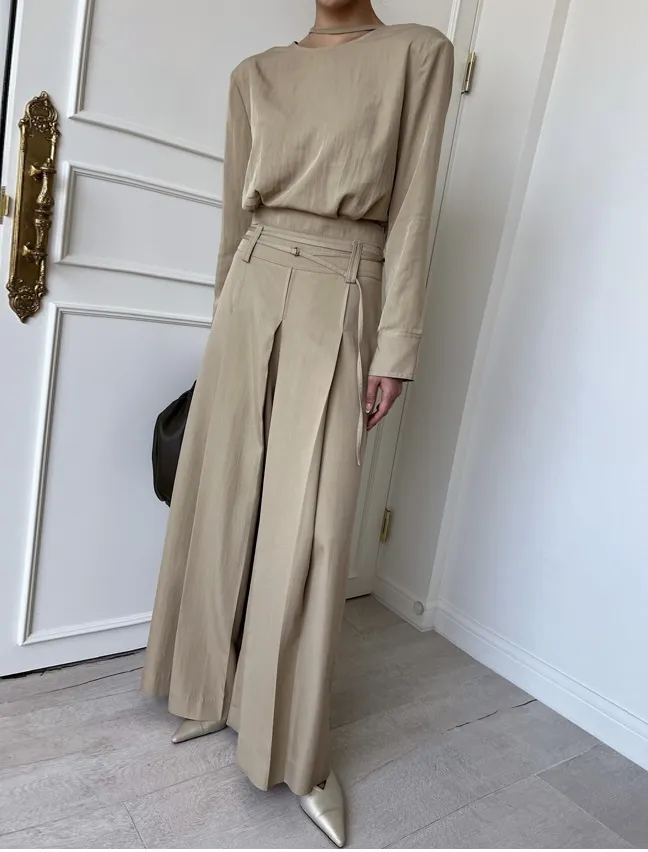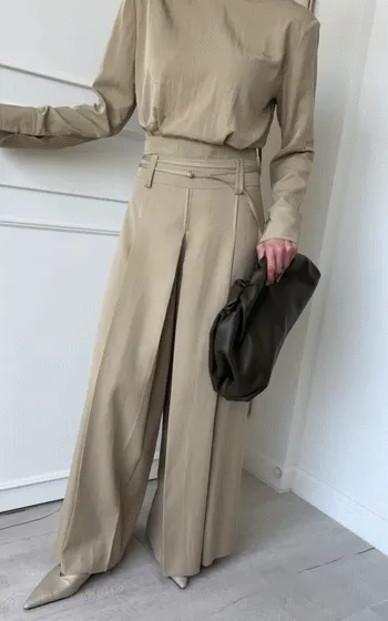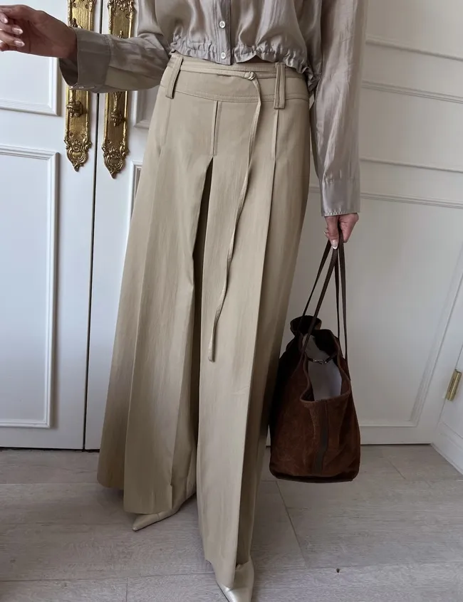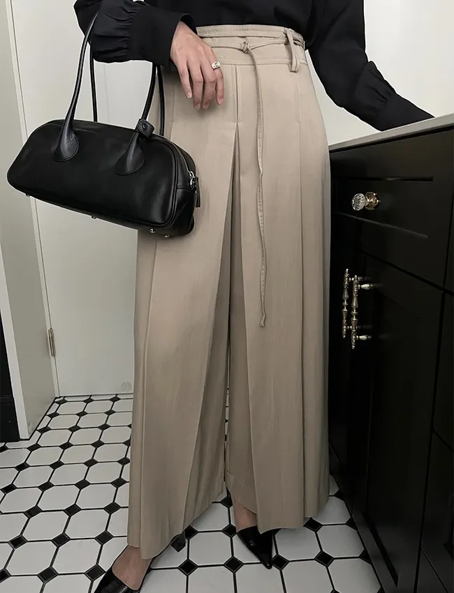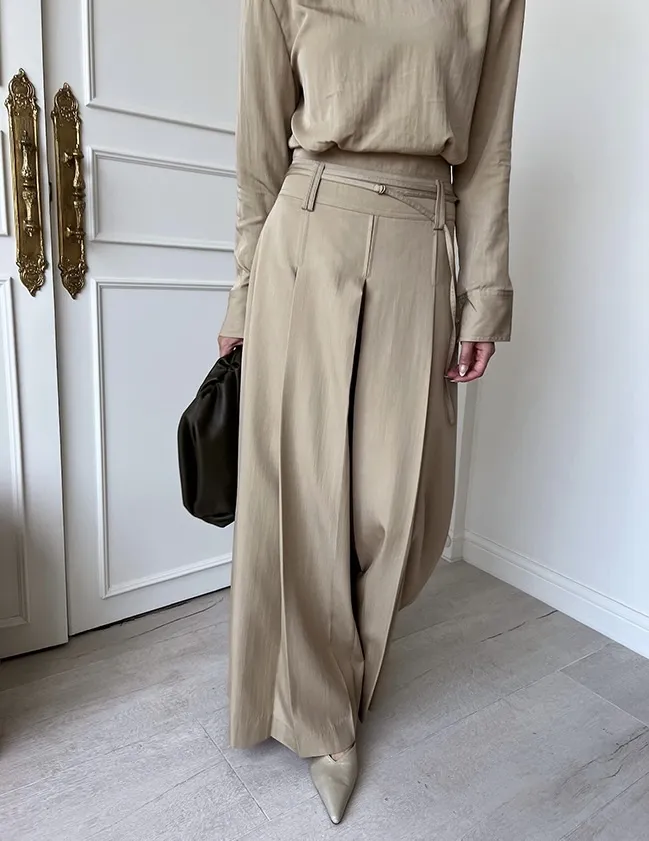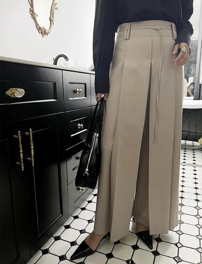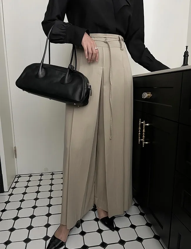 設計師品牌 顯瘦壓褶綁帶寬褲 西裝褲