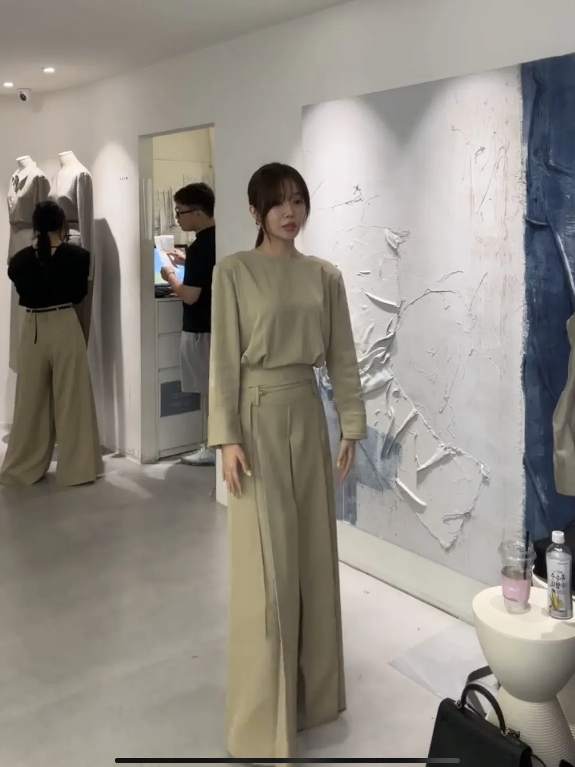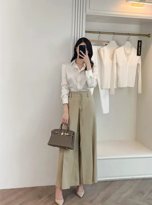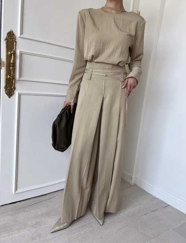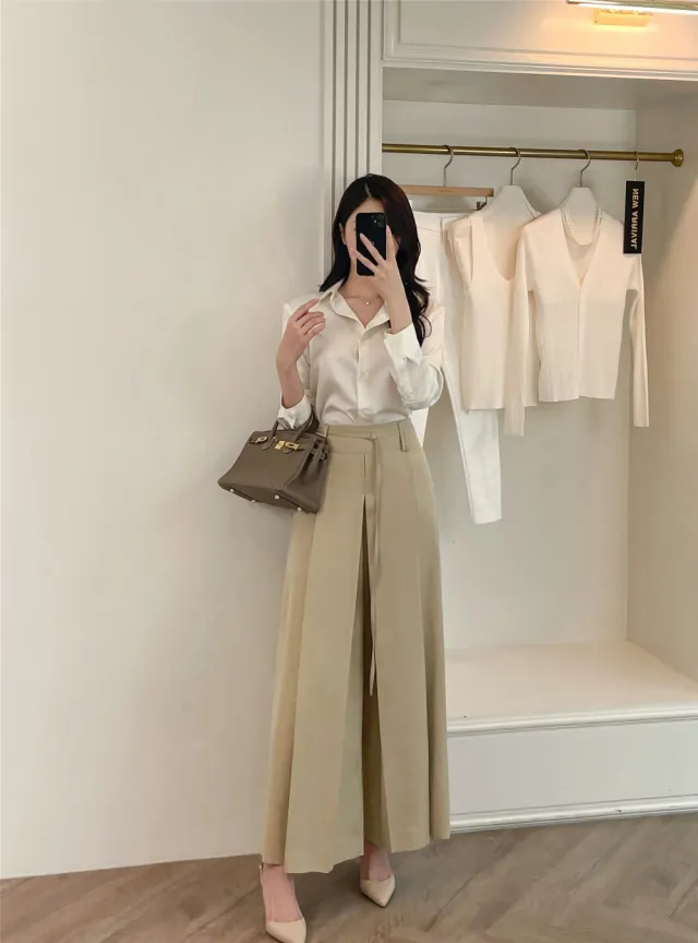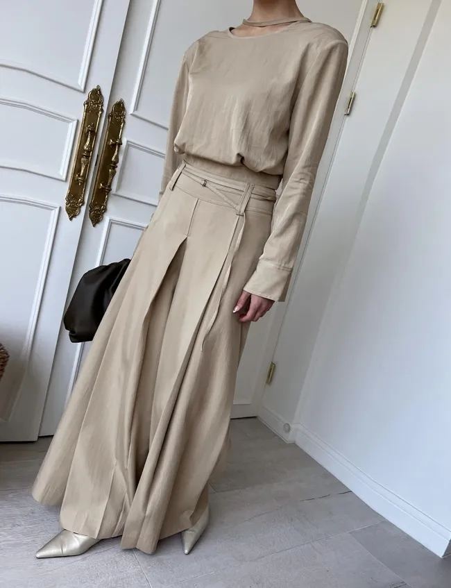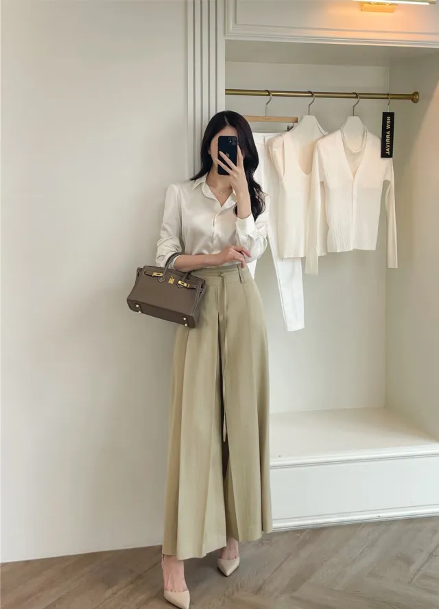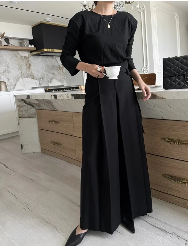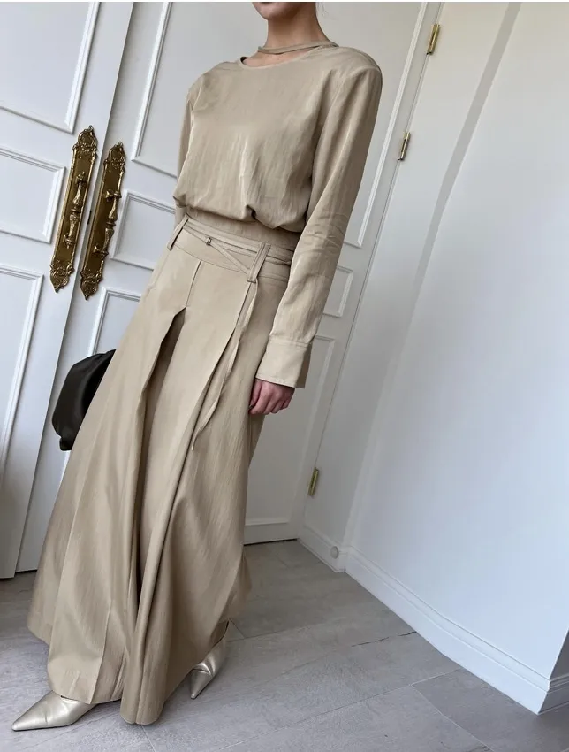設計師品牌 顯瘦壓褶綁帶寬褲 西裝褲