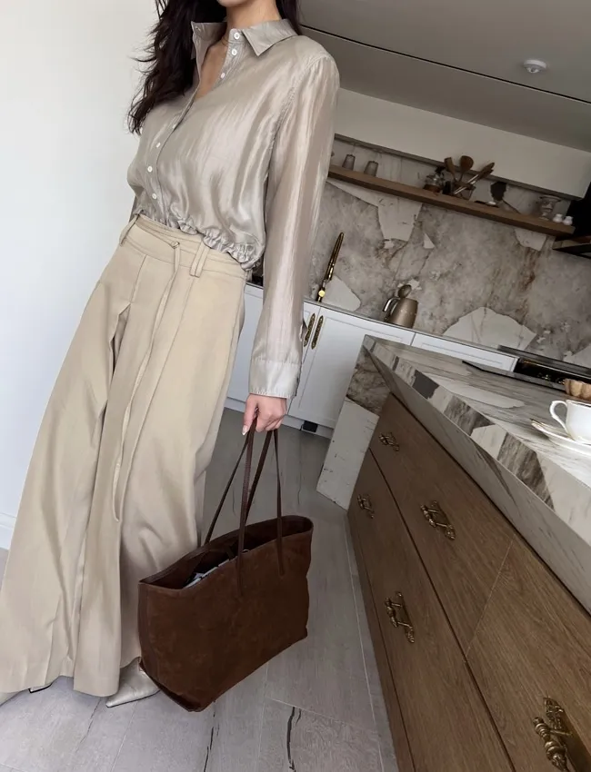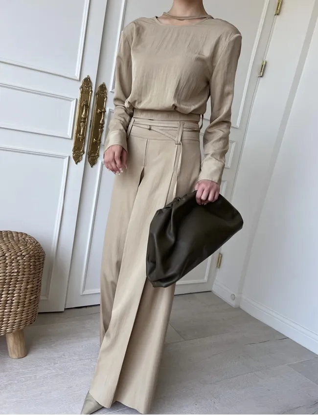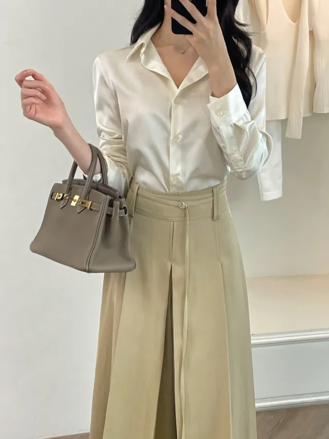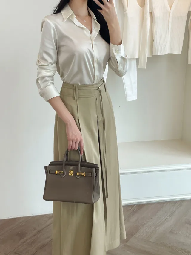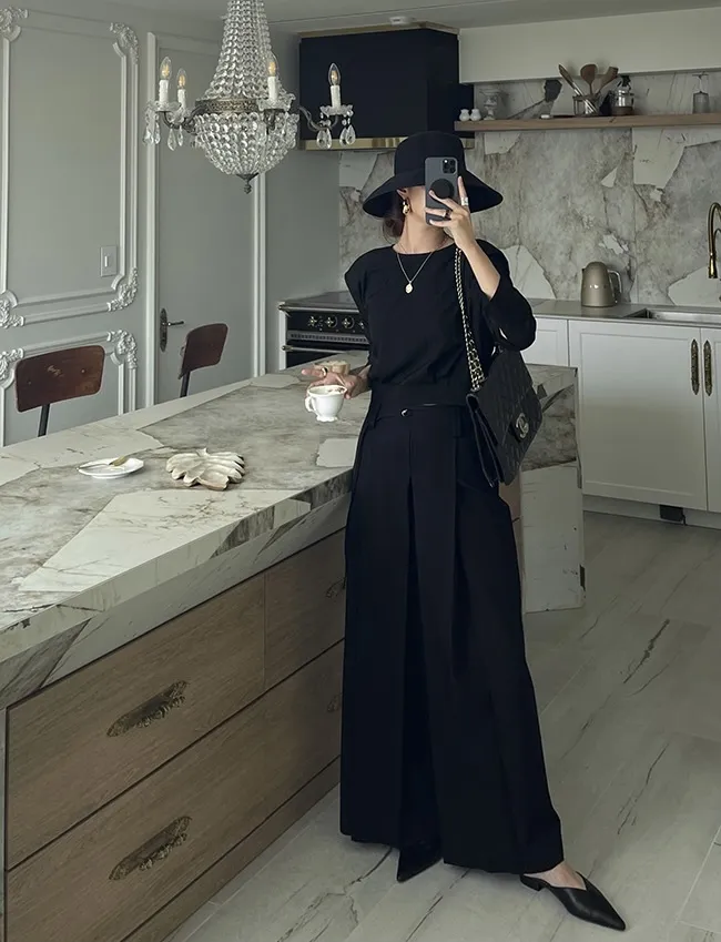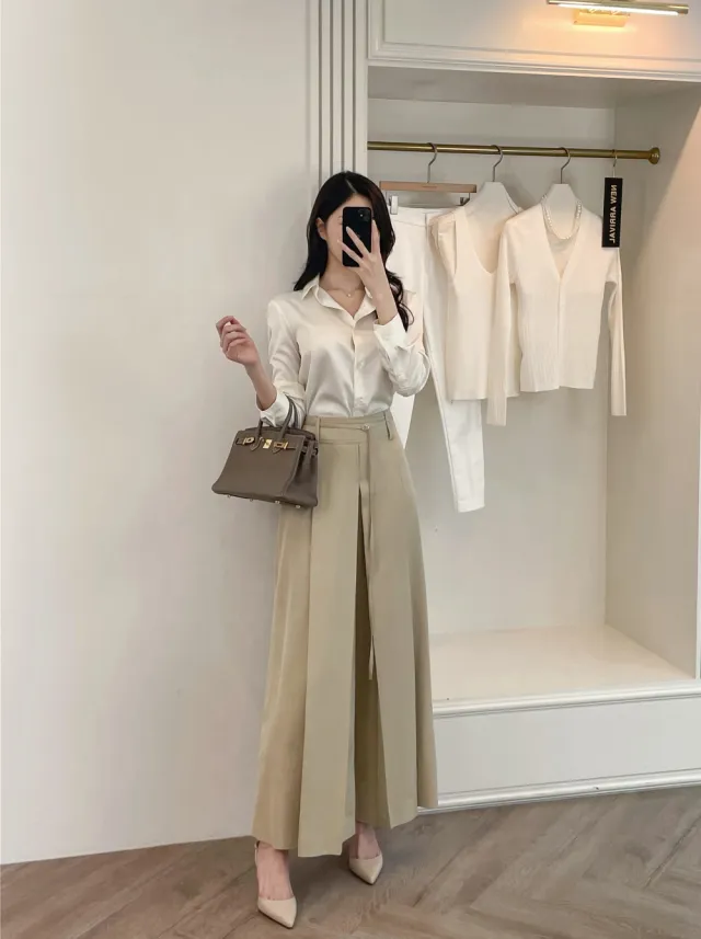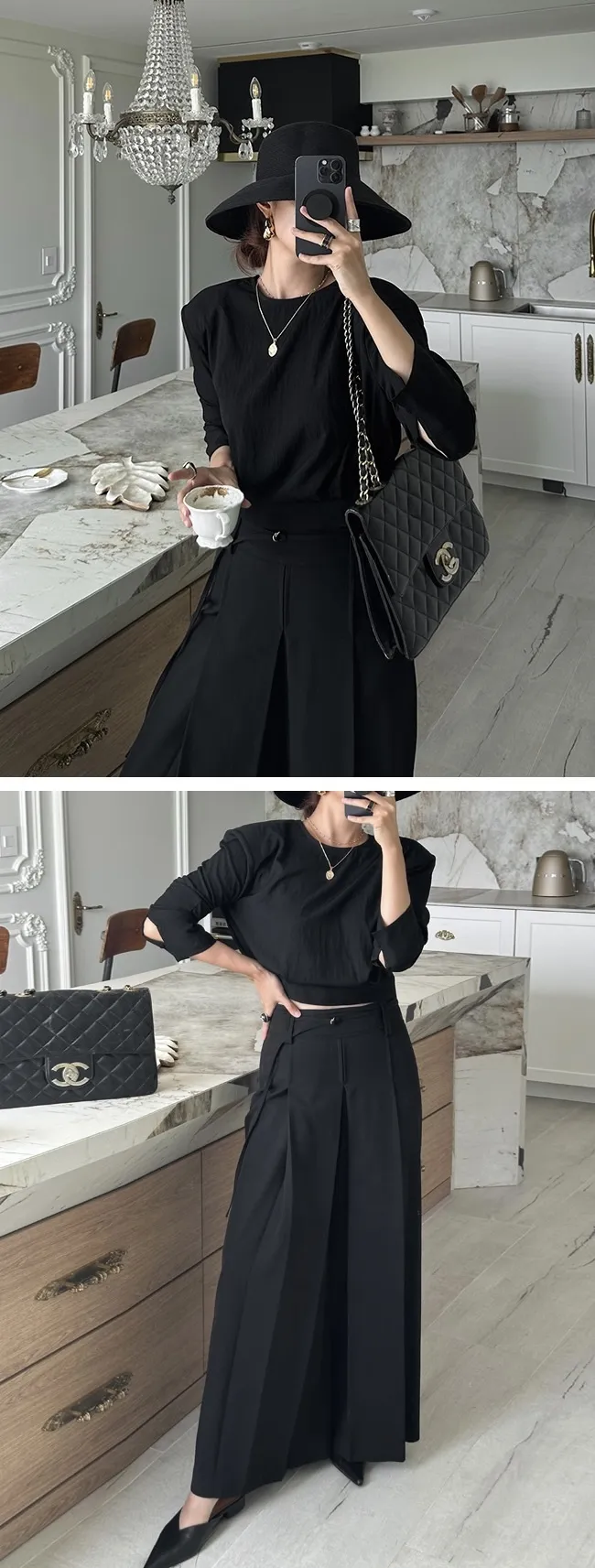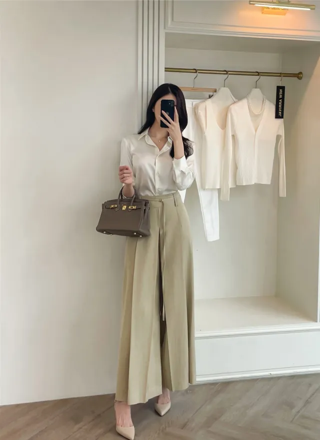 設計師品牌 顯瘦壓褶綁帶寬褲 西裝褲