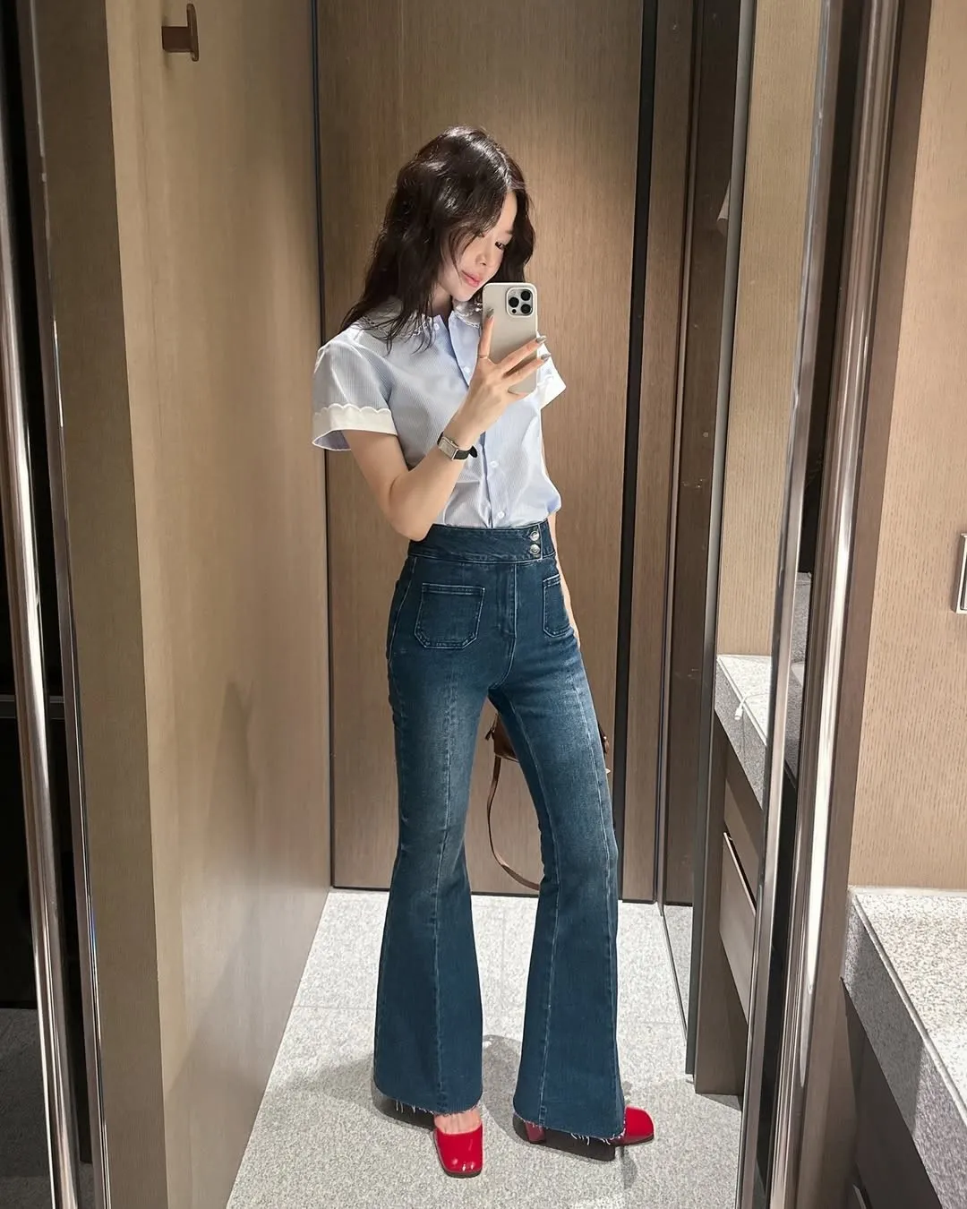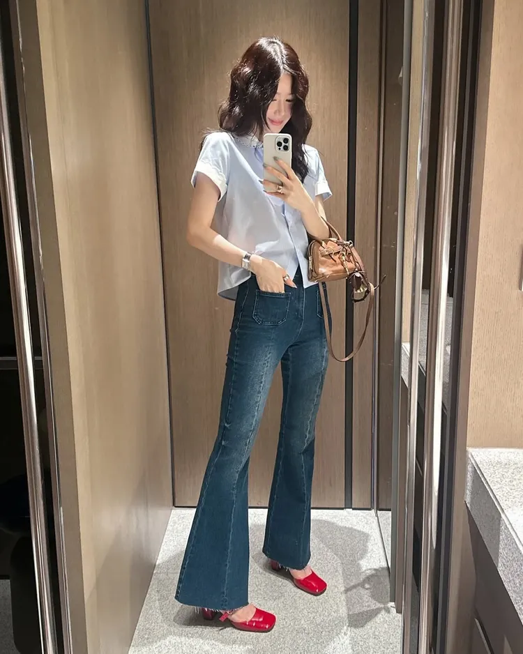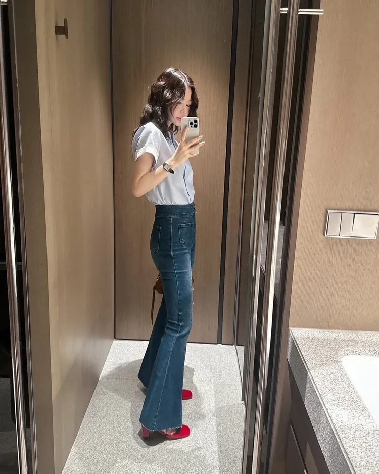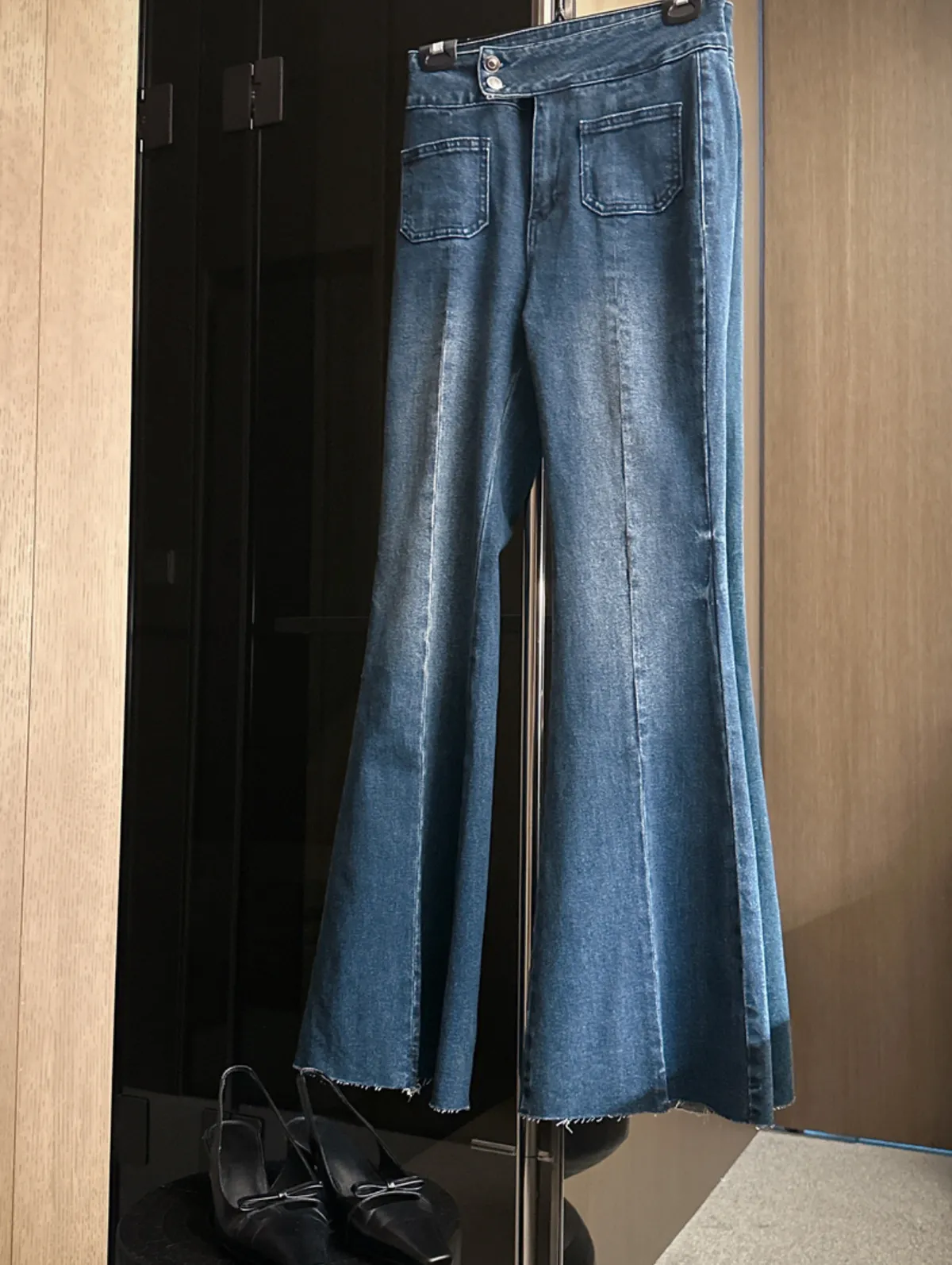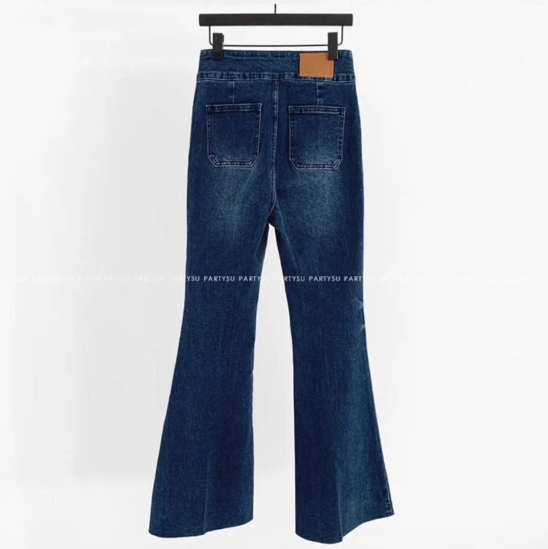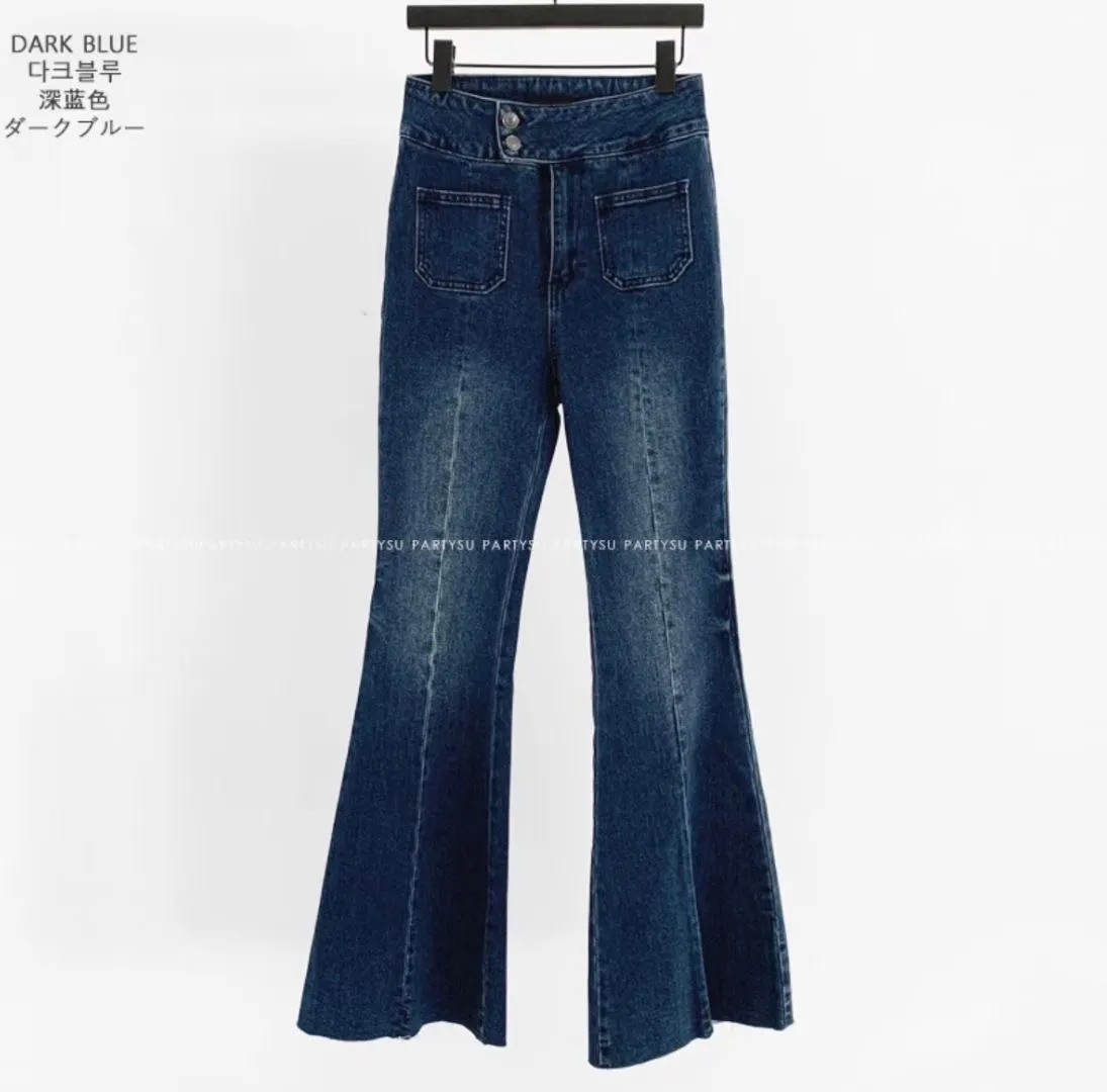 雙釦高腰美腿喇叭褲