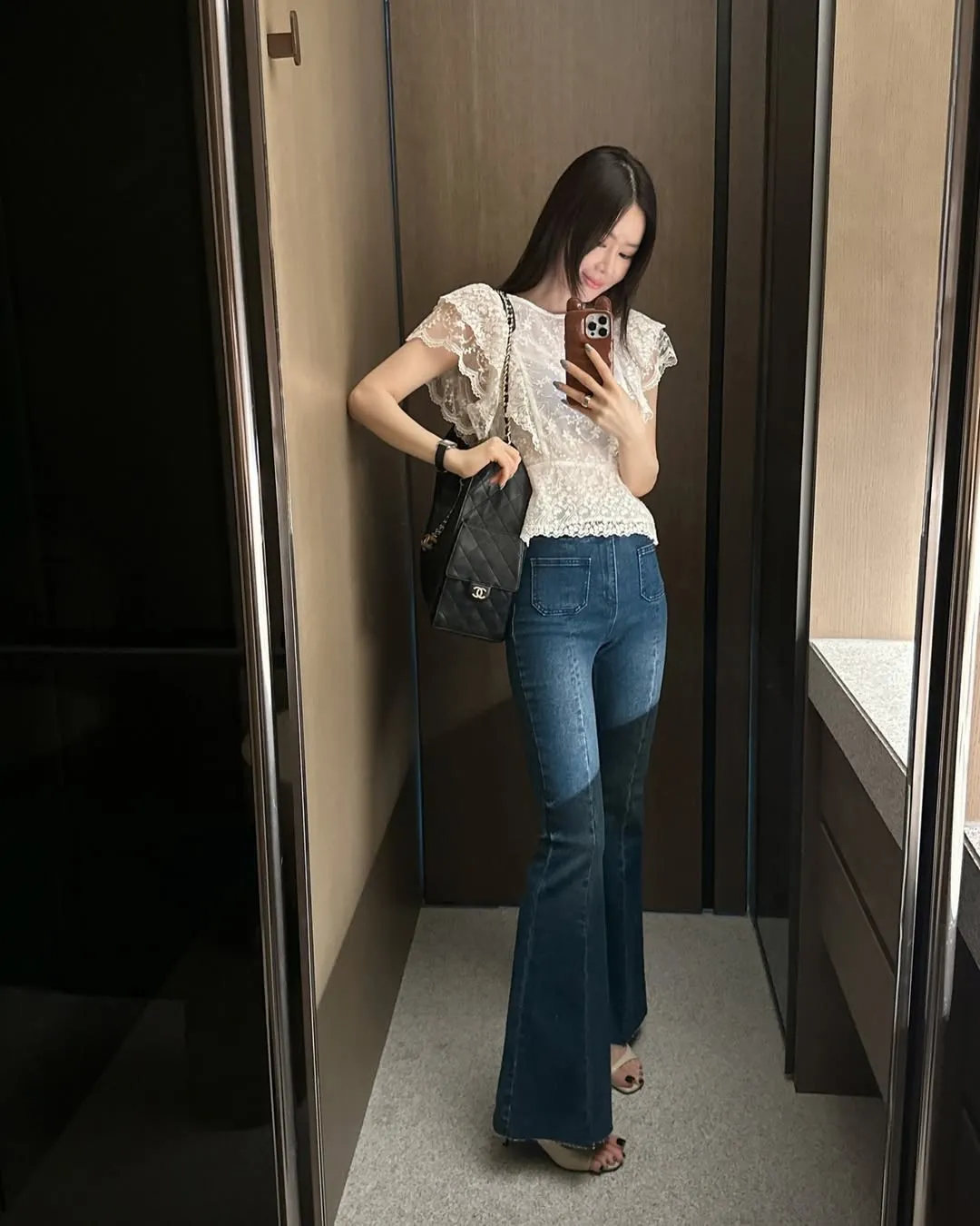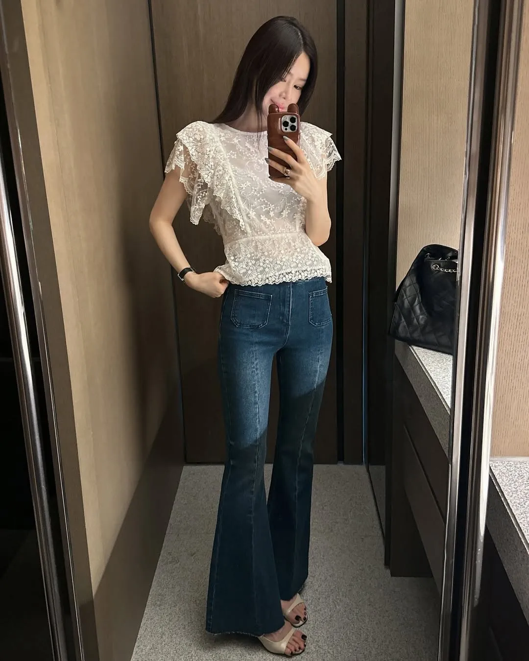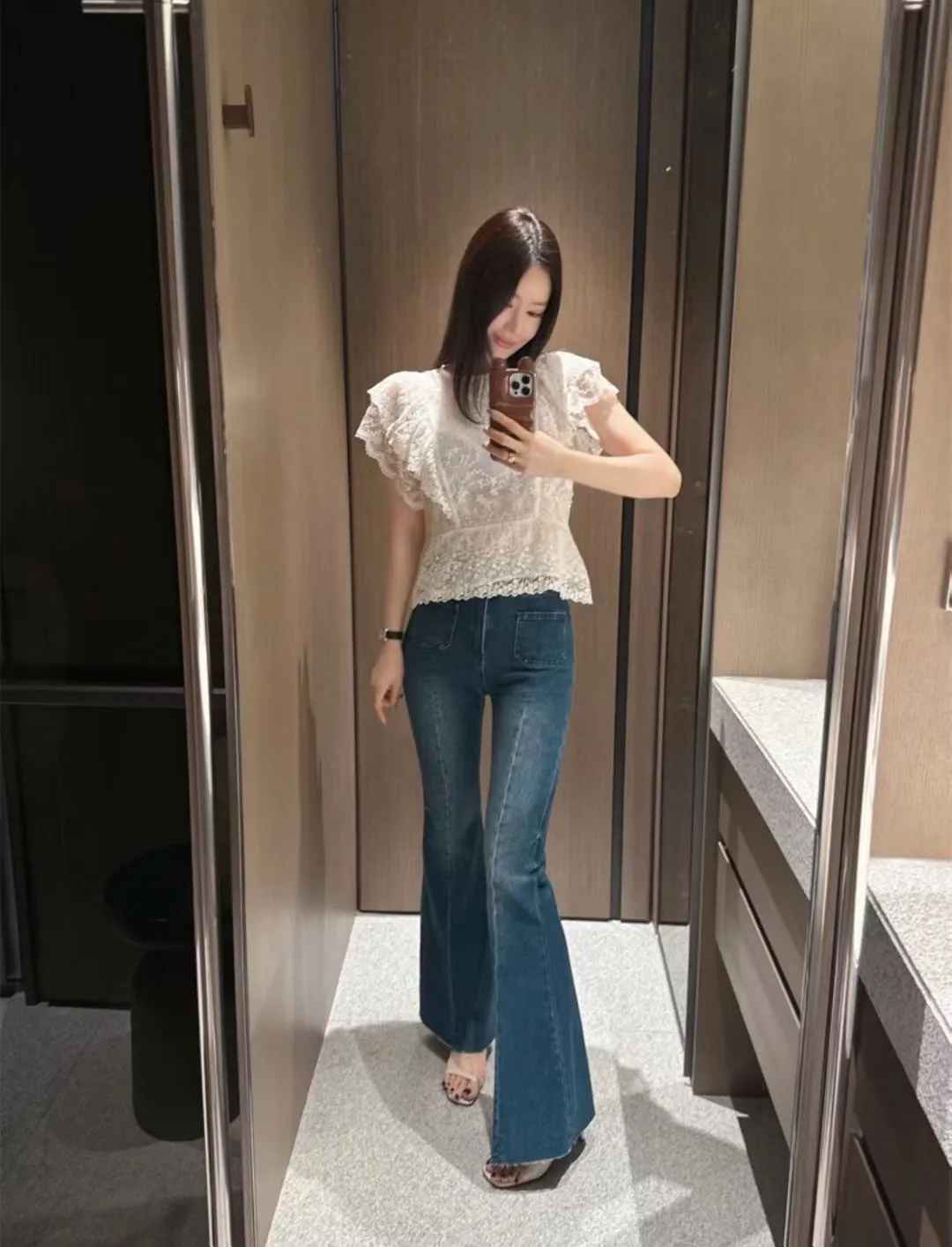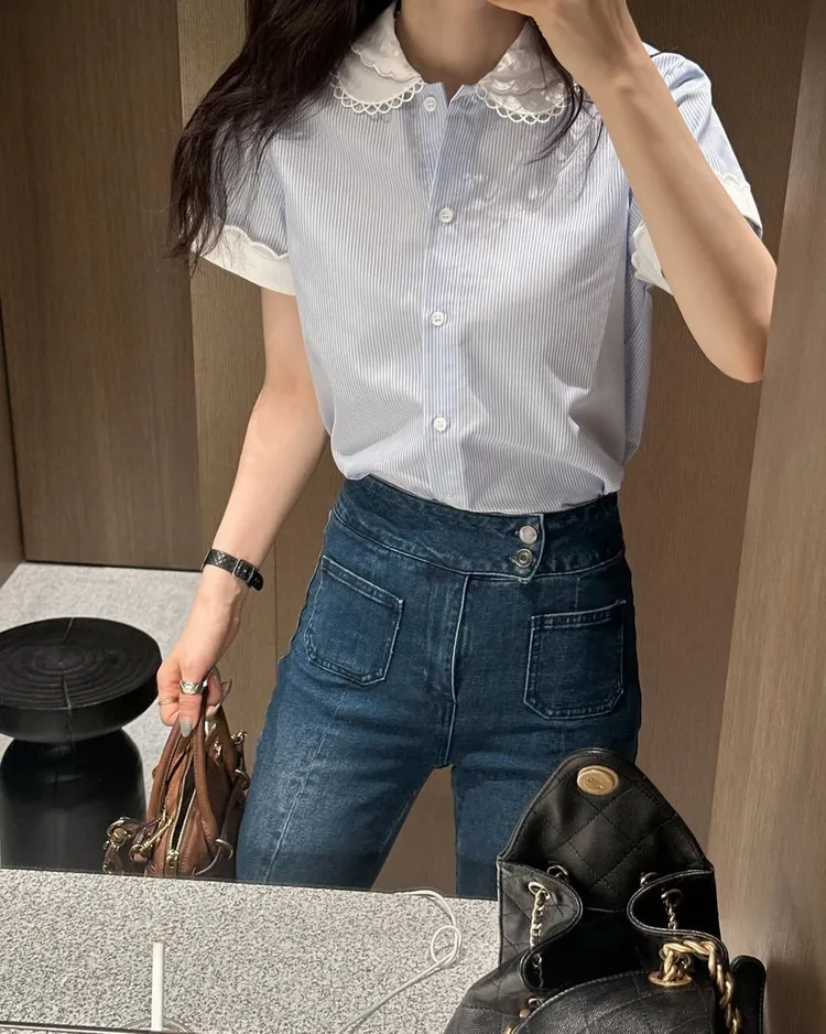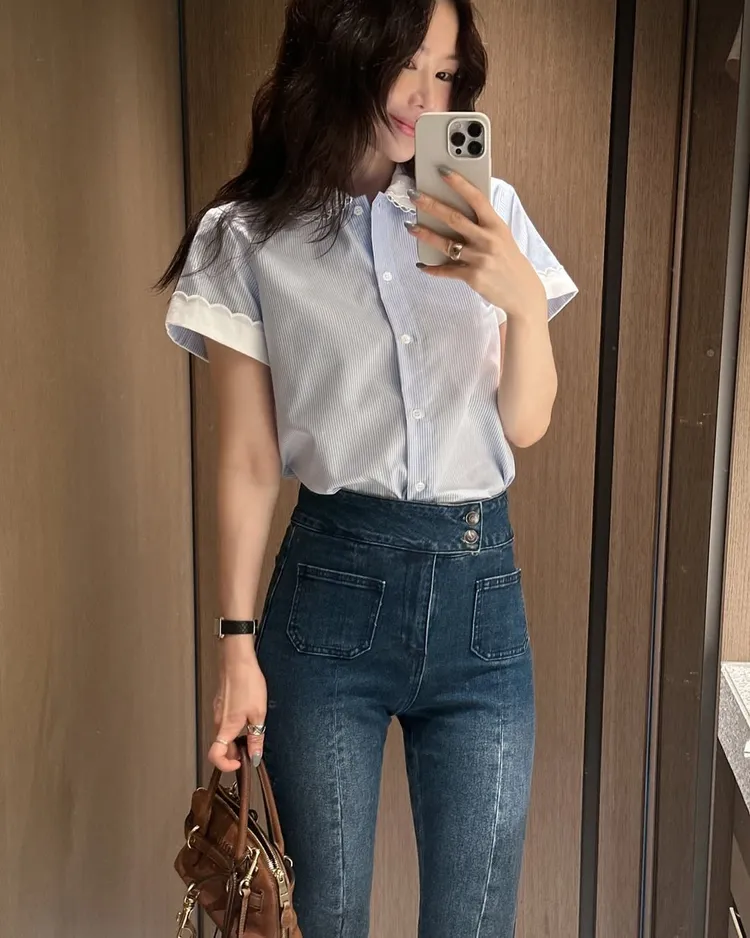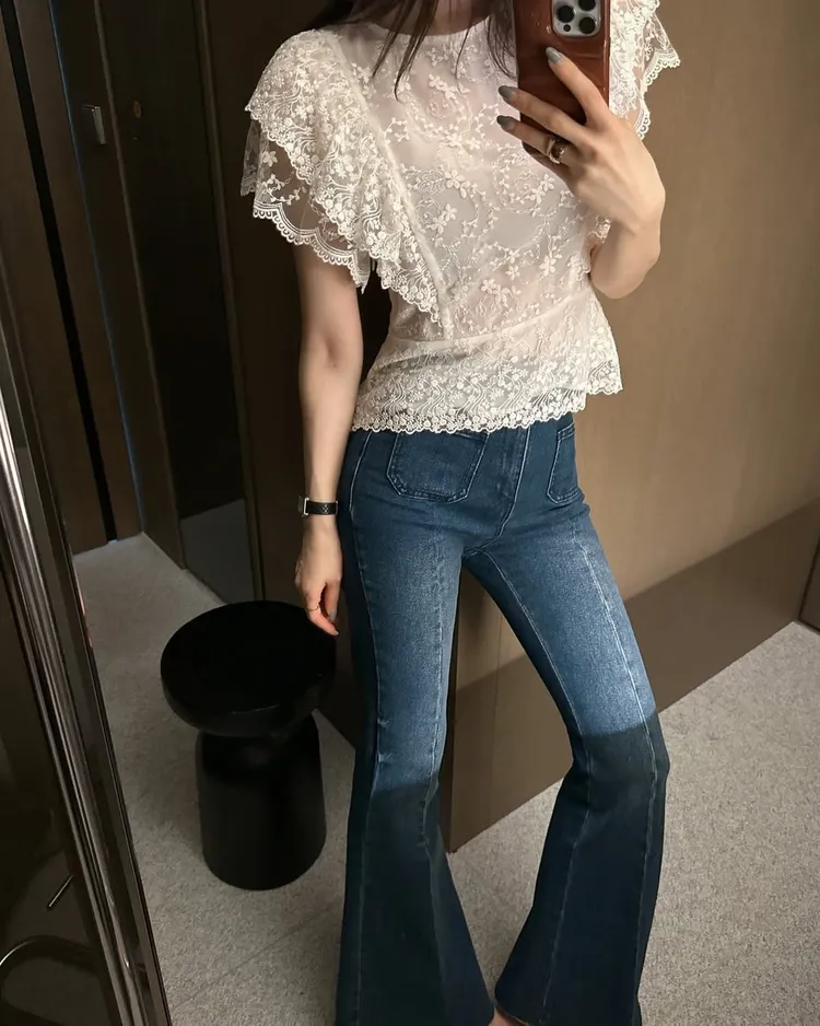 雙釦高腰美腿喇叭褲