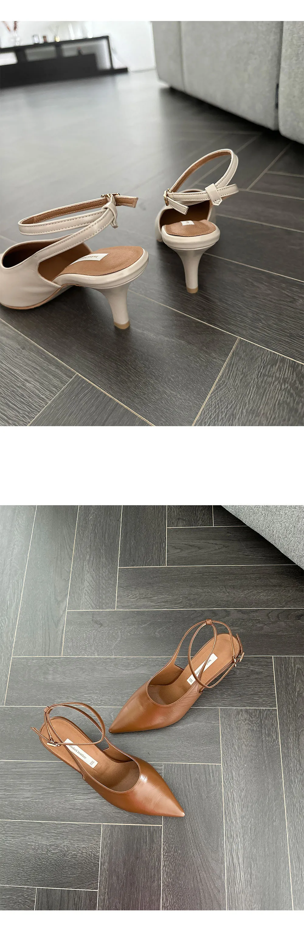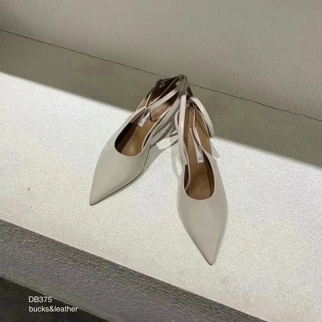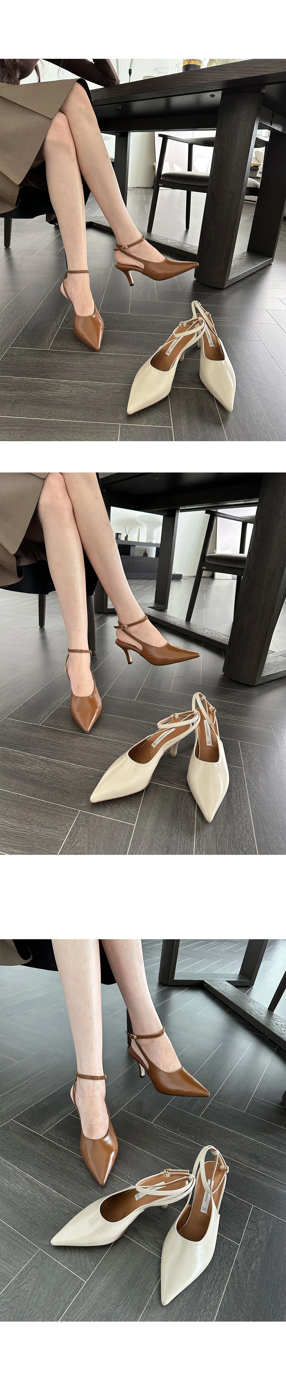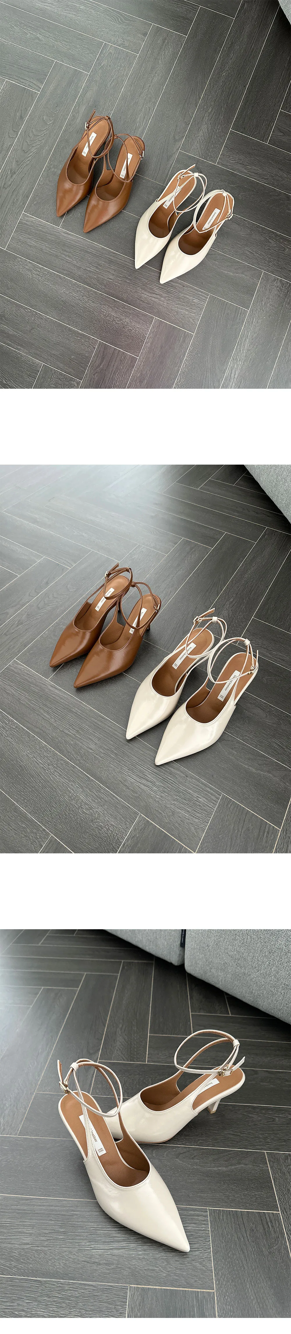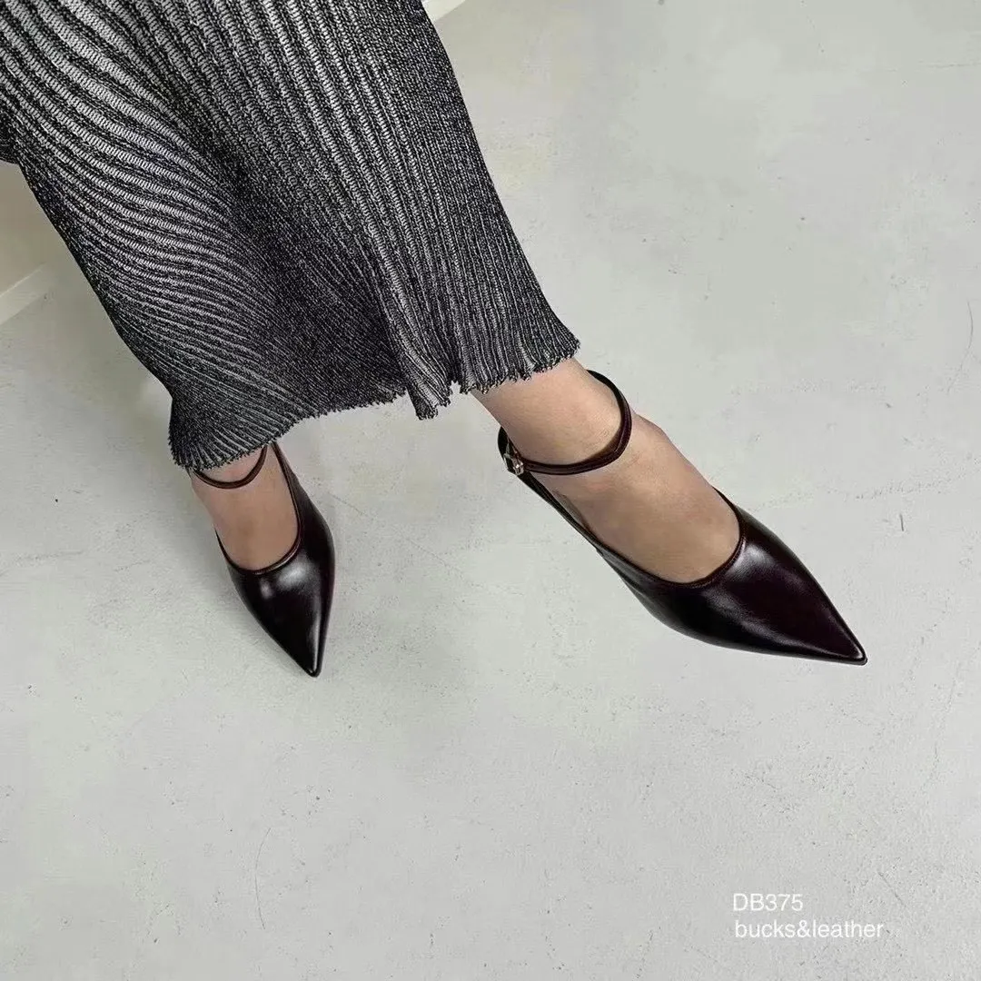 韓國設計師品牌 手工製作真皮100%牛皮尖頭綁帶高跟鞋