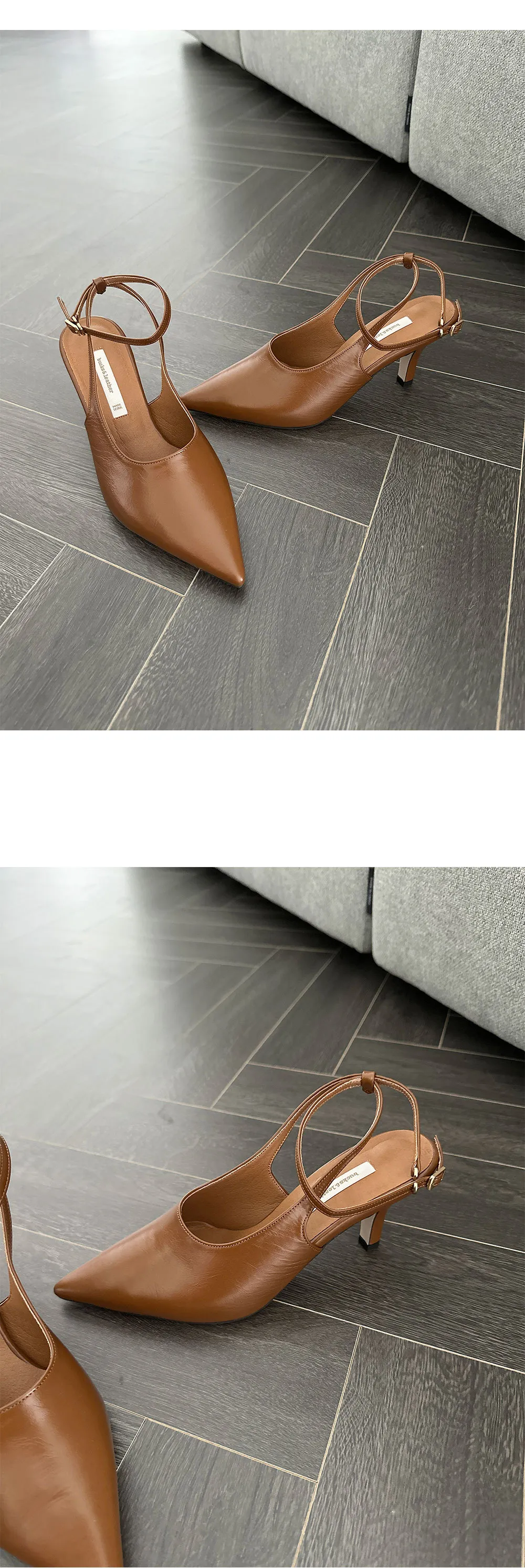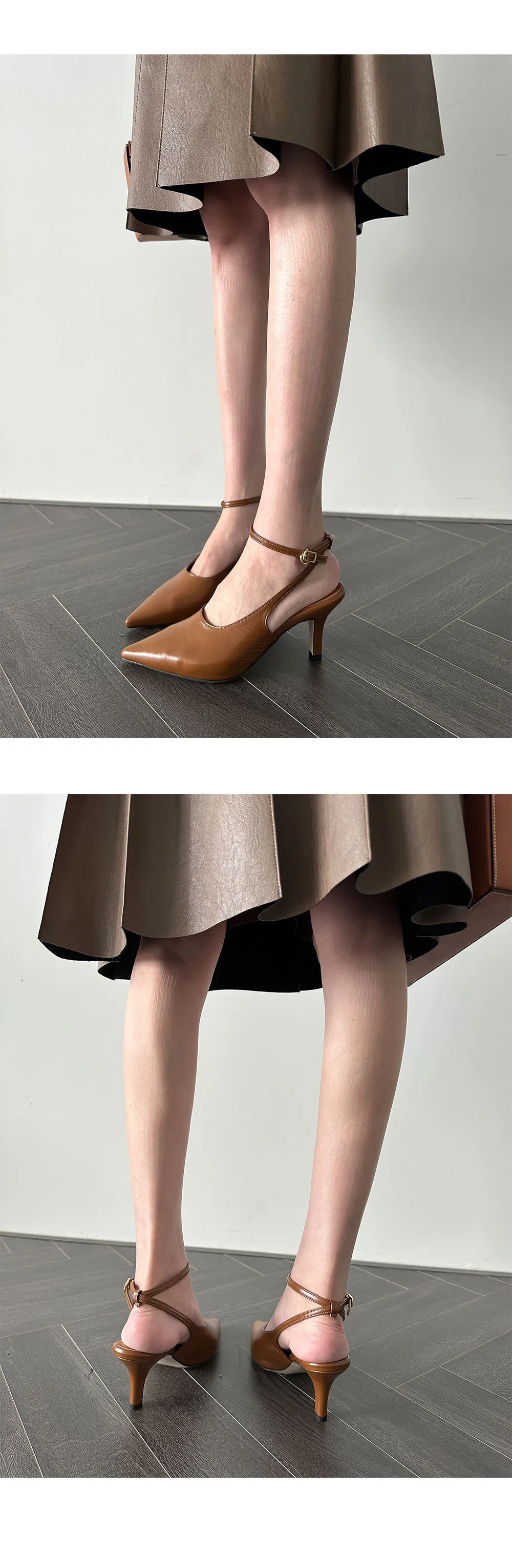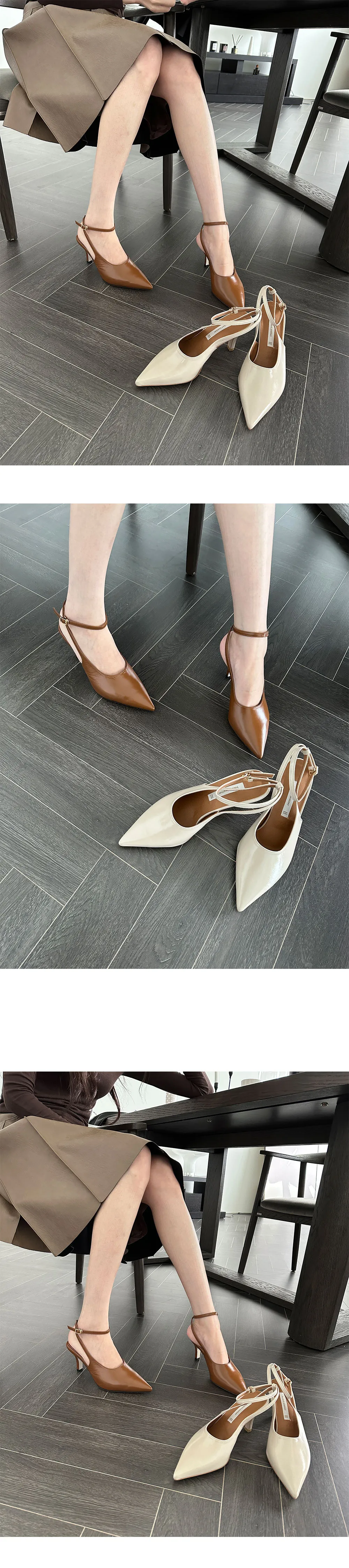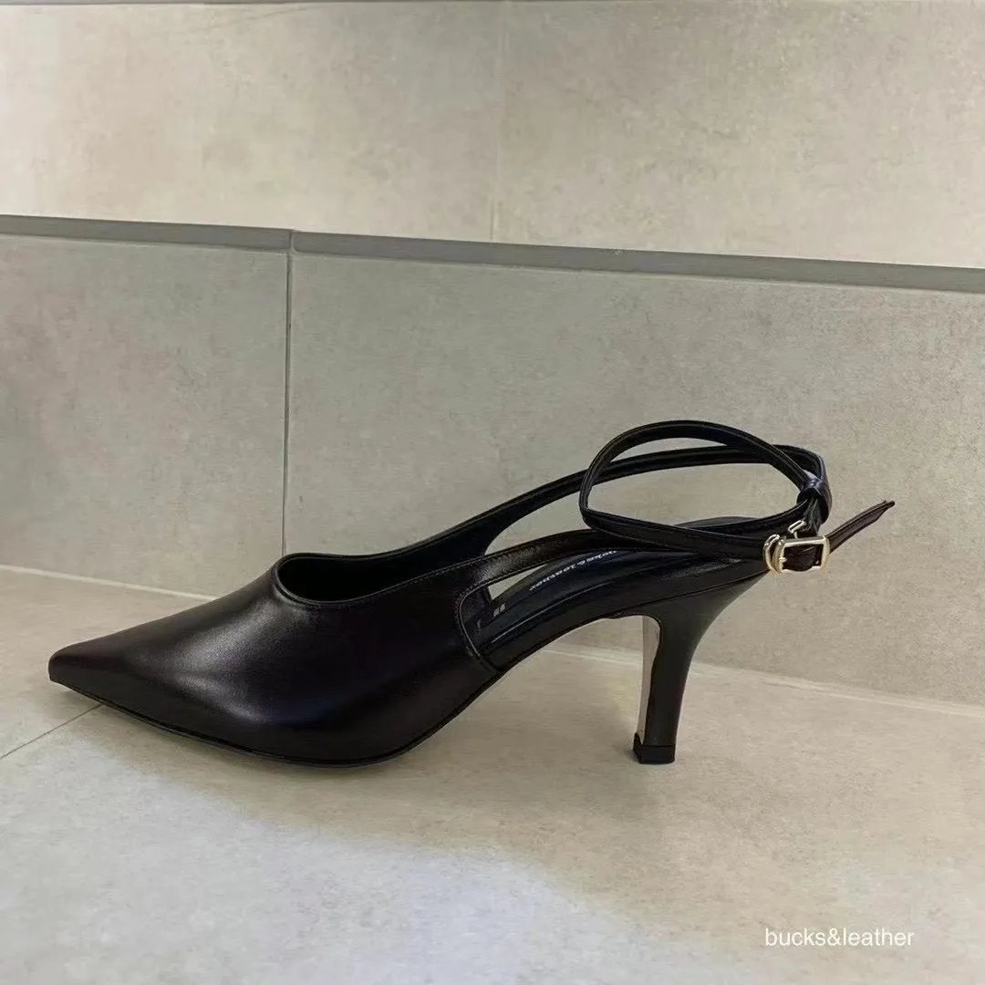 韓國設計師品牌 手工製作真皮100%牛皮尖頭綁帶高跟鞋