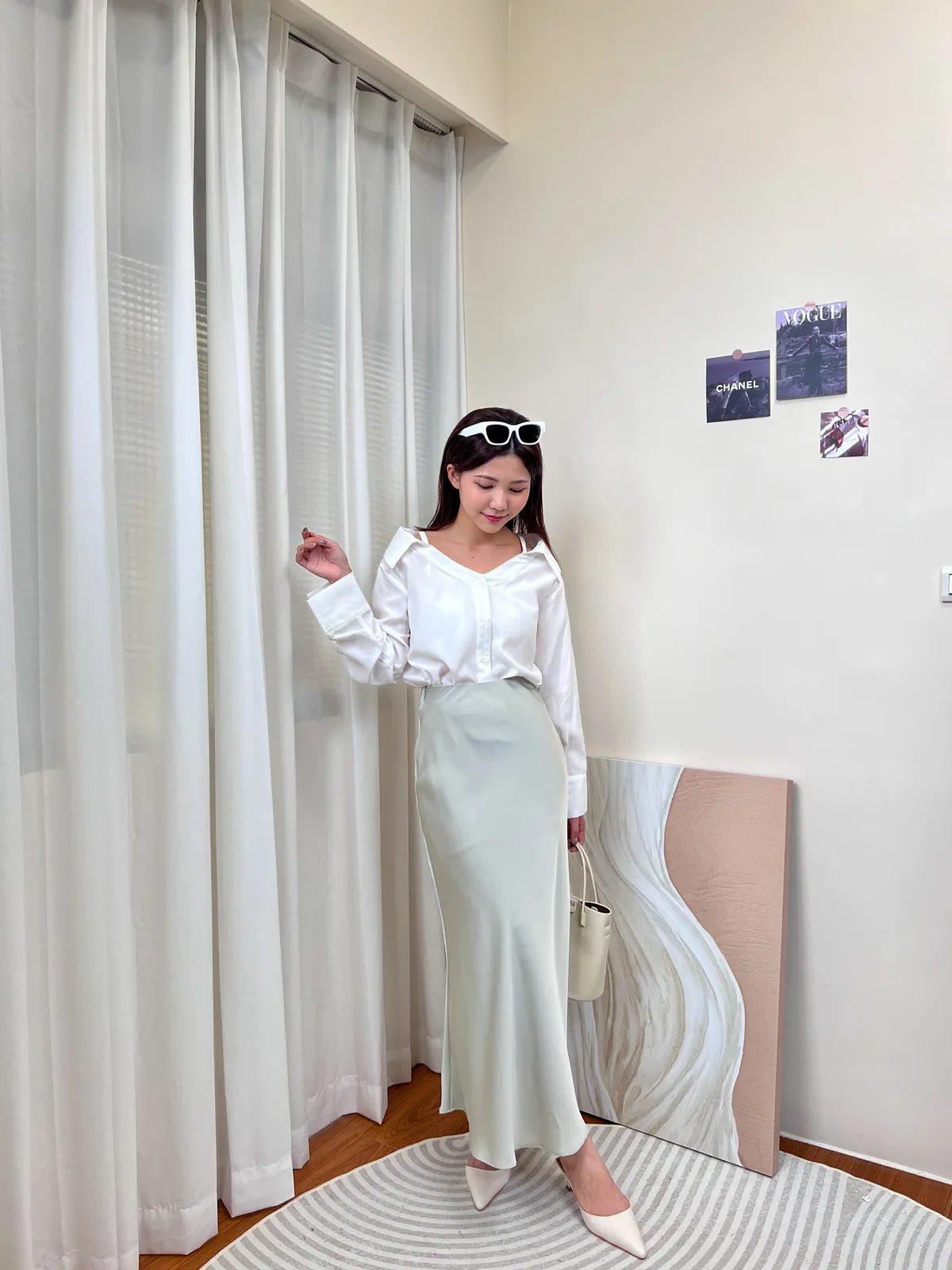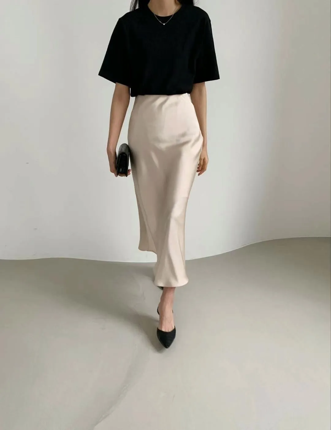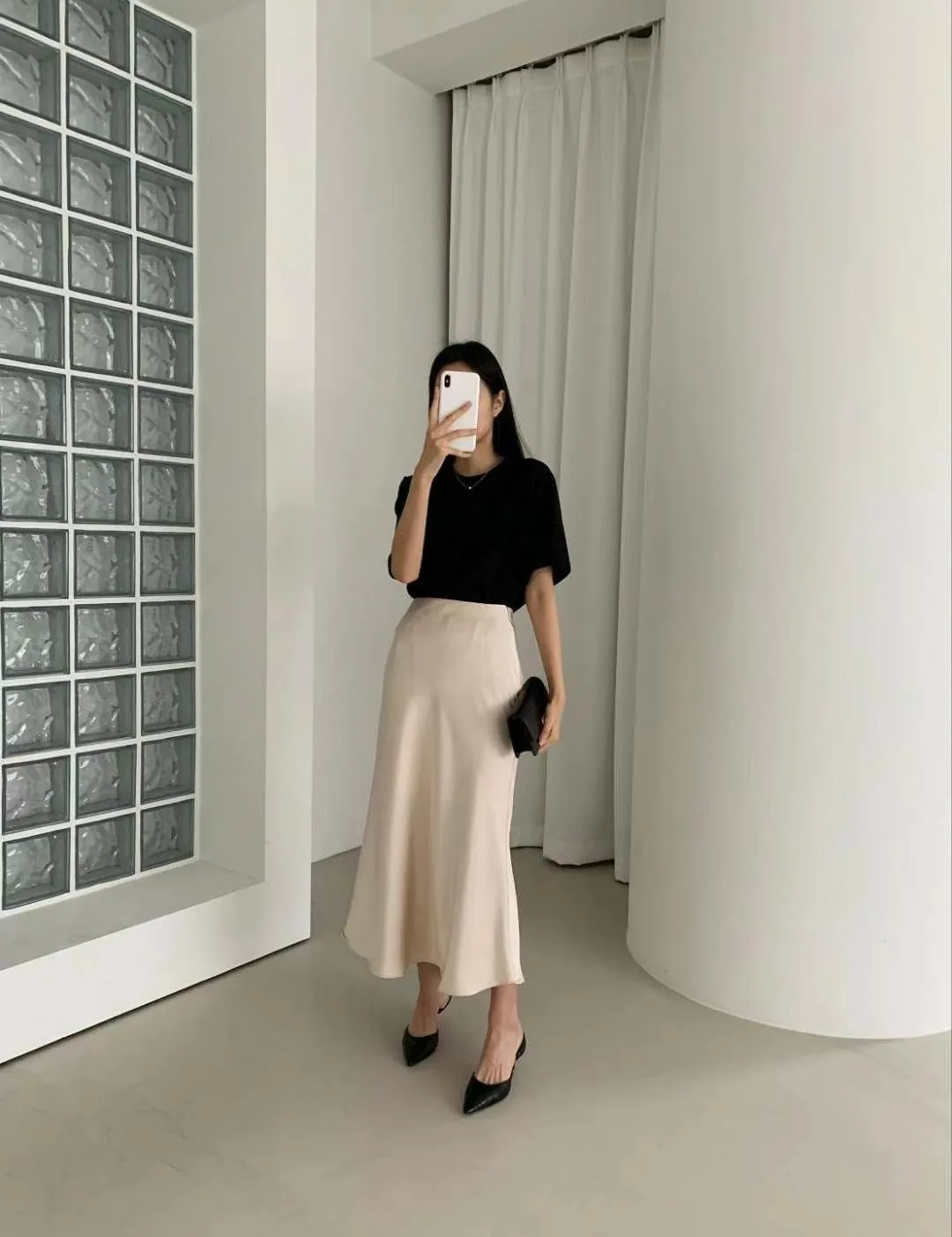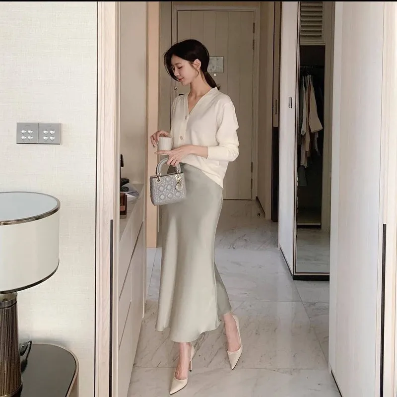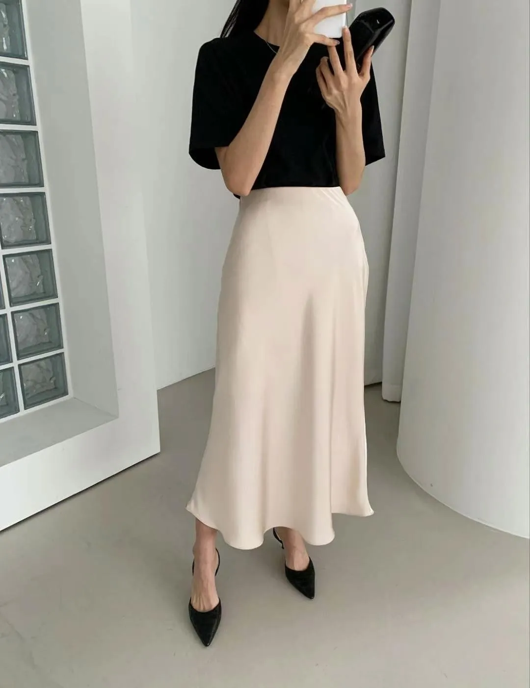 氣質溫柔鬆緊光澤感半裙 魚尾裙 優雅女人味💕