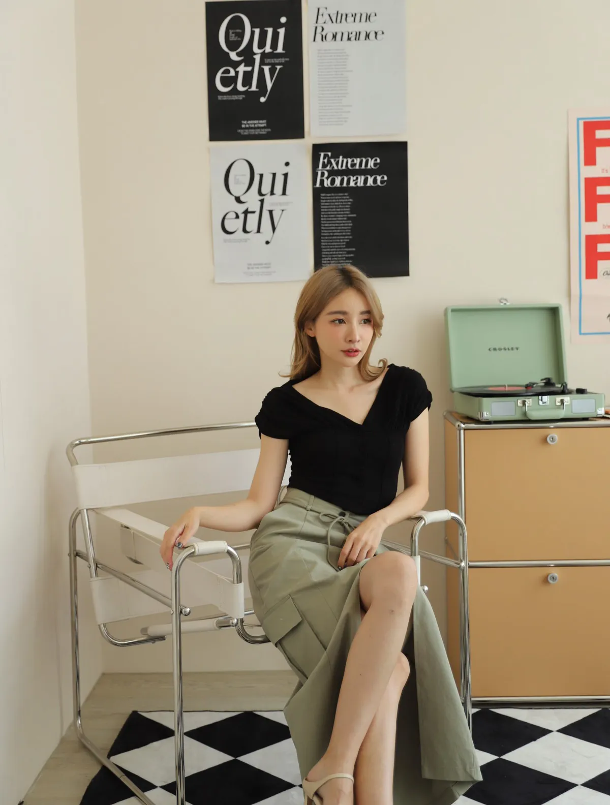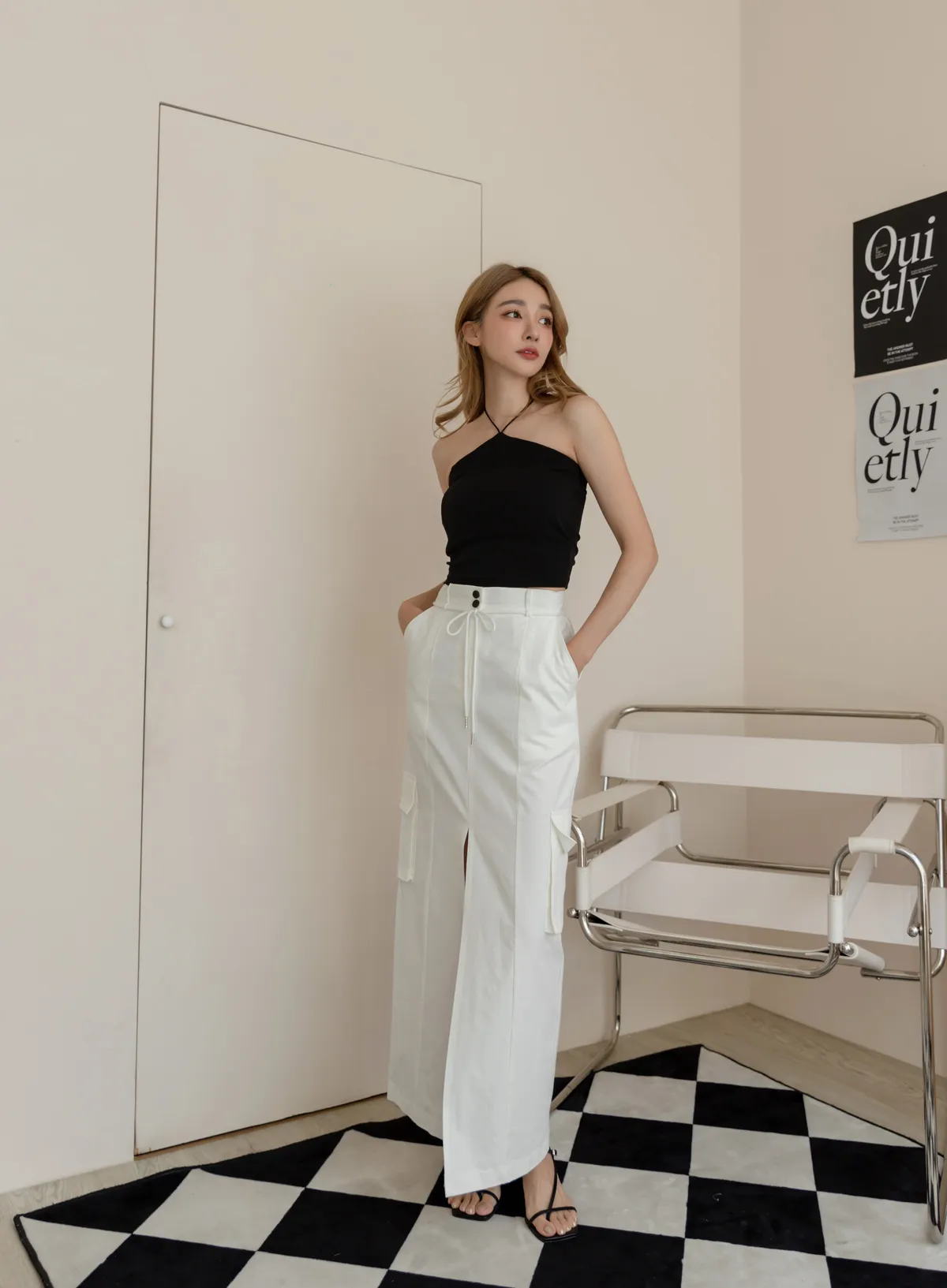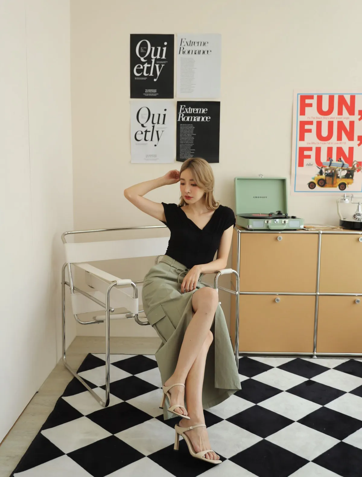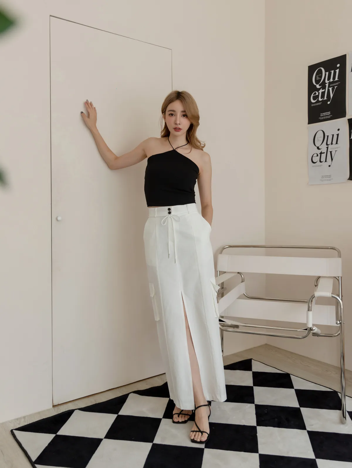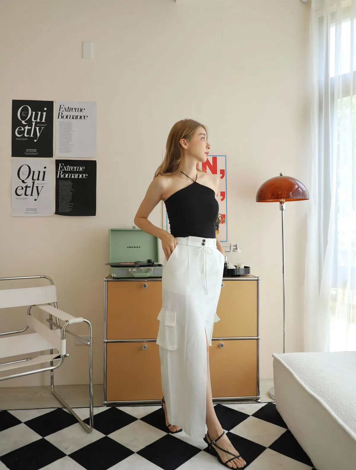 設計感顯瘦雙口袋開杈工裝裙 鬆緊長裙