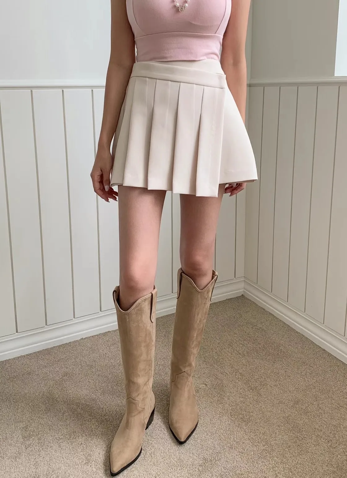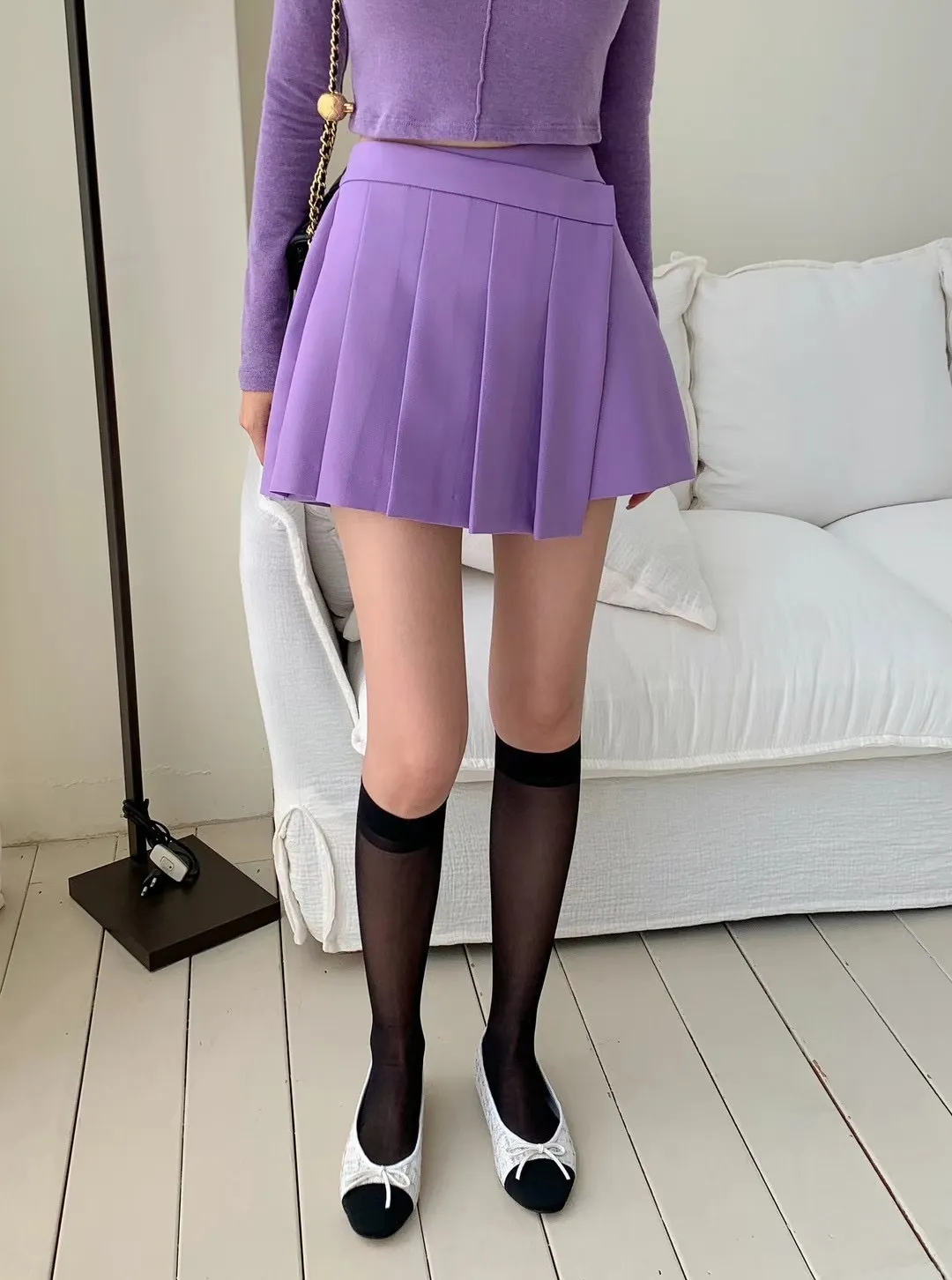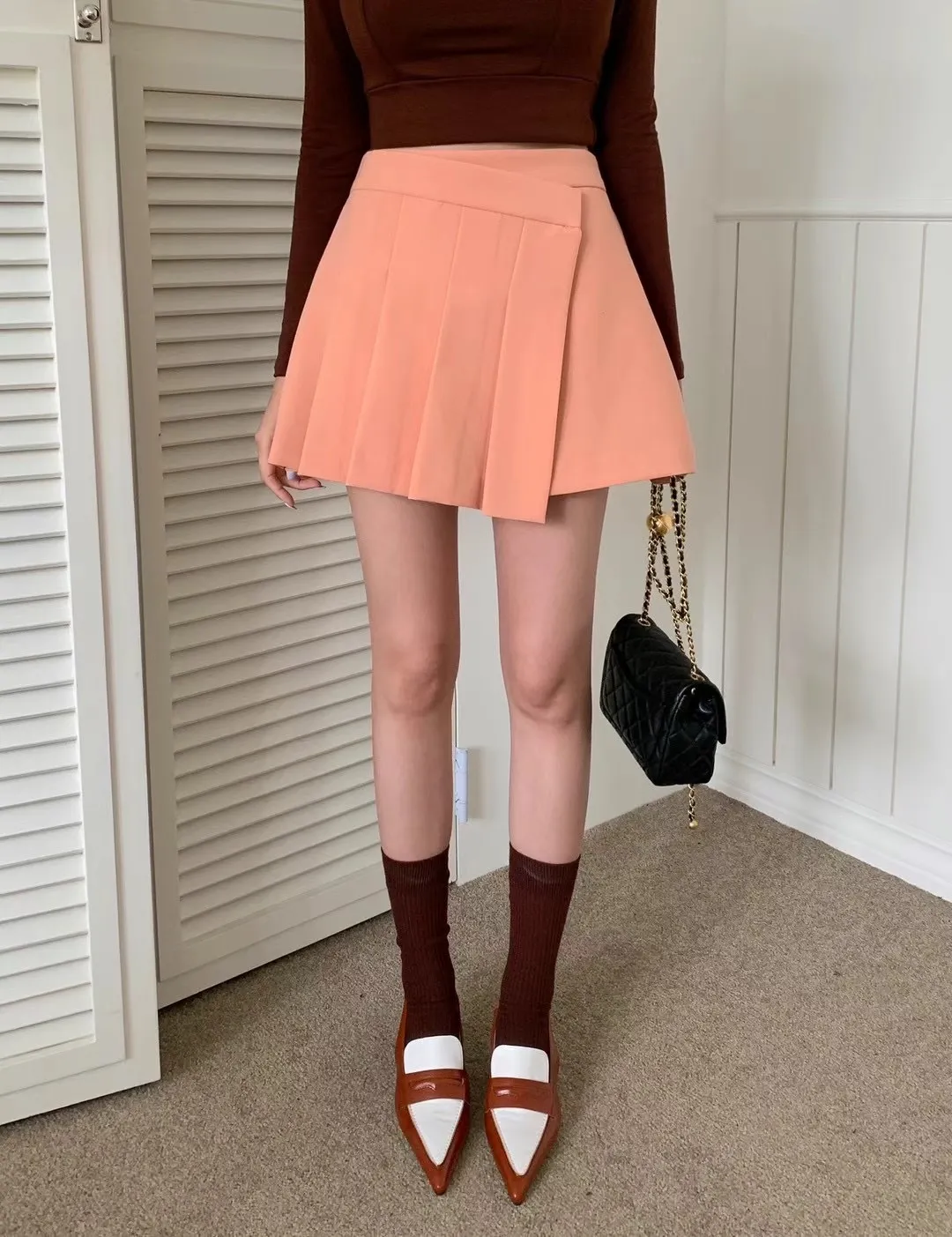 設計師款斜面顯瘦百摺鬆緊褲裙