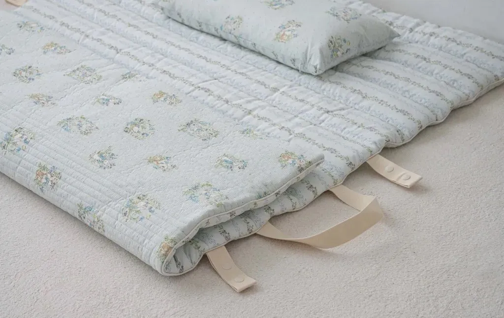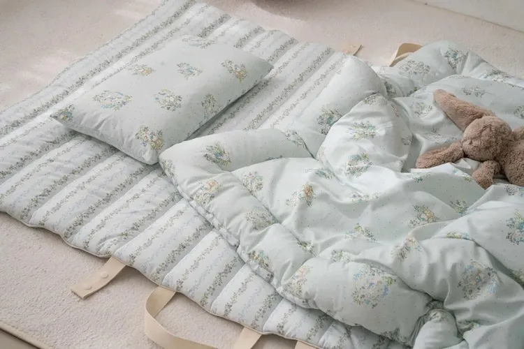 四件式組合:包含睡袋、枕頭、被子與厚實墊子,一套搞定孩子的午睡需求。
