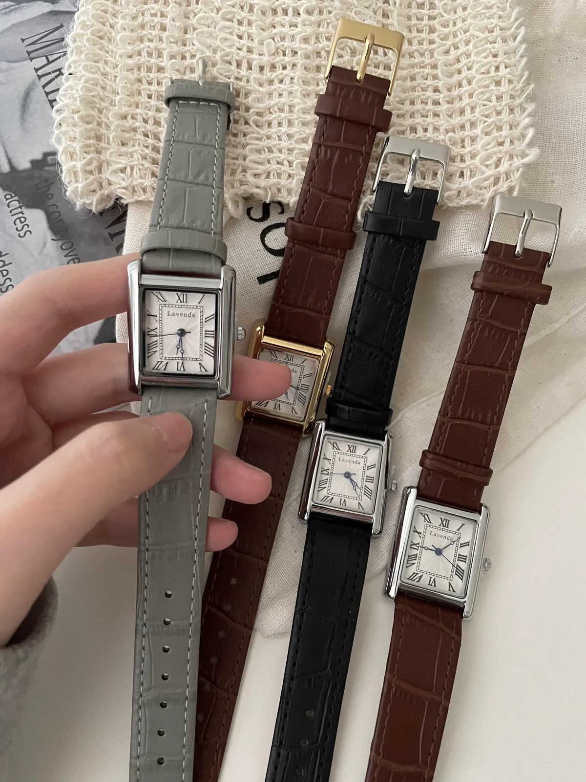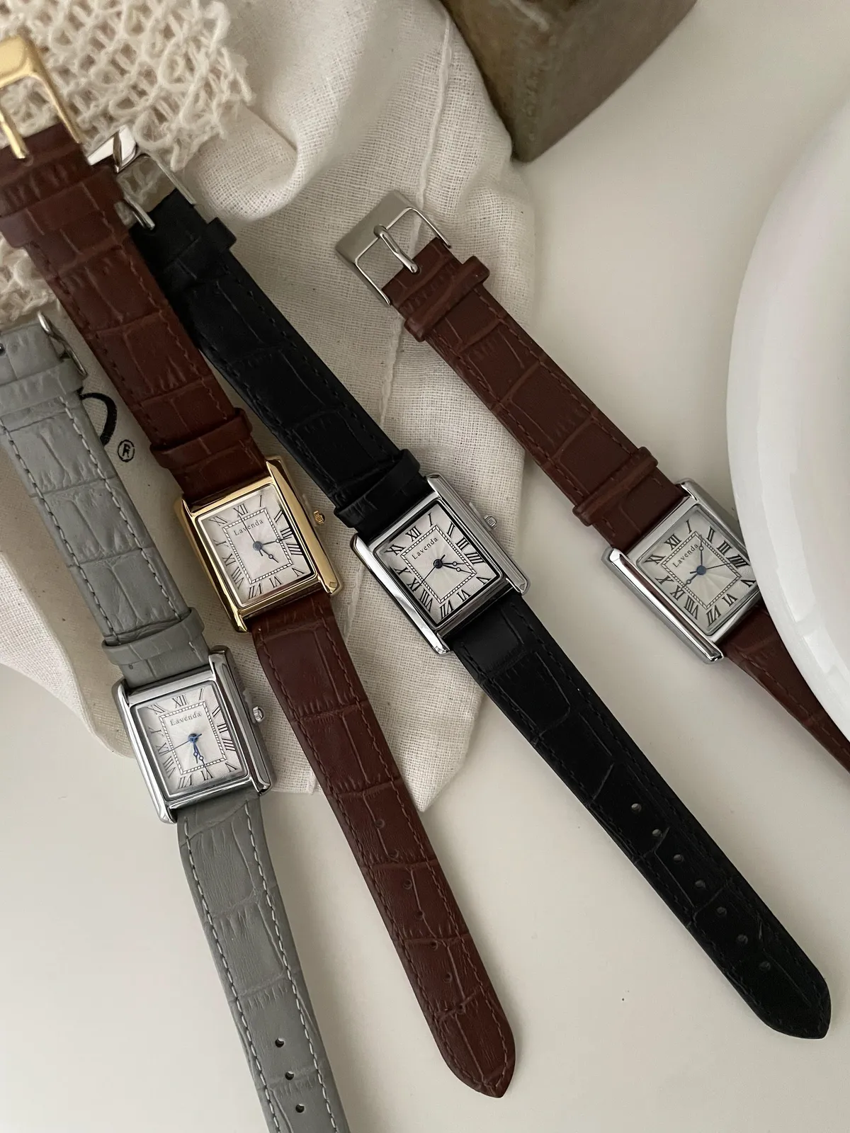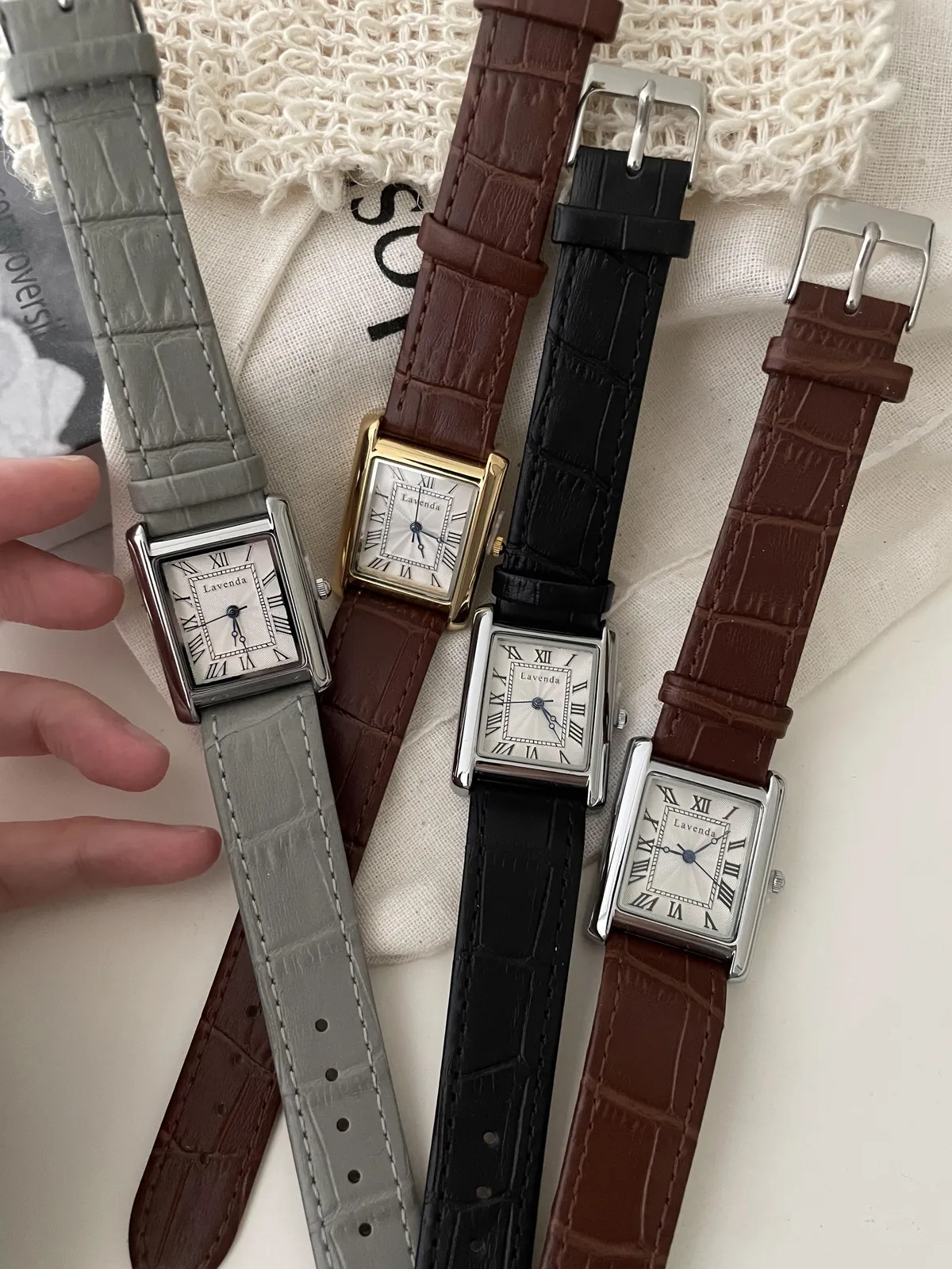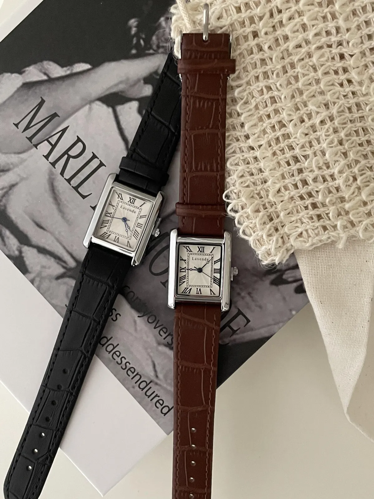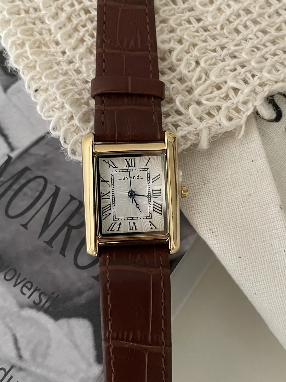 韓國Lavenda經典復古羅馬數字真皮方型手錶 斷貨王大方塊手錶 日本機芯 一般生活防水