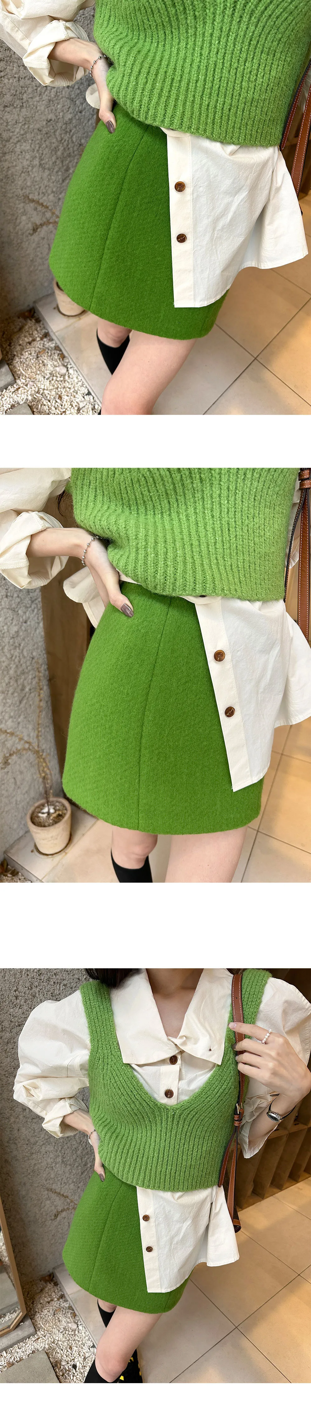 設計師品牌 羊毛混紡紋理柔軟H版型迷你裙 窄裙